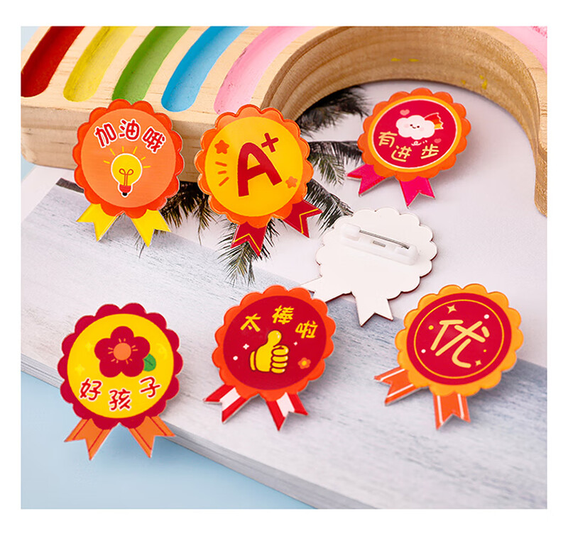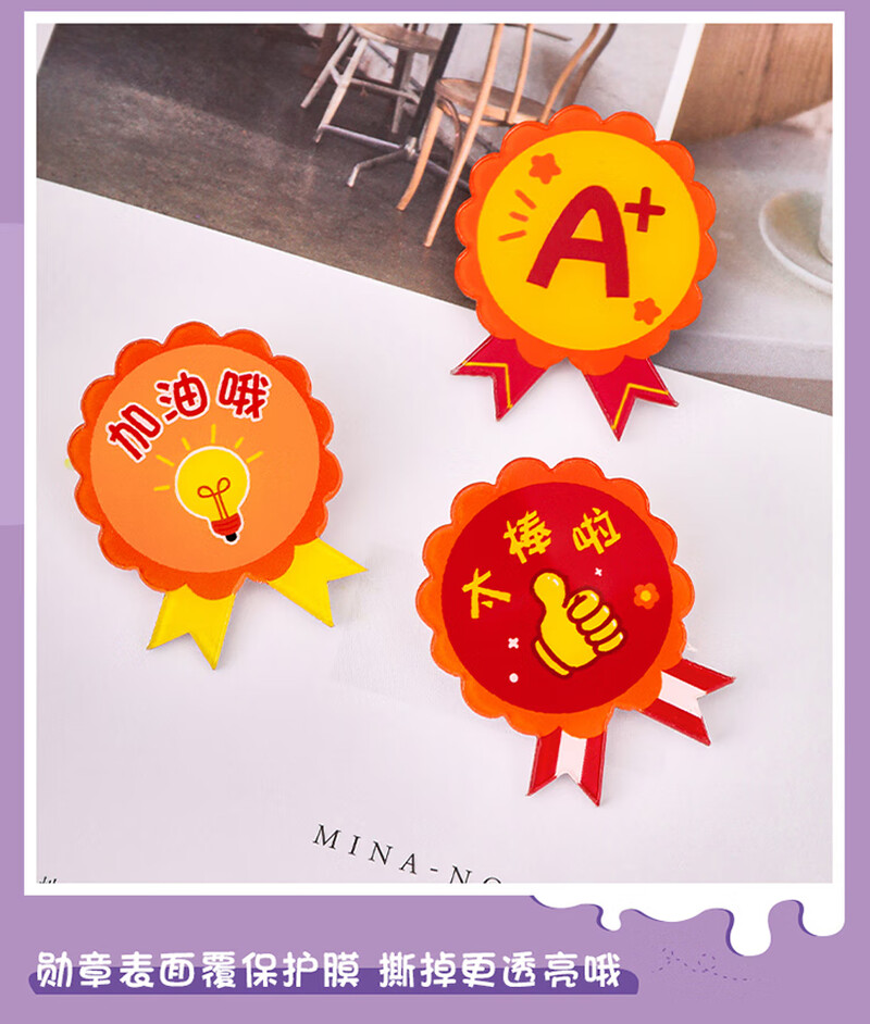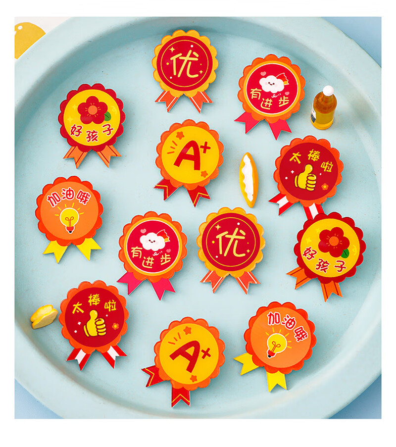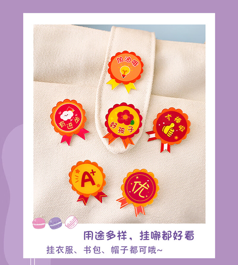 Elementary school student reward badges, children's encouragement medals, kindergarten praise brooches, schoolbags, small medals, 6 small gifts, 6 badges, 5 each