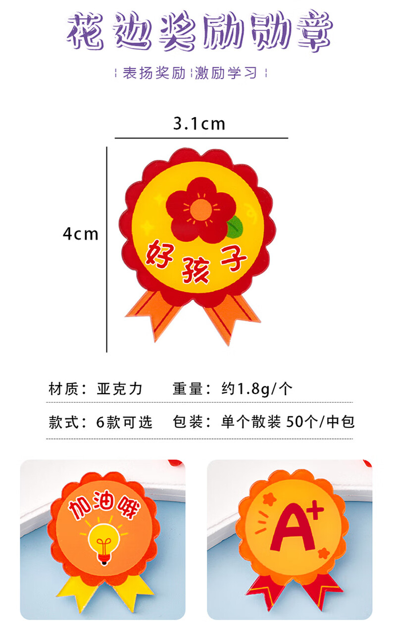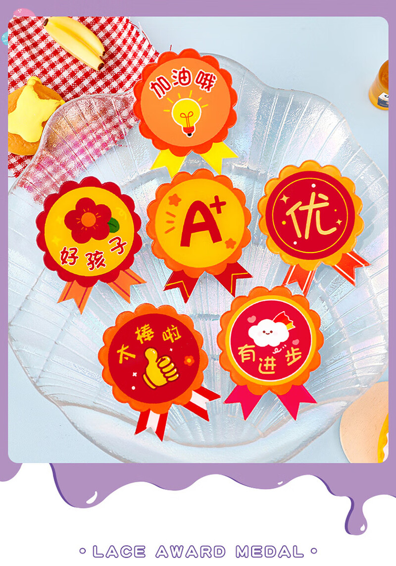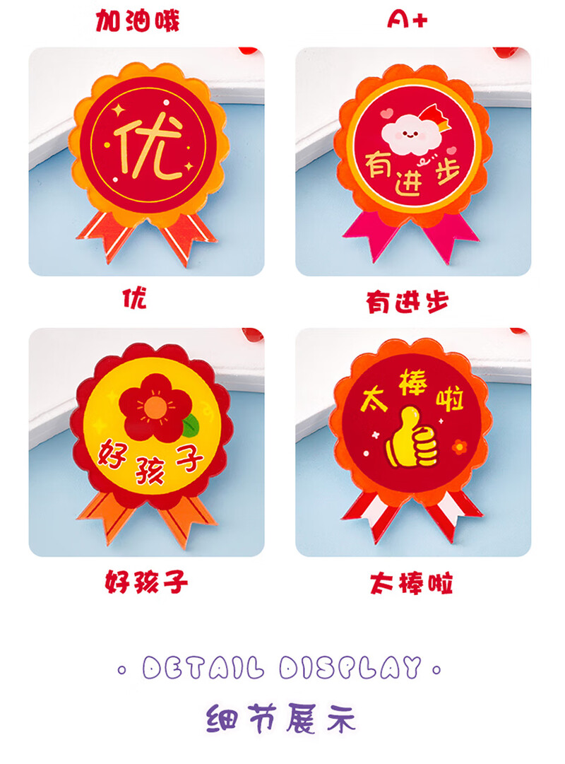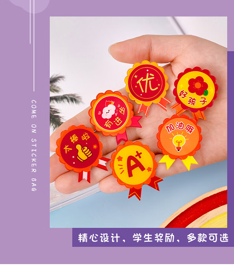 Elementary school student reward badges, children's encouragement medals, kindergarten praise brooches, schoolbags, small medals, 6 small gifts, 6 badges, 5 each