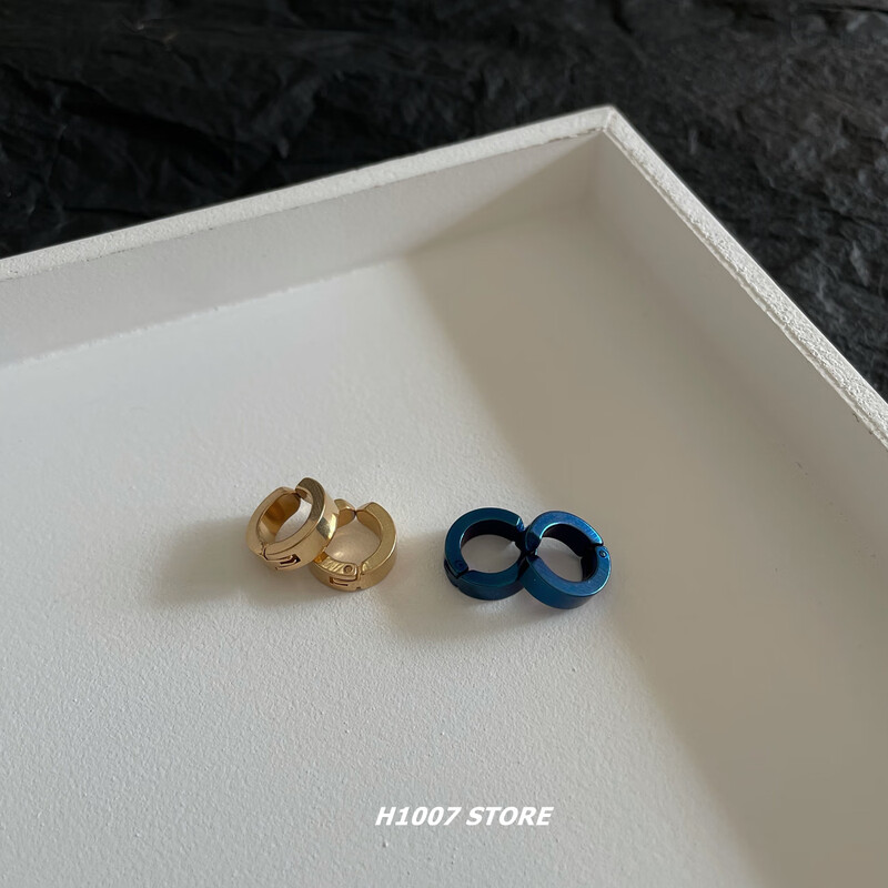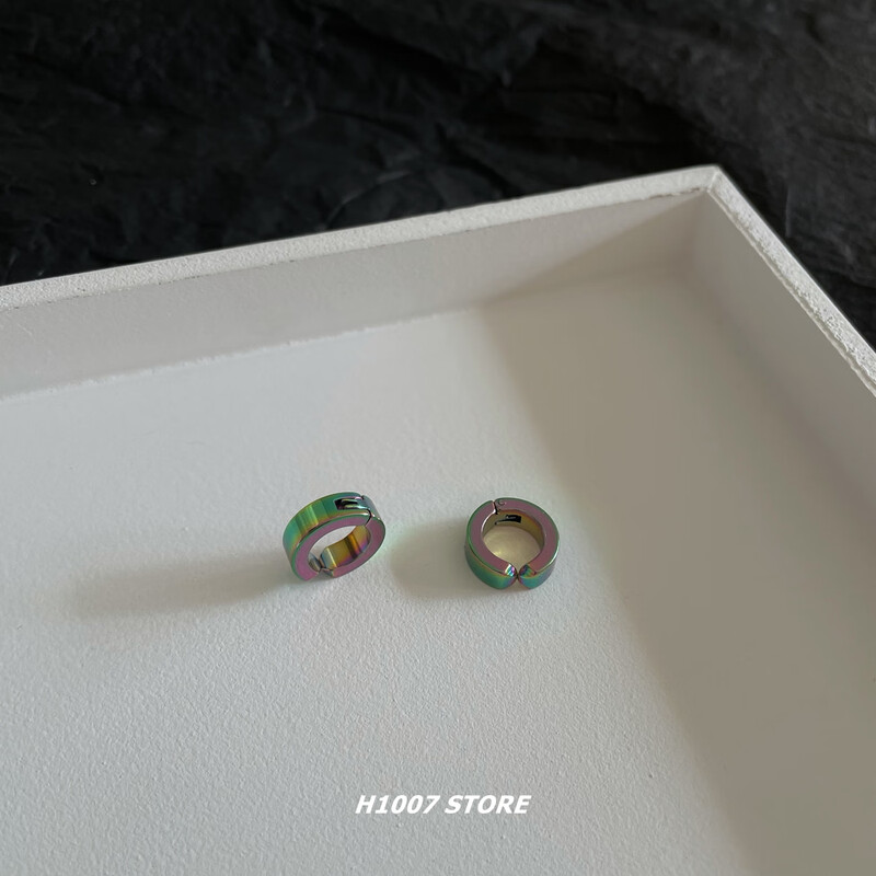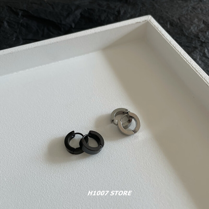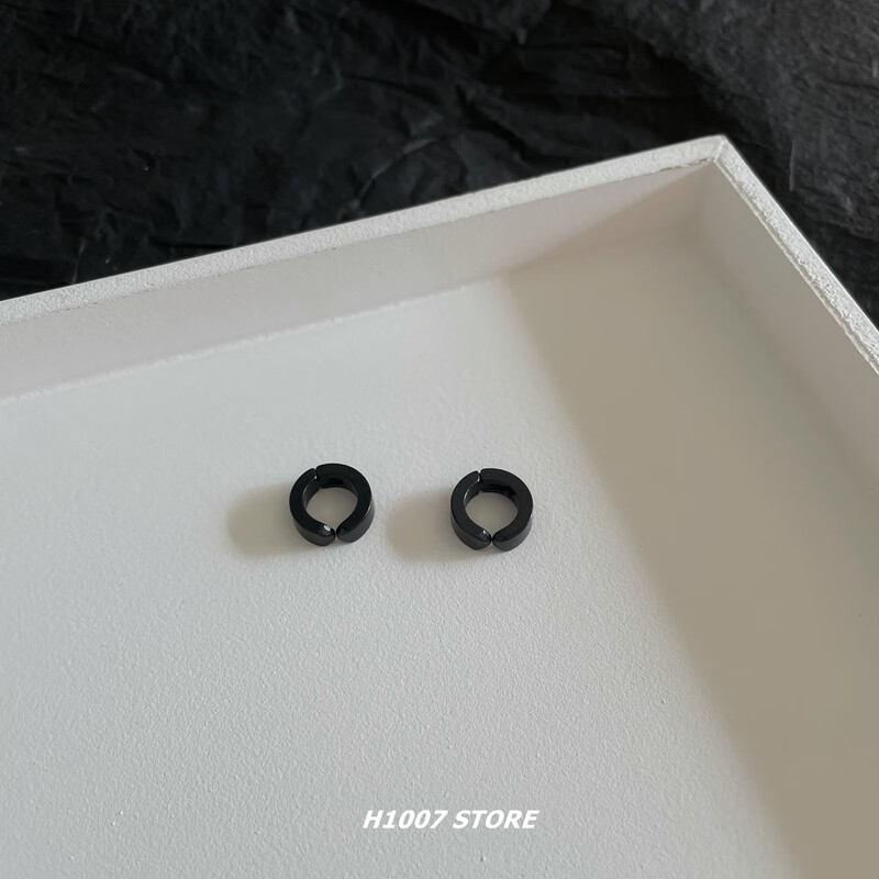Titanium steel ear clips for men without piercing, hip-hop niche cold style fake earrings, earrings, single ear jewelry for female couples, black and silver, one ear clip each, titanium steel