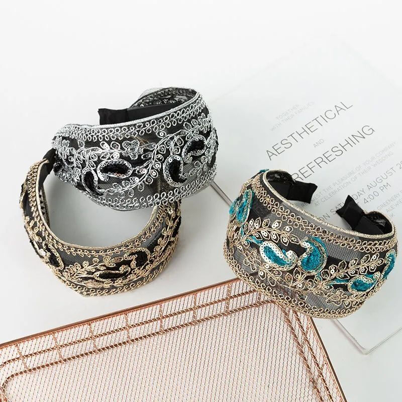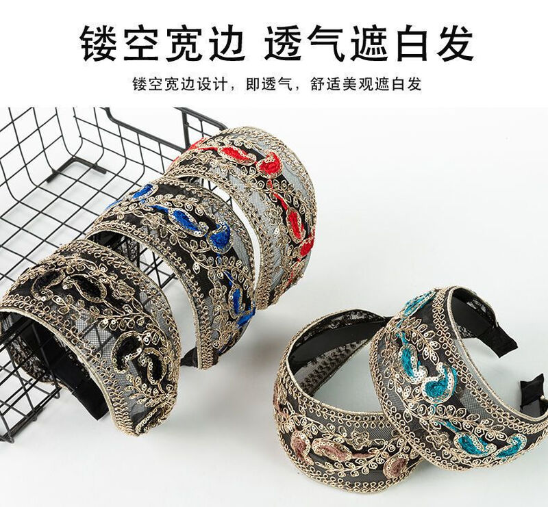 Temperament wide headband for women to cover gray hair, broken hair, pressed hair, wide-brimmed lace, Internet celebrity hairband, toothed headband, blue 1 piece