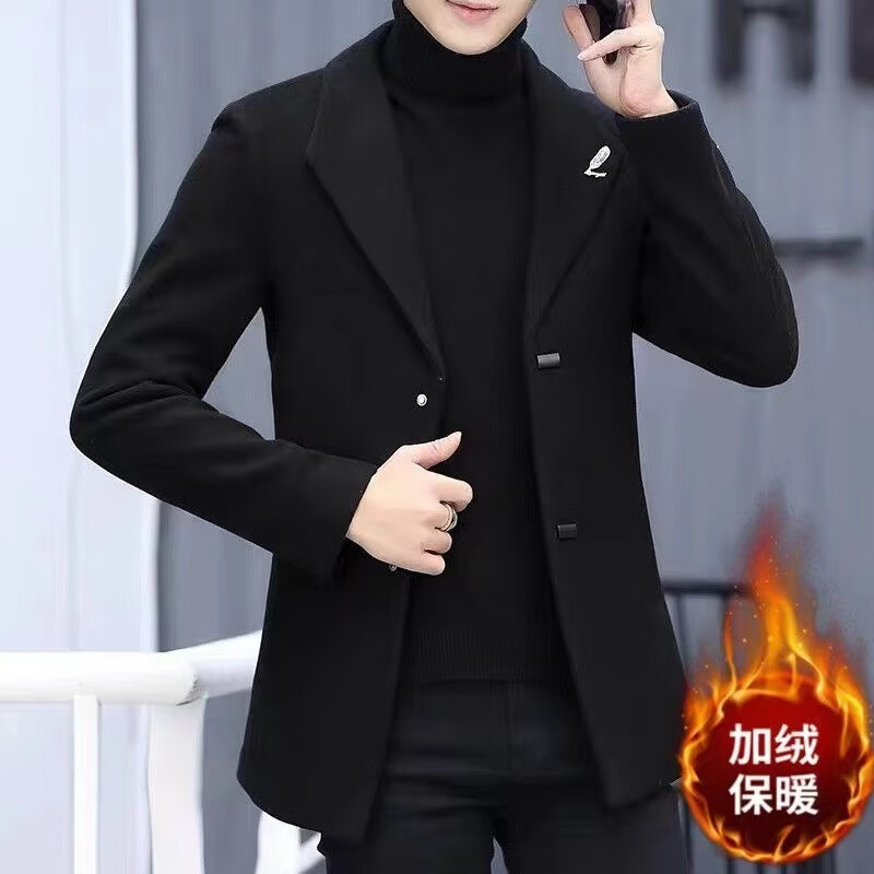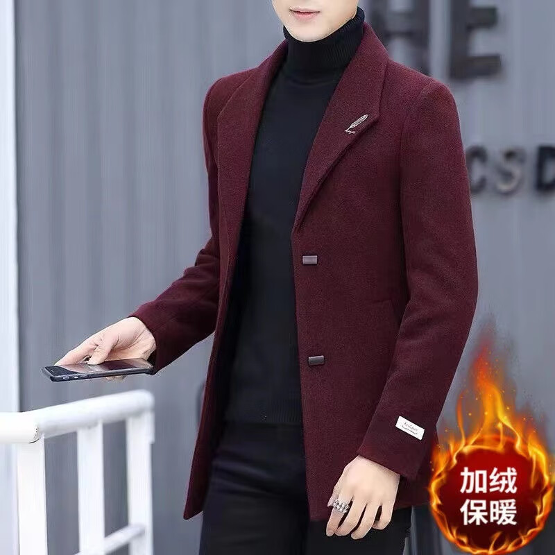Woodpecker (TUCANO) woolen coat men's short plus velvet thickened autumn and winter Korean version trendy slim British casual woolen coat 7245# Gray M 90-110Jin Jin equals 0.5 kg