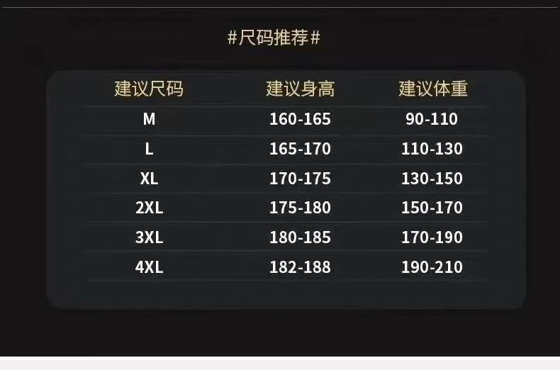 China (cm) 165 / 88-90 170 / 96-98 175 / 108-110 180 / 118-122 185 / 126-130