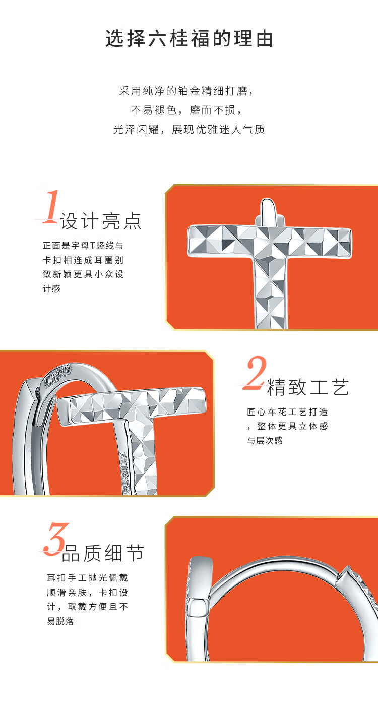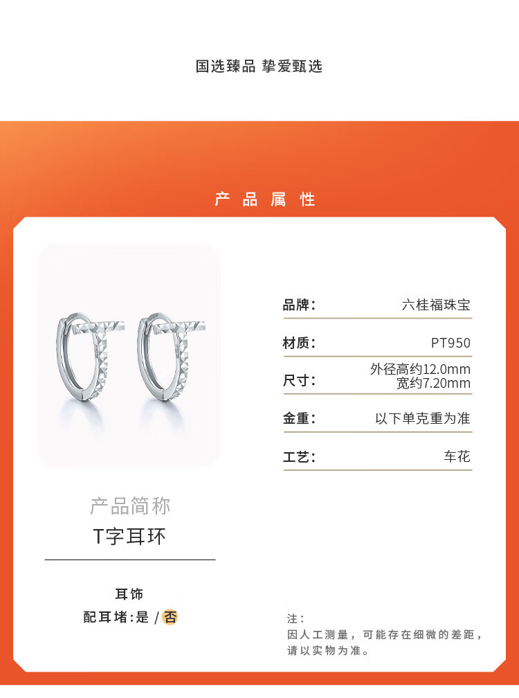 Liuguifu Jewelry Platinum Earrings Women's PT950 Earrings T-Shape Sparkling Earrings Birthday Gift 1.90g Platinum Earrings