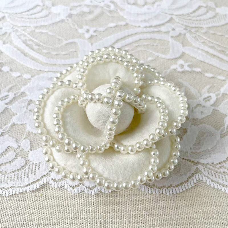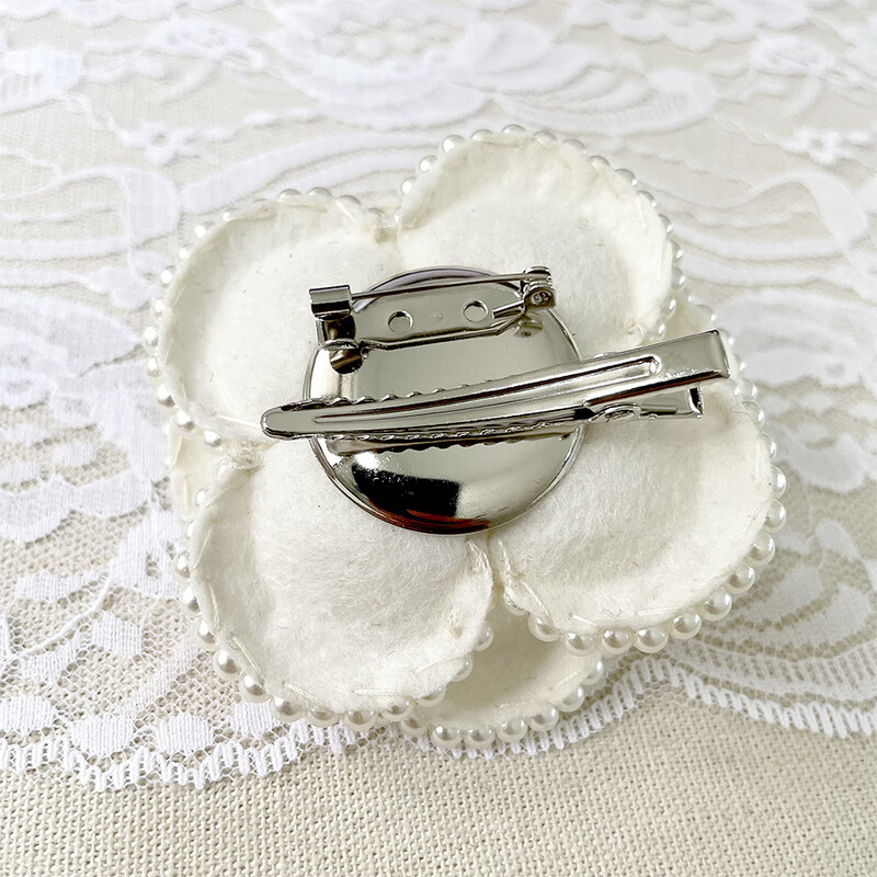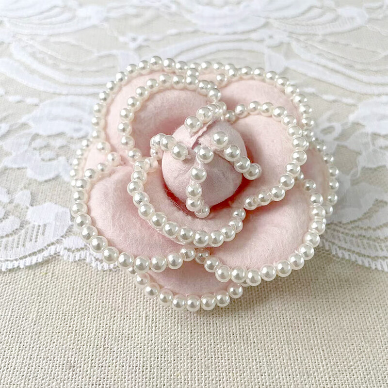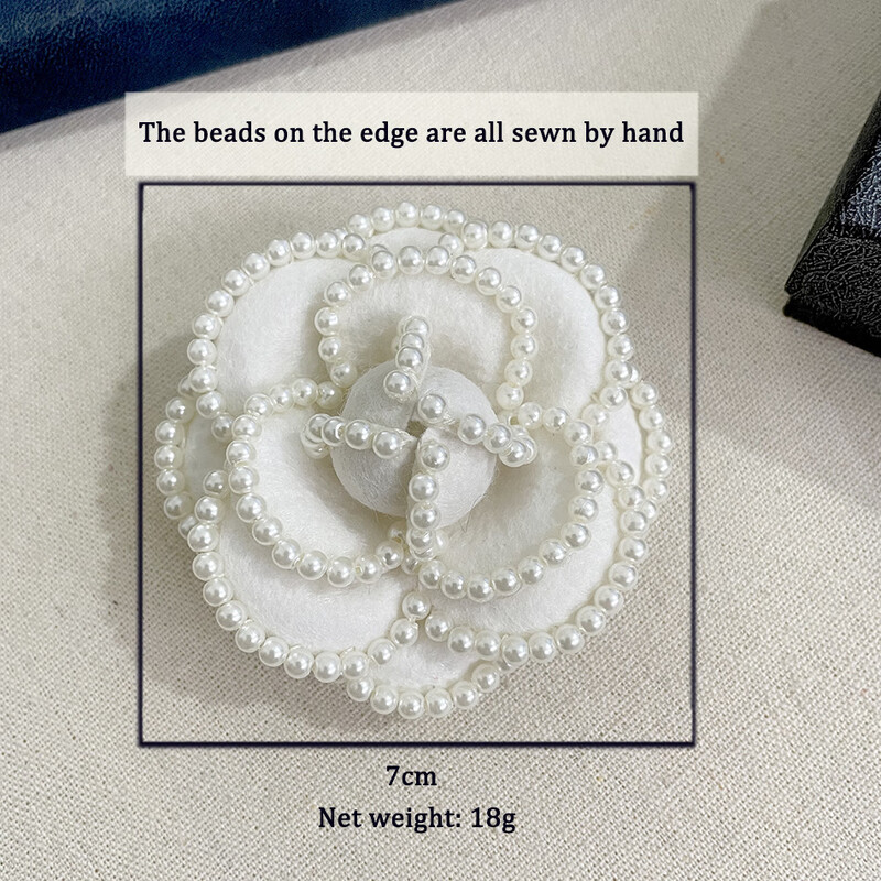 Lu Niang French retro dual-purpose niche imitation pearl camellia corsage fabric brooch coffee 7CM
