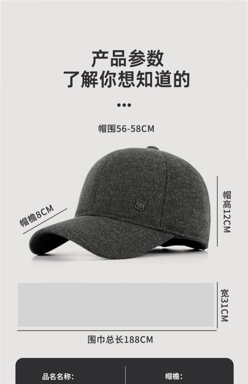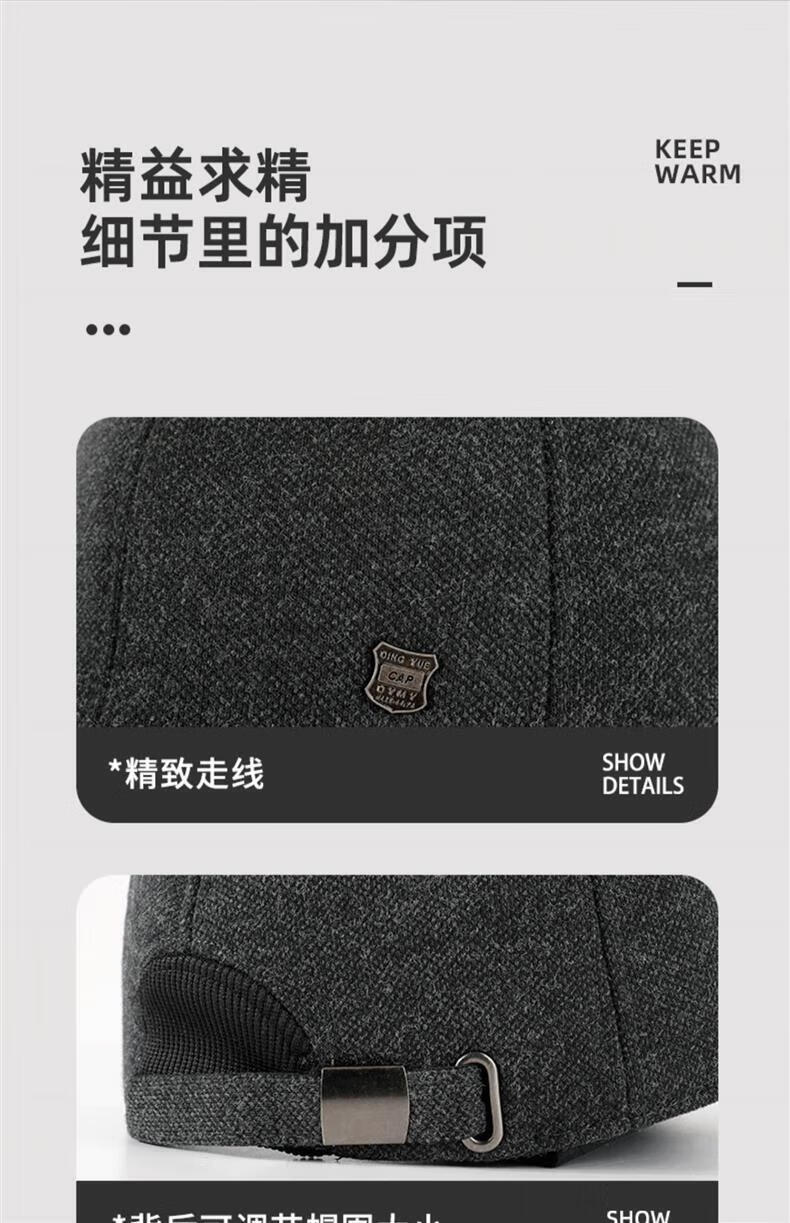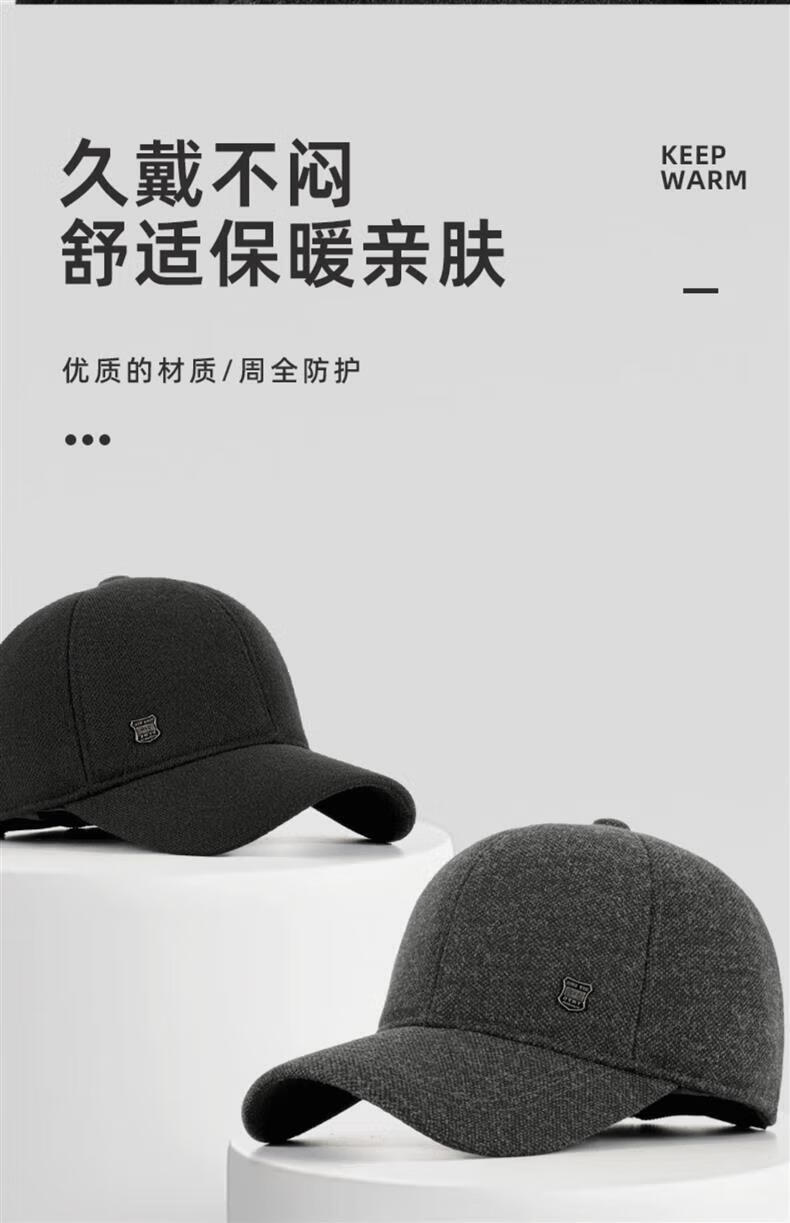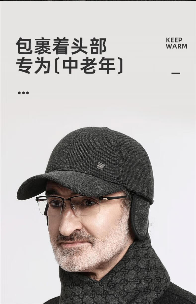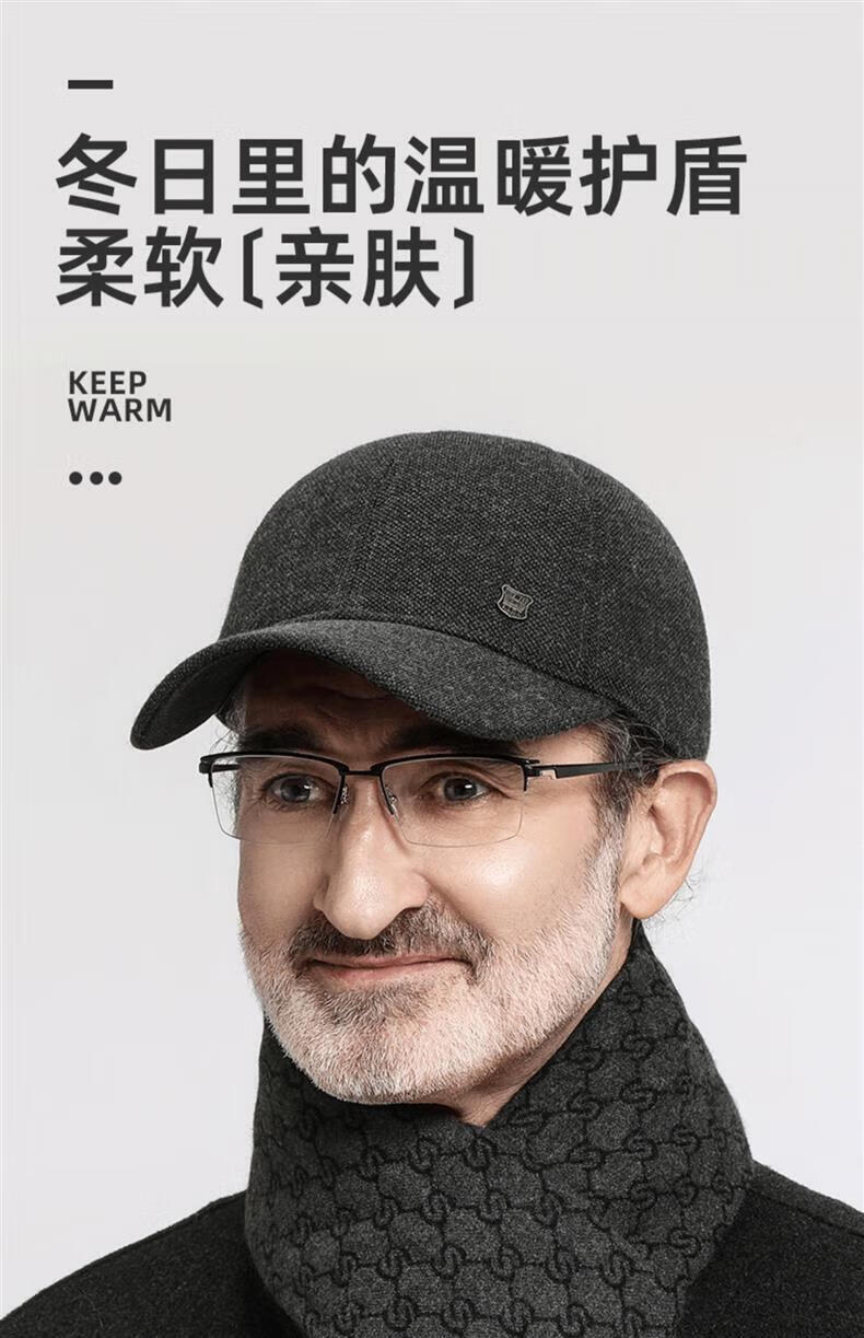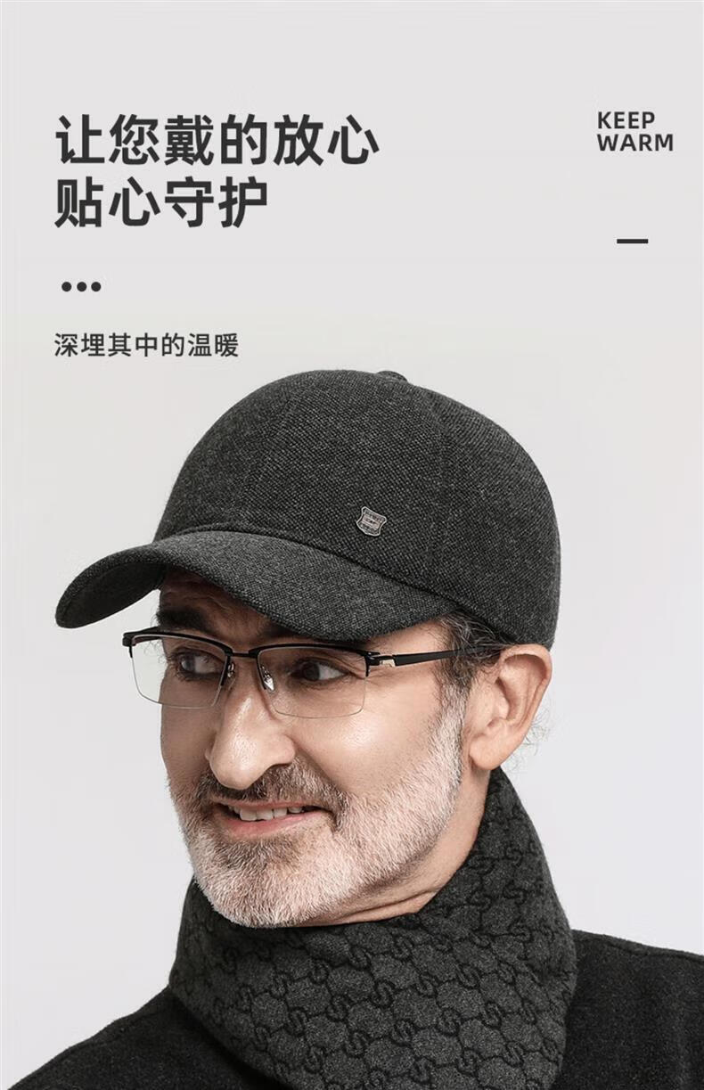 SOMUBAY (SOMUBAY) middle-aged and elderly father's woolen hat men's winter thickened cold-proof ear protection cap for old man and grandfather old man's peaked cap, dark gray with ear protection, velvet inside, one size fits all, one size fits all (56-58cm)