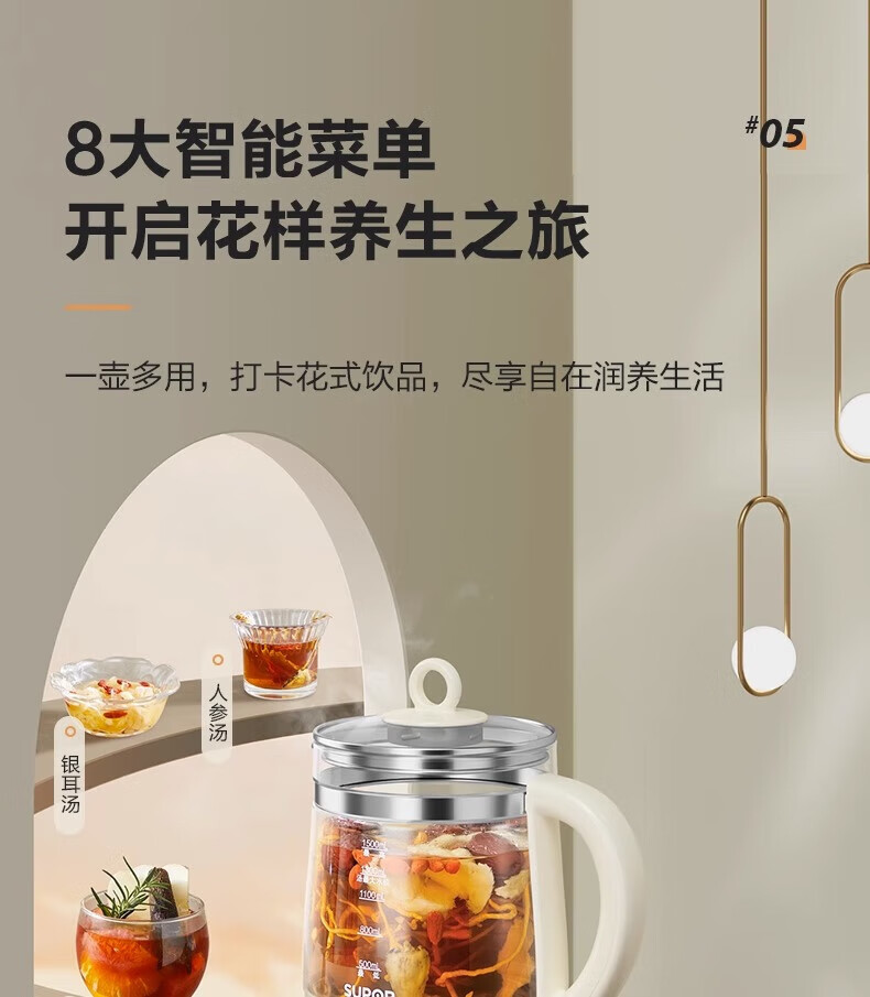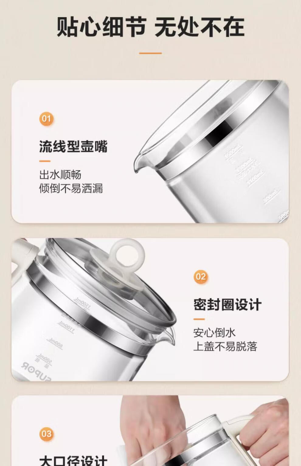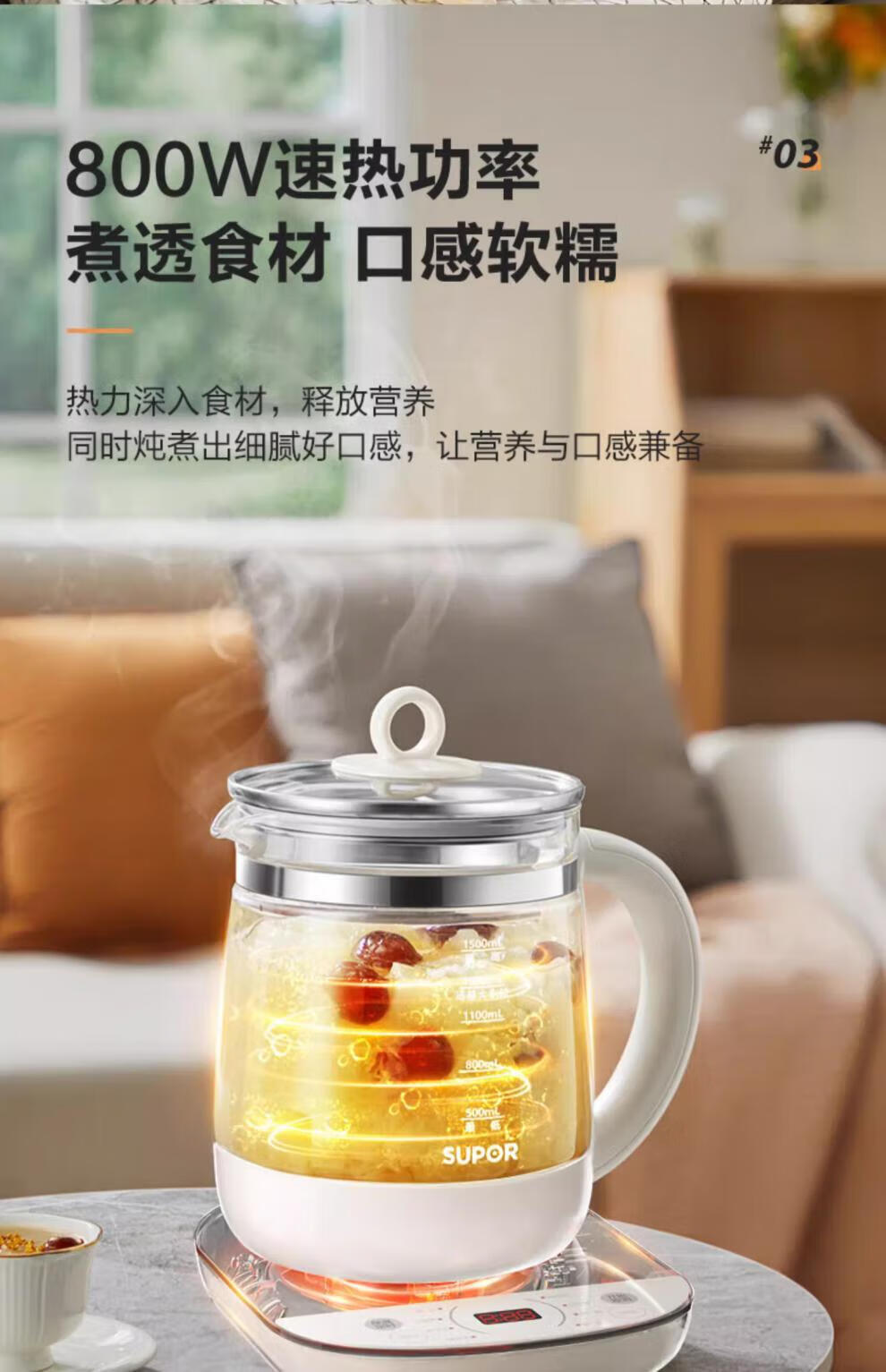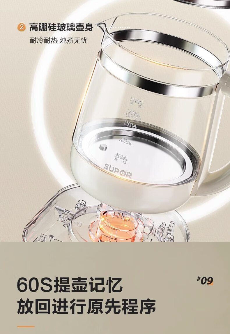 SUPOR health pot household multifunctional decoction tea maker glass stew kettle small office new model blue (new)