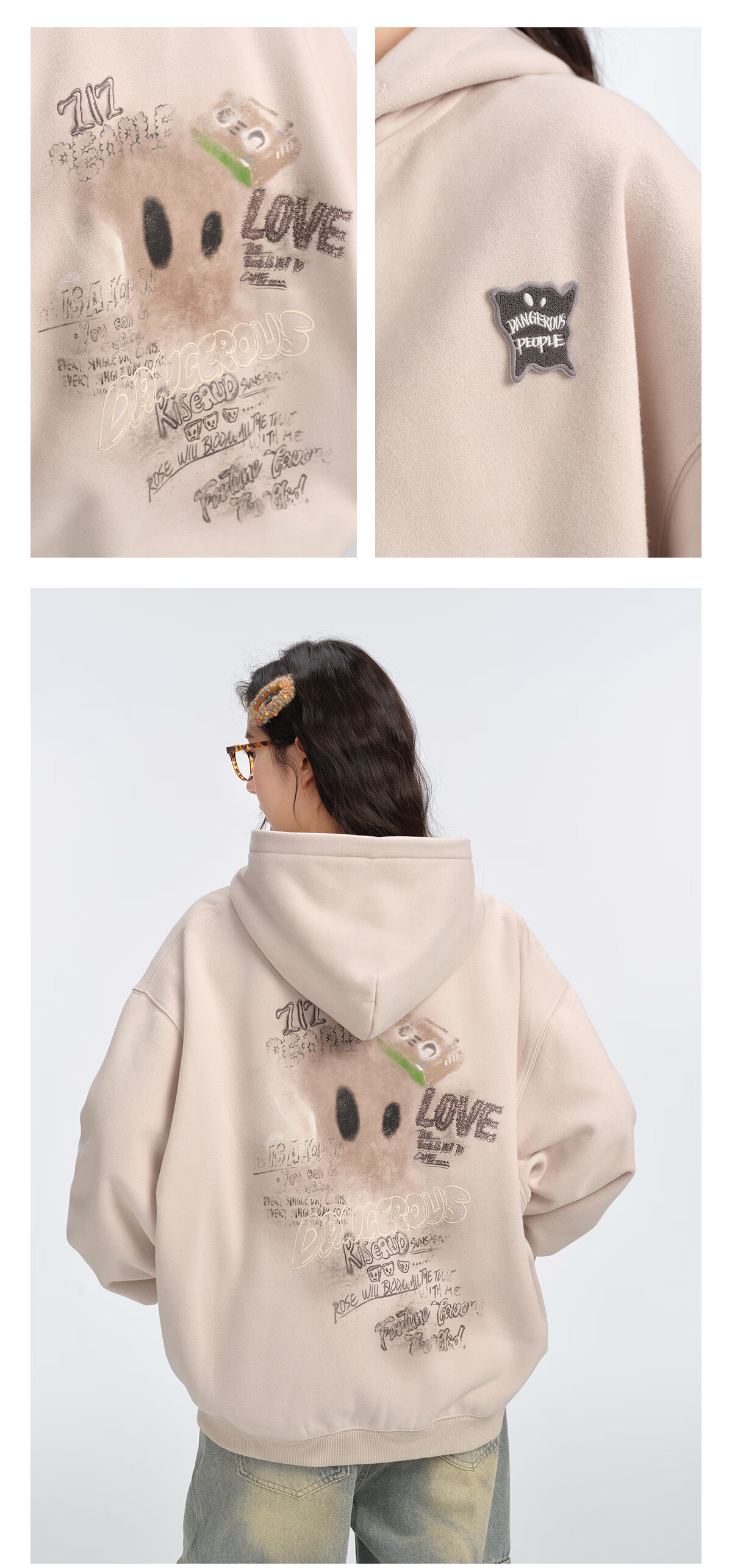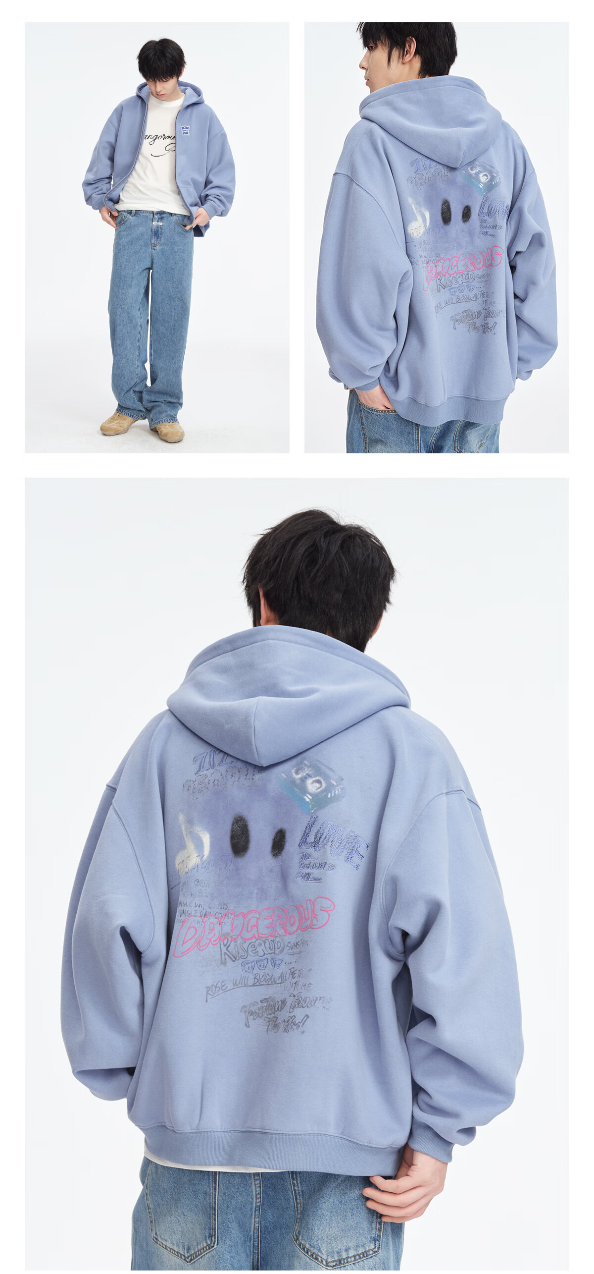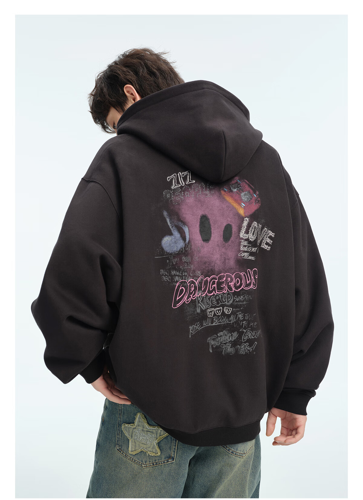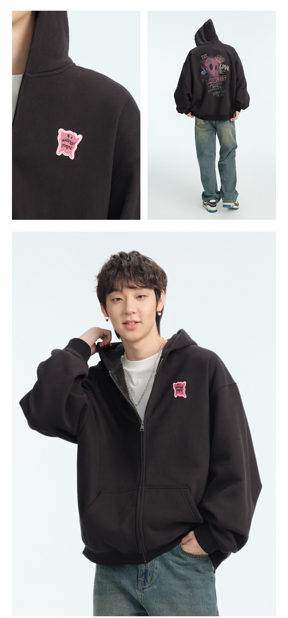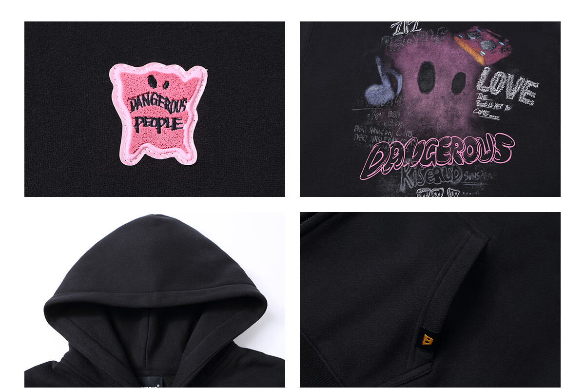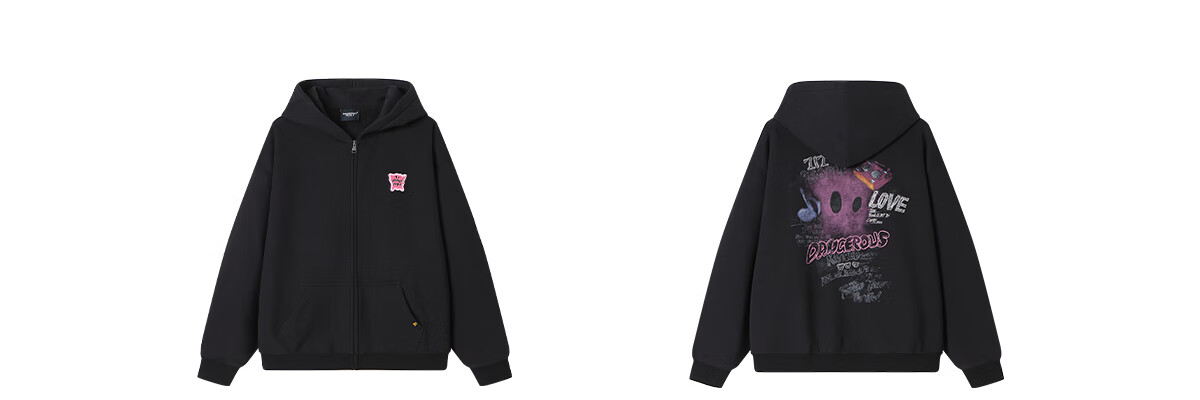 Dangerous people Joker Xue dsp New Year's gift season autumn and winter loose silhouette versatile fleece cardigan hooded sweatshirt jacket black XL
