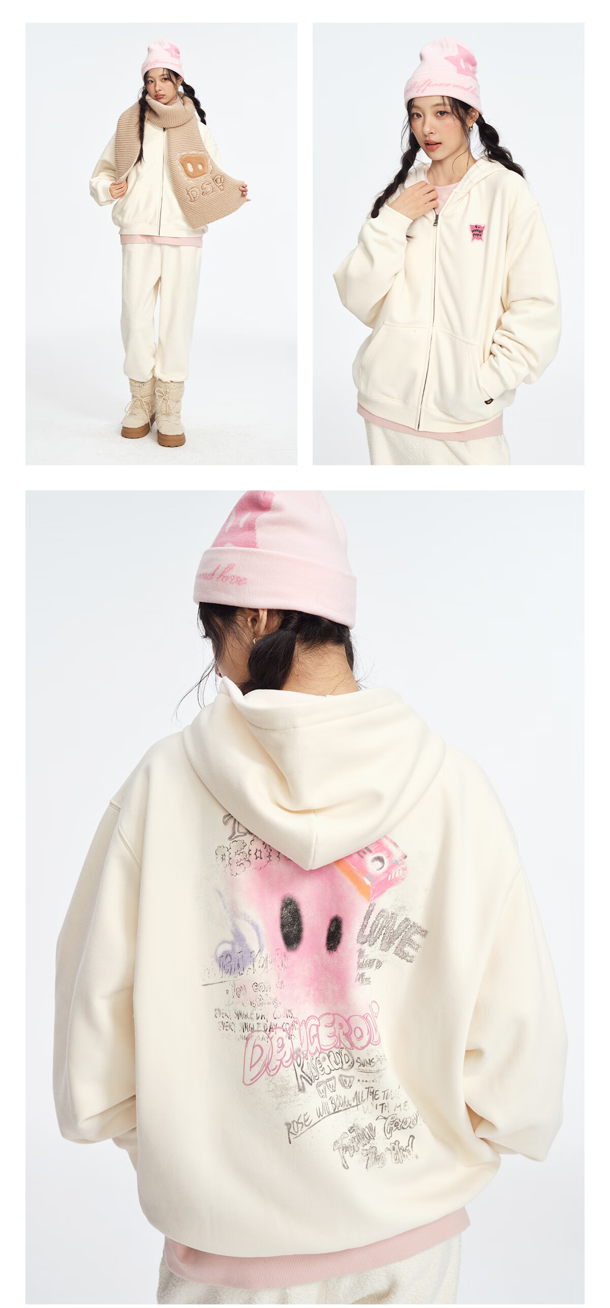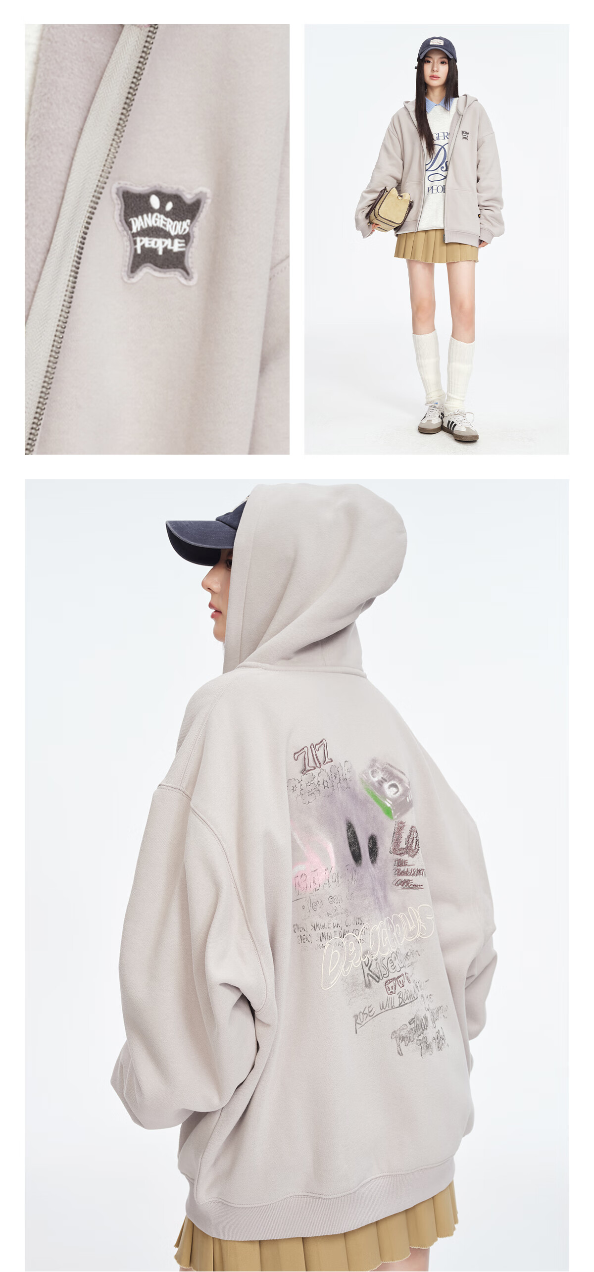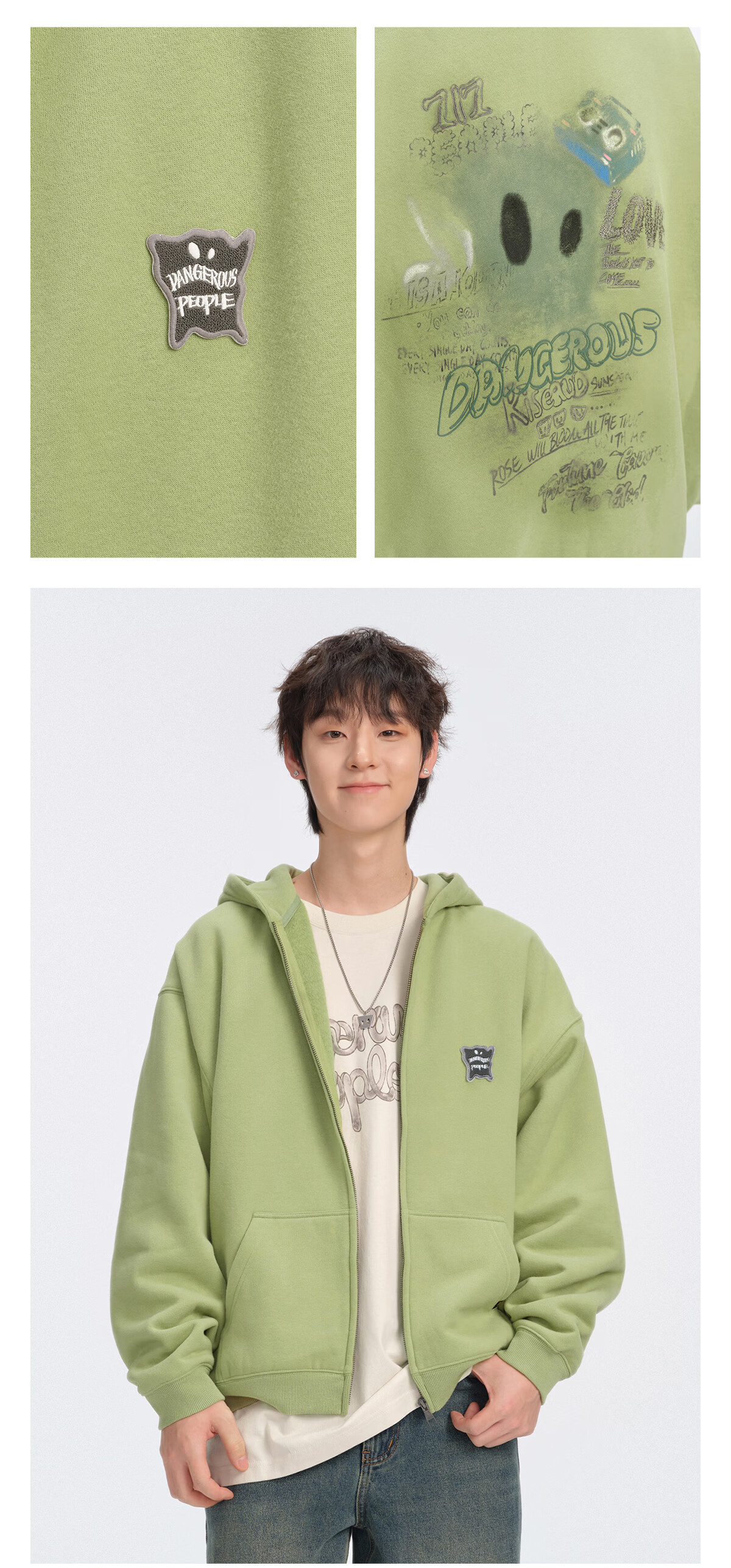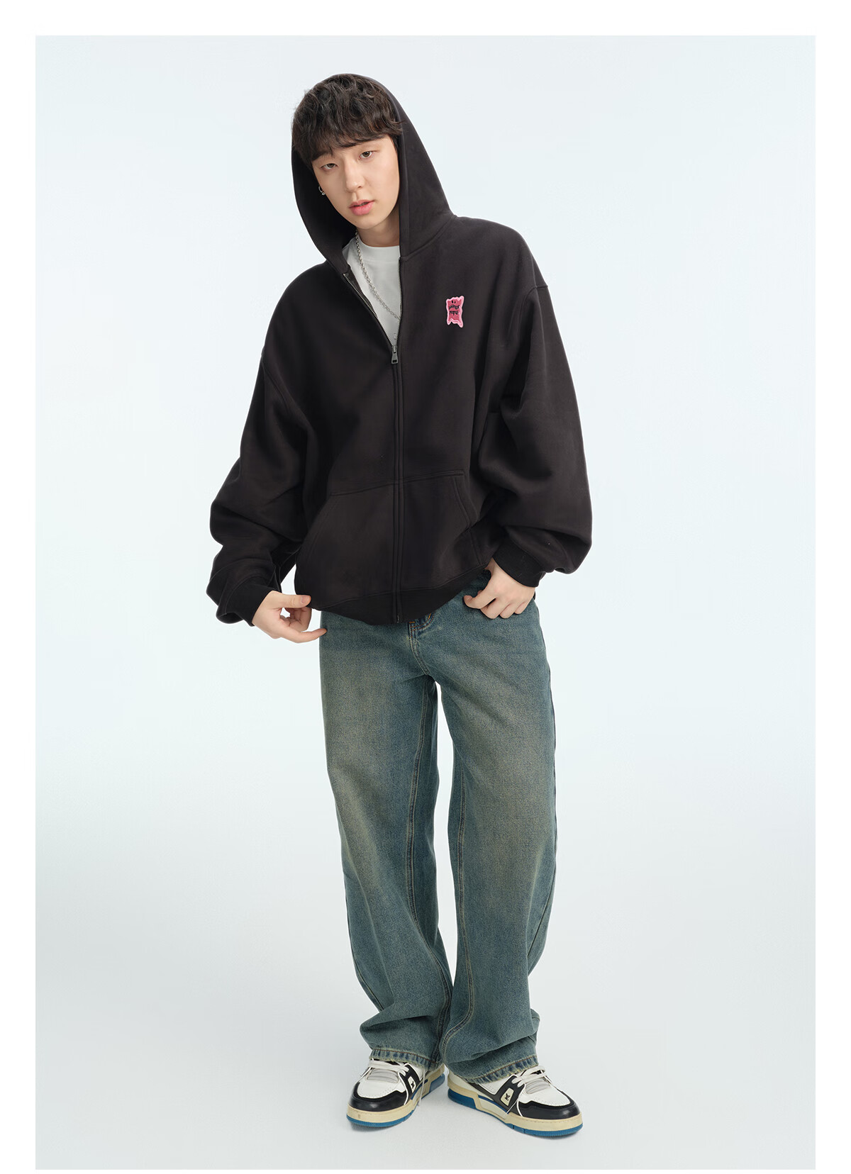 Dangerous people Joker Xue dsp New Year's gift season autumn and winter loose silhouette versatile fleece cardigan hooded sweatshirt jacket black XL