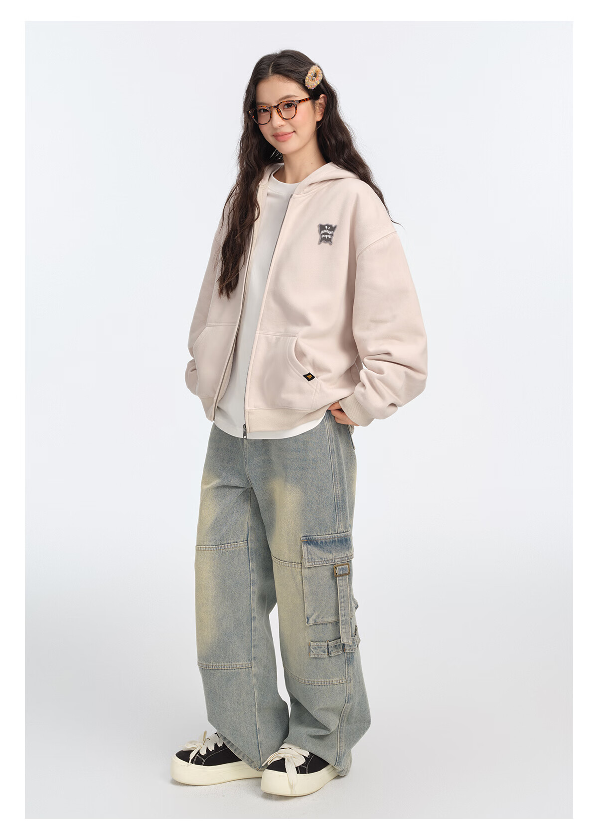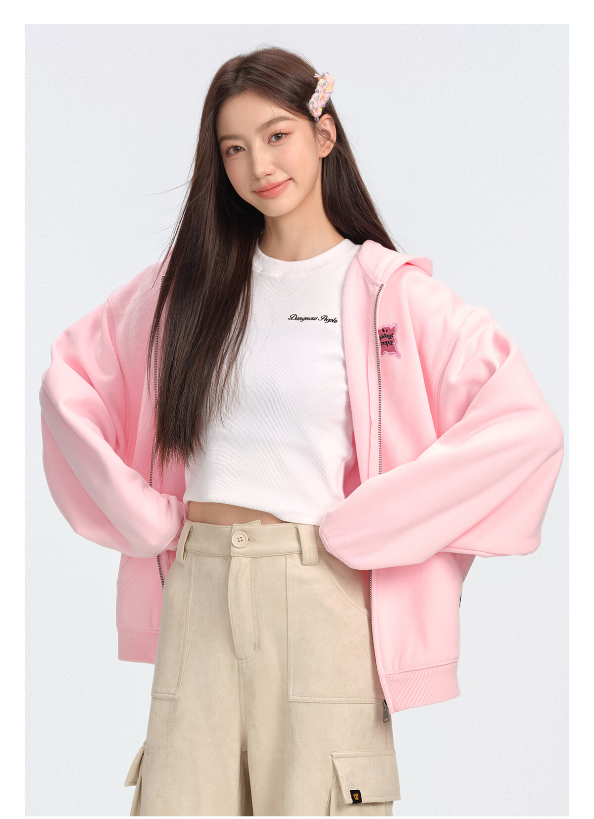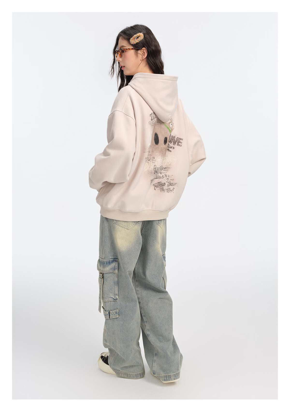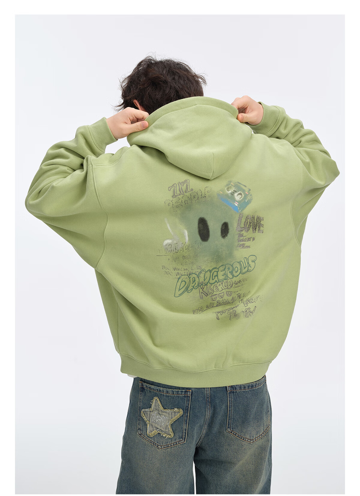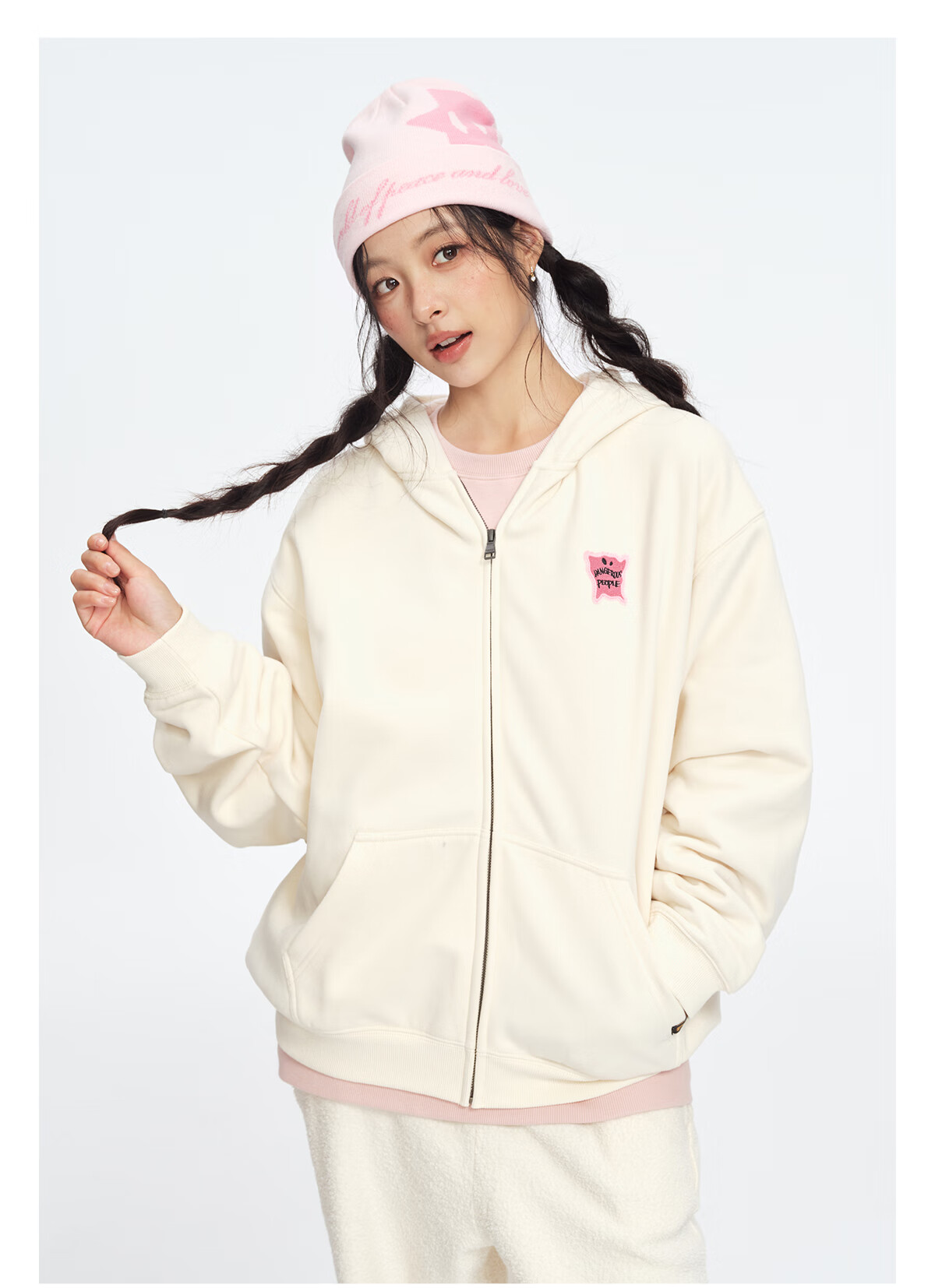 Dangerous people Joker Xue dsp New Year's gift season autumn and winter loose silhouette versatile fleece cardigan hooded sweatshirt jacket black XL