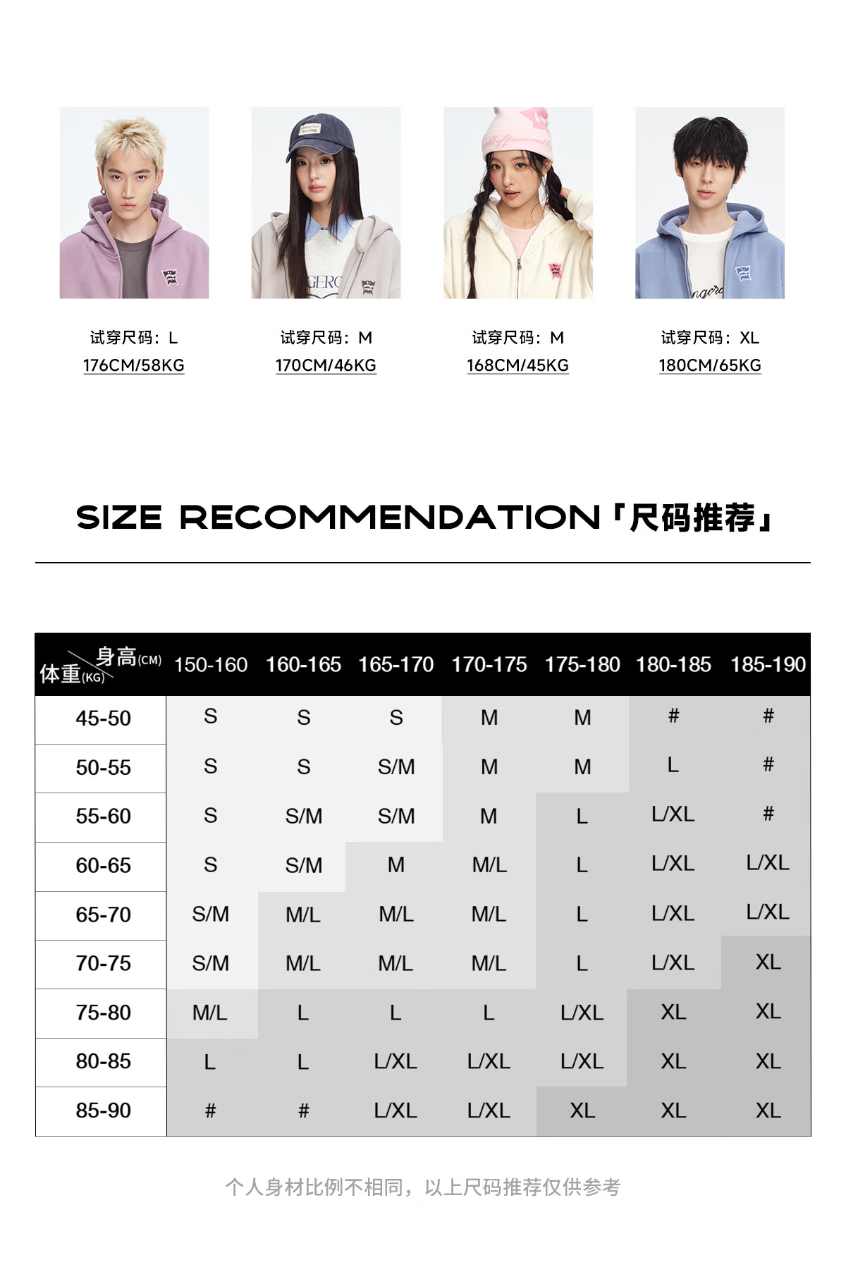 China (cm) 160-165/84-86 165-170 / 88-90 167-172 / 92-96 168-173 / 98-102 170-176 / 106-110