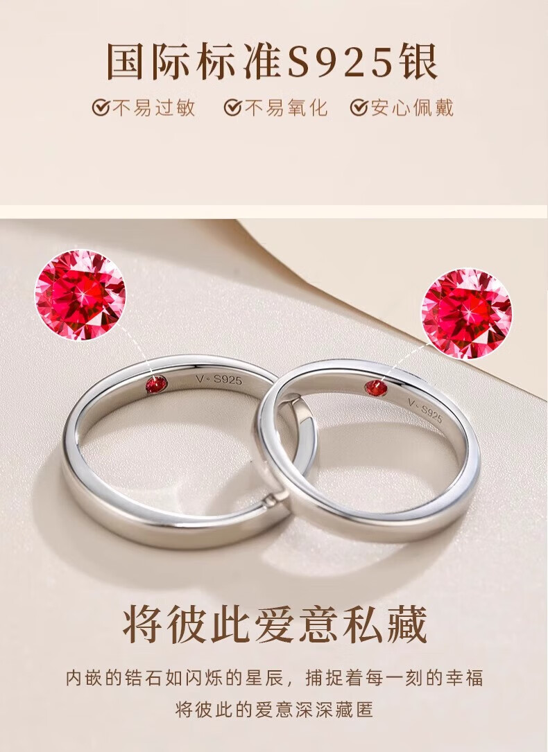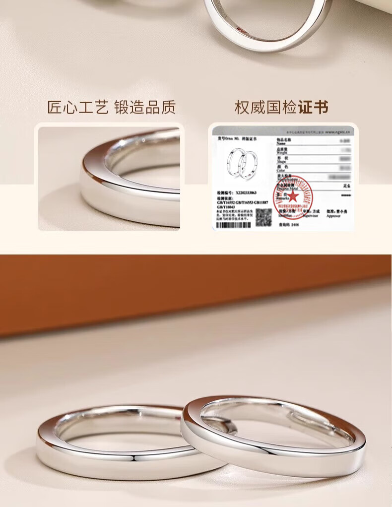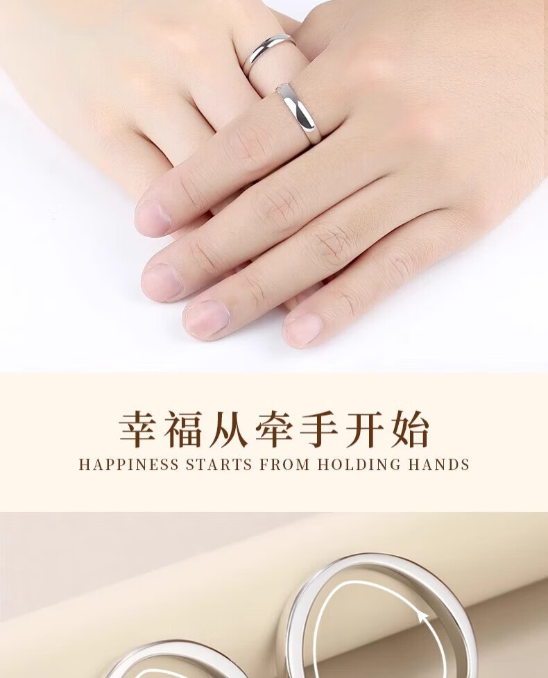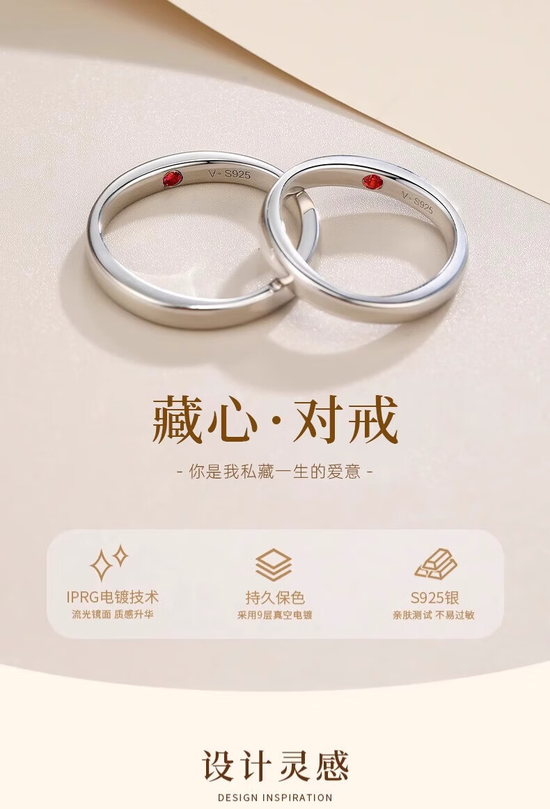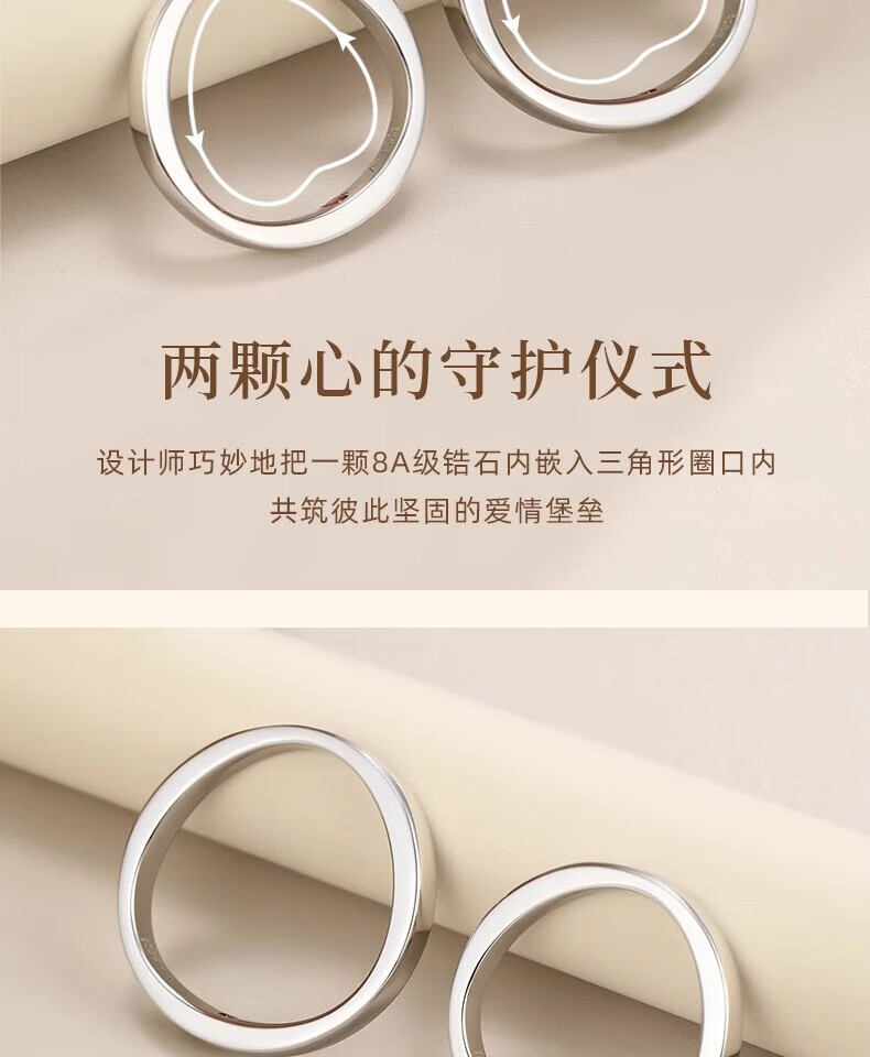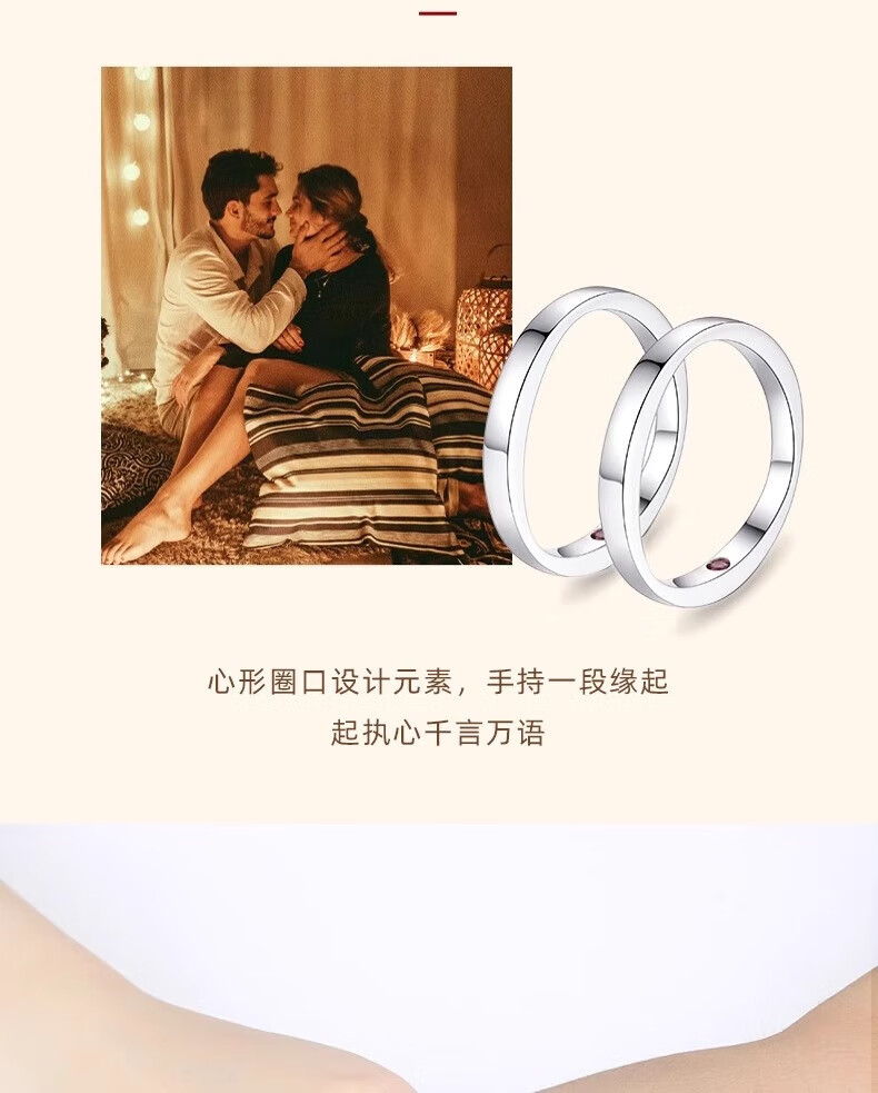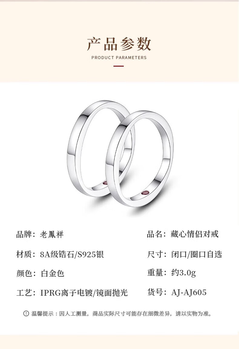 Lao Fengxiang's heart-hiding sterling silver couple ring, a pair of rings with a closed ring, a double ring for boys and girls, Valentine's Day gift for girlfriend and wife, a ring with a closed heart, closed ring, contact customer service
