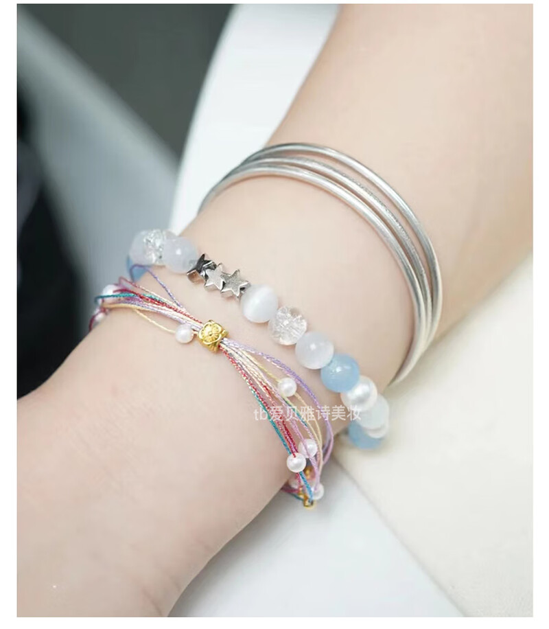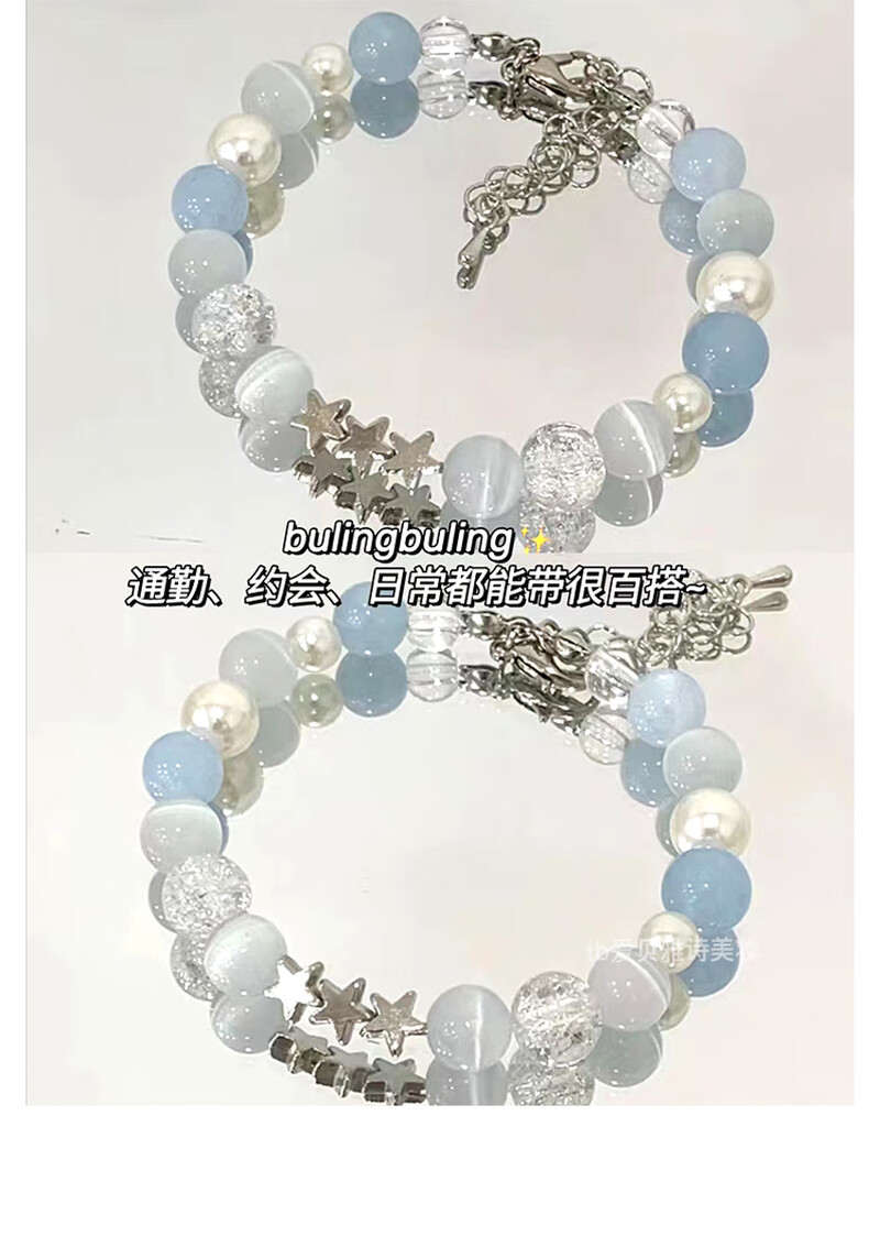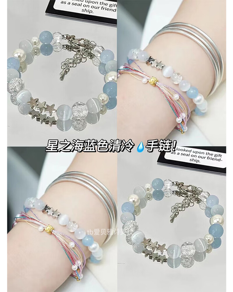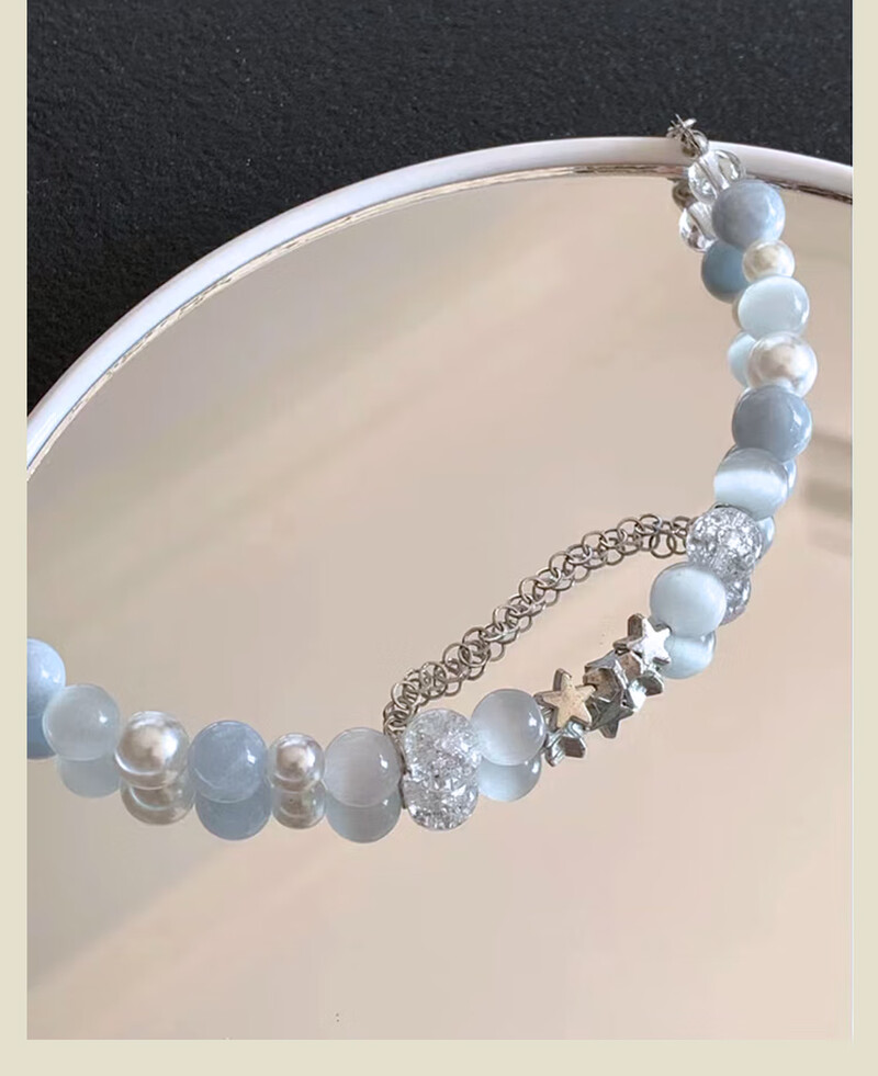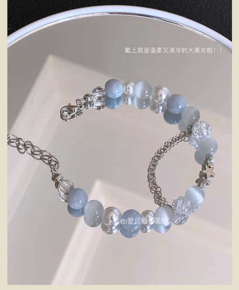 Sea of Stars Cat's Eye Bracelet Star Blue Beaded Bracelet Summer Small Fresh Forest Style Niche Hand Jewelry Blue