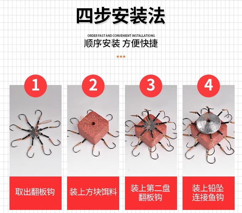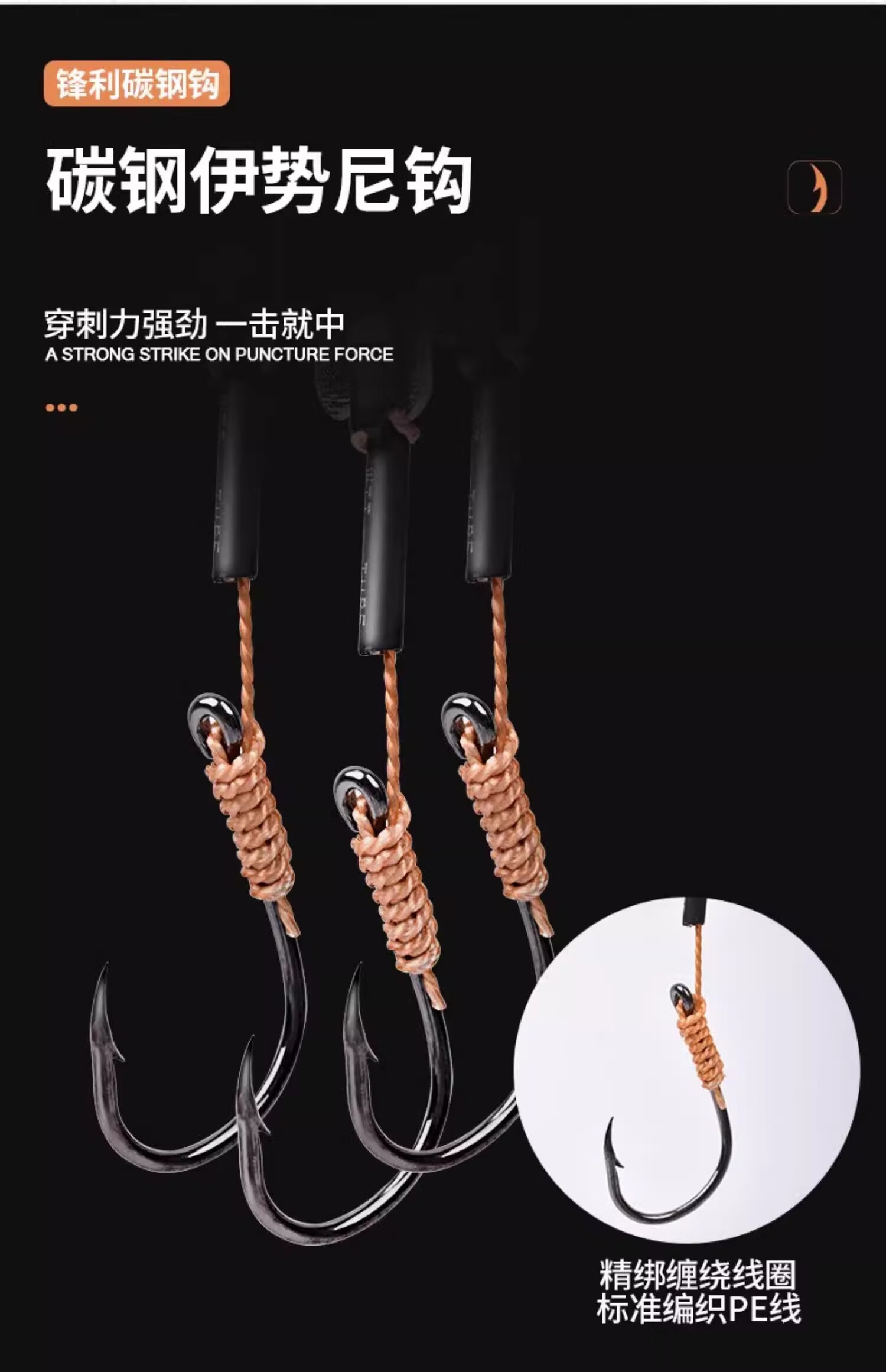 Throwing rod flip hook new explosive hook plate hook sea rod silver carp and bighead carp fishing group special square bait fishing hook accessories set 5 sets line type 24 hooks no gifts No. 13