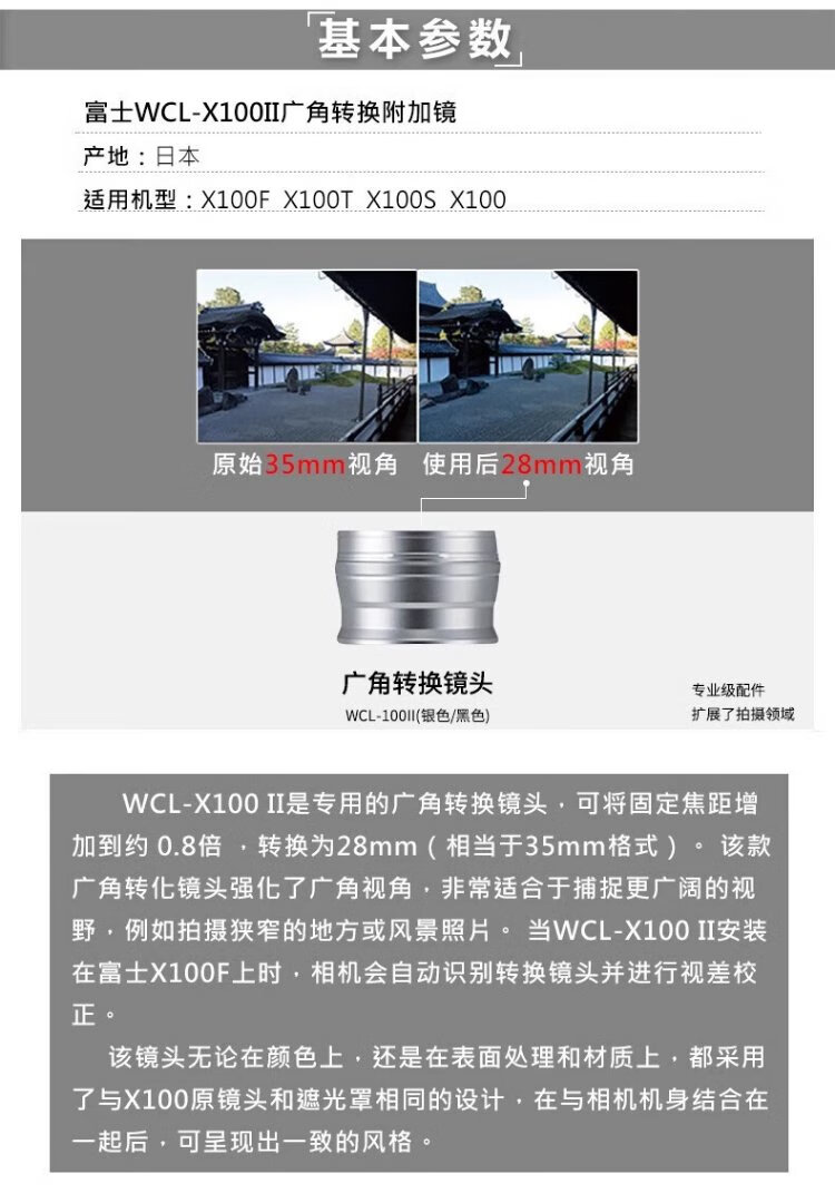 Fujifilm wide-angle conversion lens WCL-X100II/TCL-X100II suitable for X100VI X100T X100V TCL-X100II black