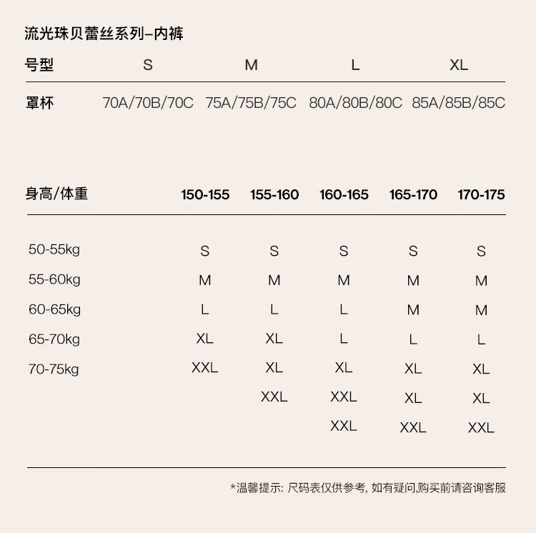 China (cm) 160-165/84-86 165-170 / 88-90 167-172 / 92-96 168-173 / 98-102 170-176 / 106-110