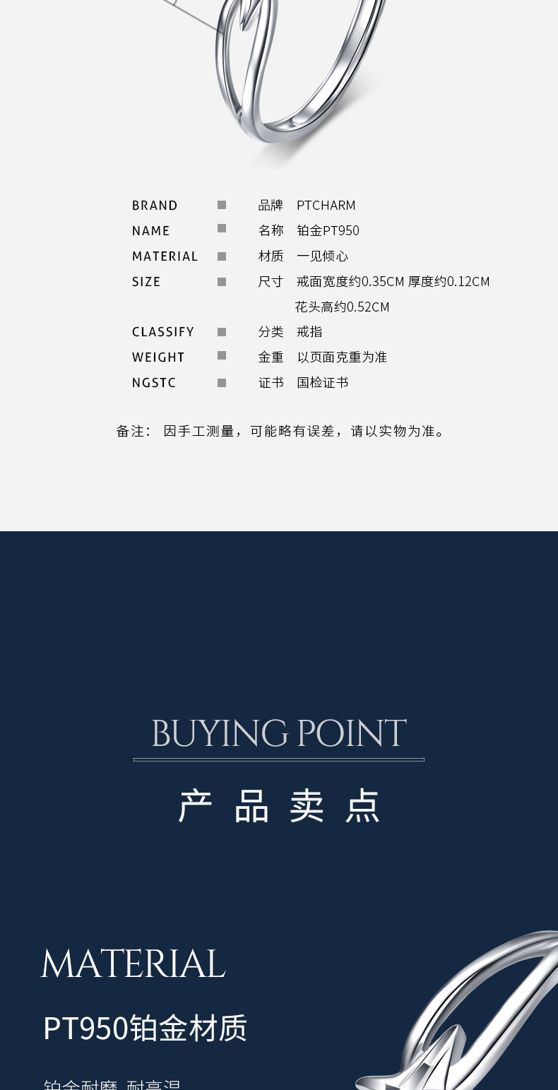 Pt.Charm new platinum living ring for women as a gift pt950 platinum tail ring love at first sight women's ring If not in stock, it can be customized. Take 1.8g as an example