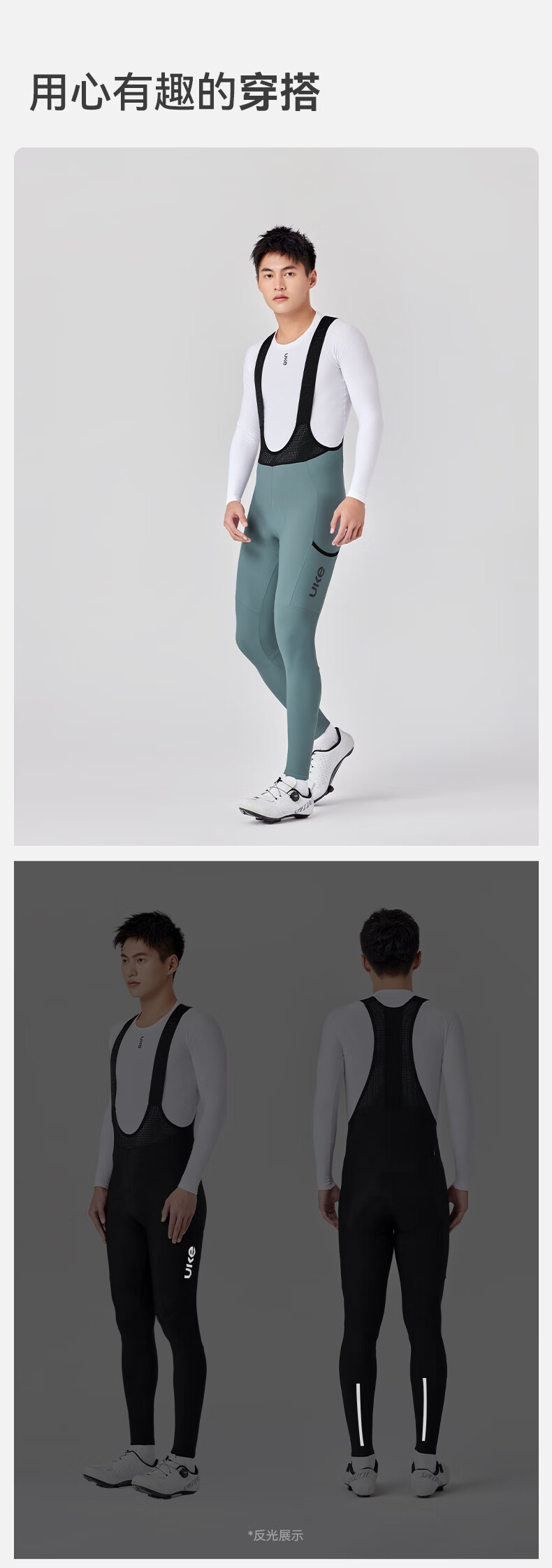 UKE Men's Outdoor Fleece Warm Bib Cycling Pants Autumn and Winter DWR Water Repellent Double Side Storage Pocket Trousers Chasing the Wind Black M