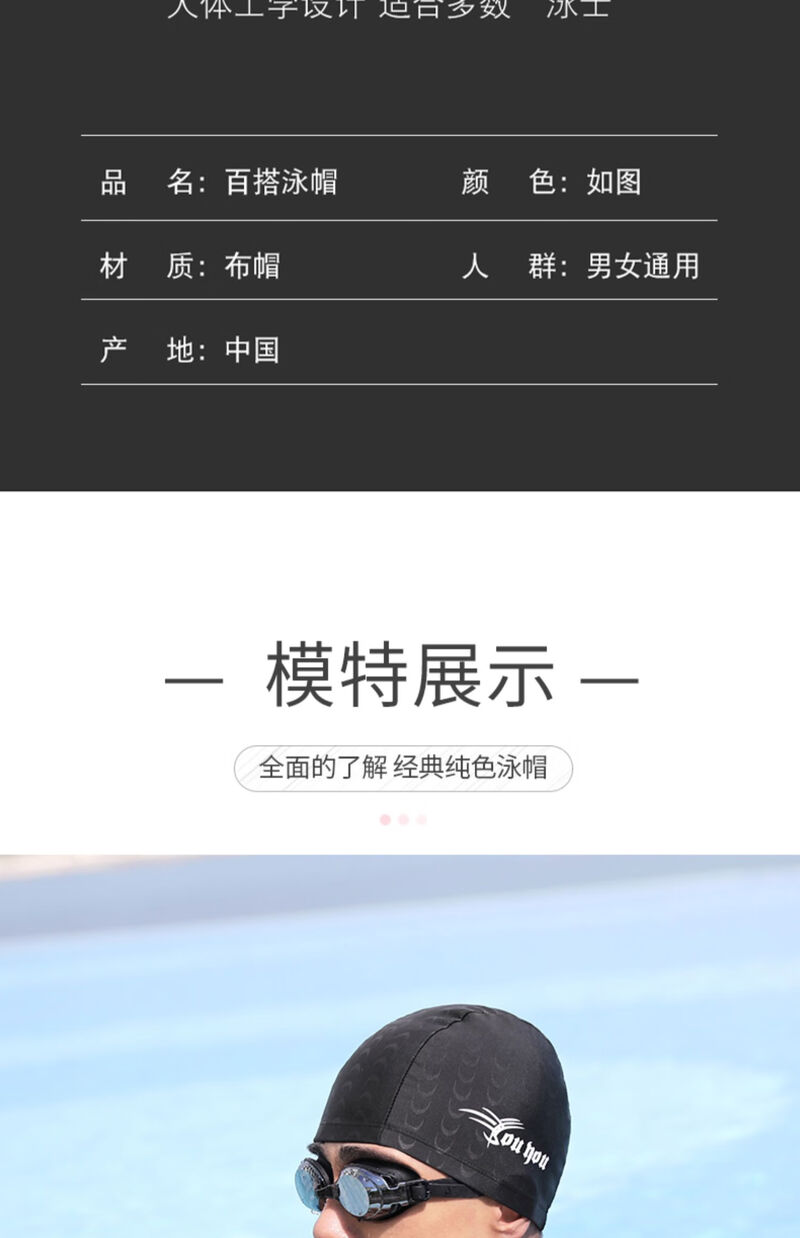 Swimming cap, men's swimming cap, fabric hood, ear protection cap, adult hot spring hat, swimming equipment, black single pack