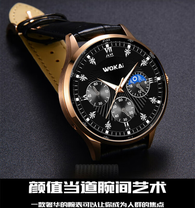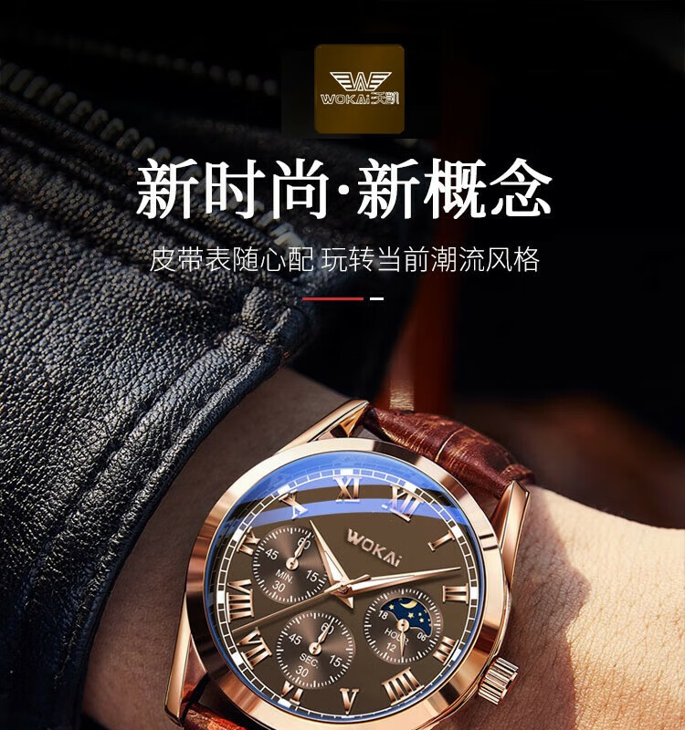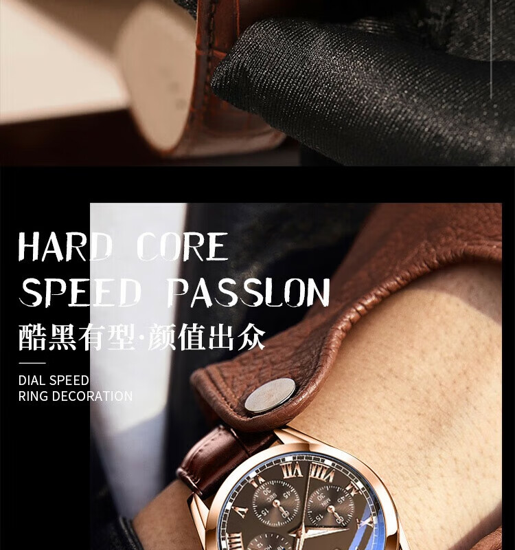 Genuine men's watch, high-end casual quartz watch, simple temperament, men's watch strap, high-looking Roman fashion watch, black sports model