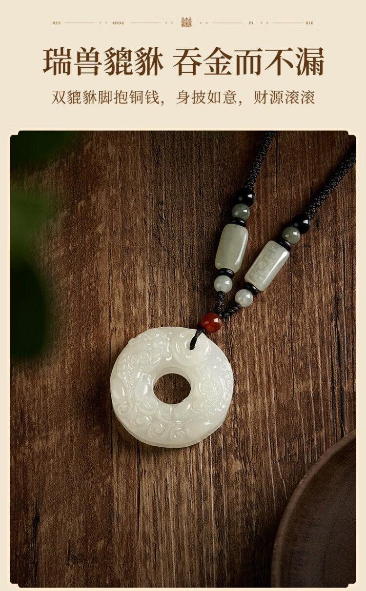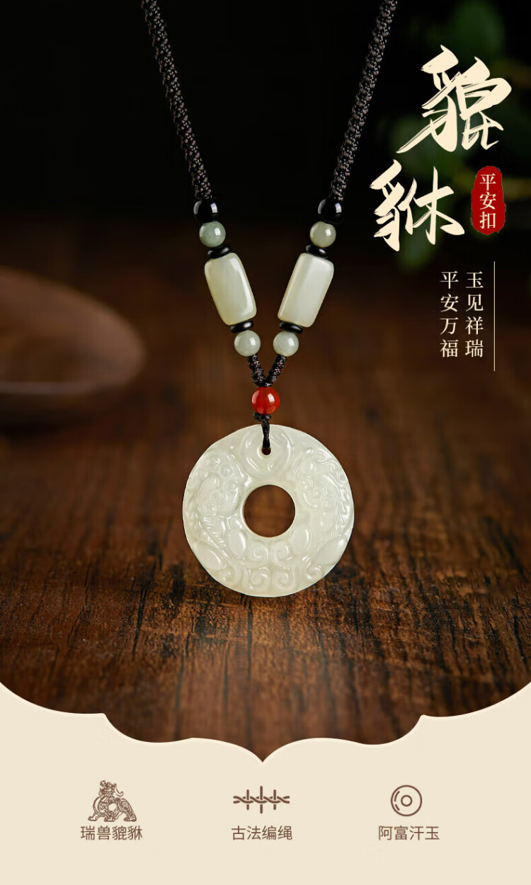 Central Chuang Fashion China Gold Authorized Necklace Men's Peace Buckle Jade Pixiu Pendant Birthday Gift for Boyfriend Afghan Jade Pixiu Peace Buckle Necklace