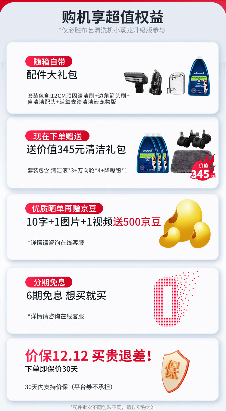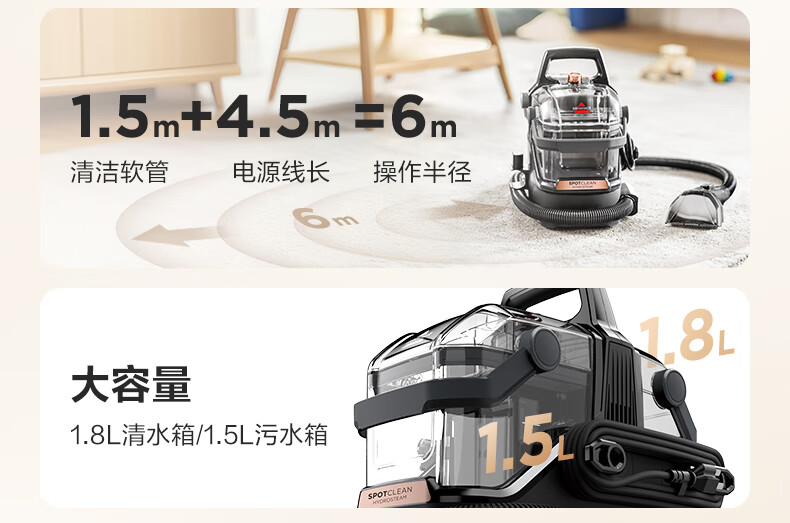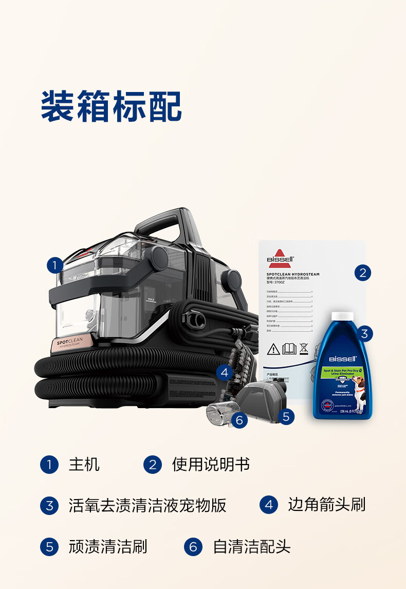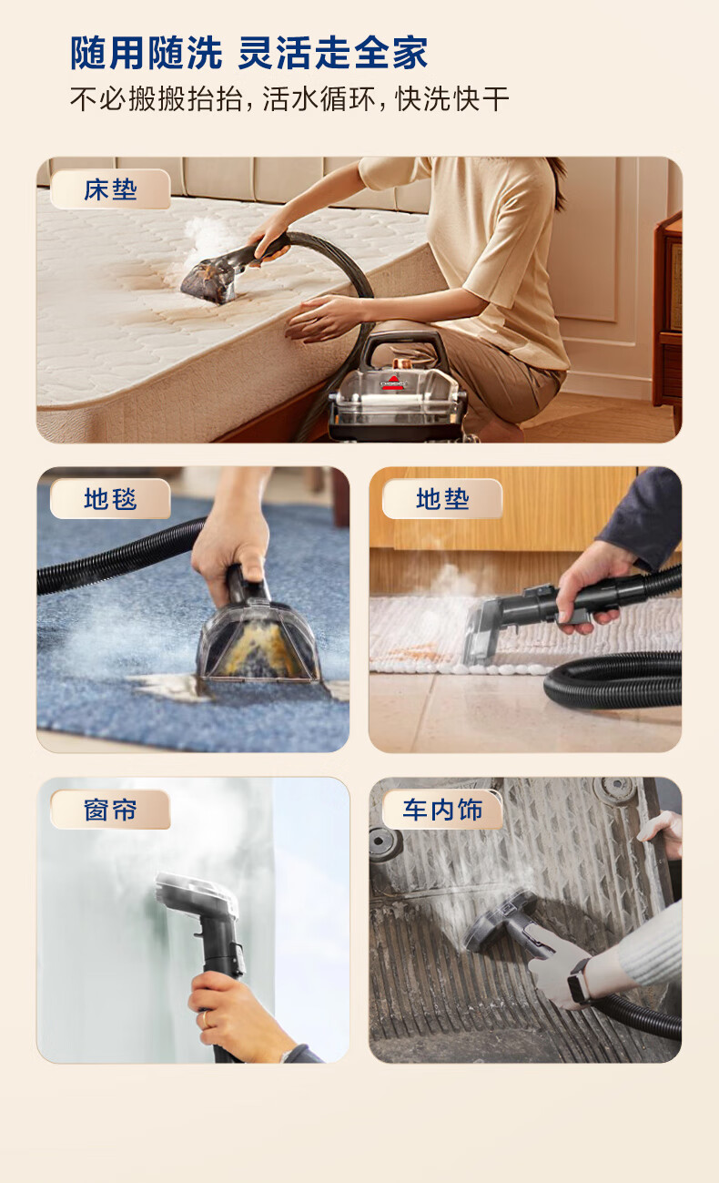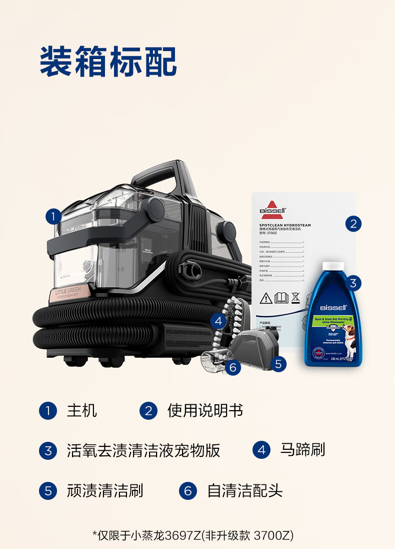 BISSELL Small Steamer Upgraded Version High Temperature Steam Cleaning Machine Fabric Sofa Multifunctional Cleaning Machine Washing Curtains Mattress Carpet Cleaning Machine Vacuum Cleaner Steam Washing and Suction All-in-One Machine Upgraded Version Multifunctional Cleaning Small Steamer-3700Z