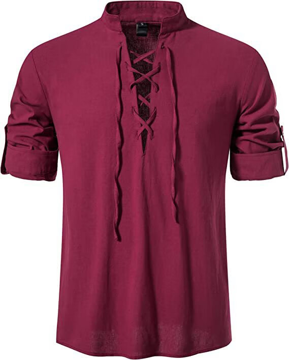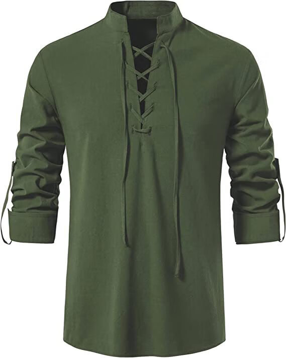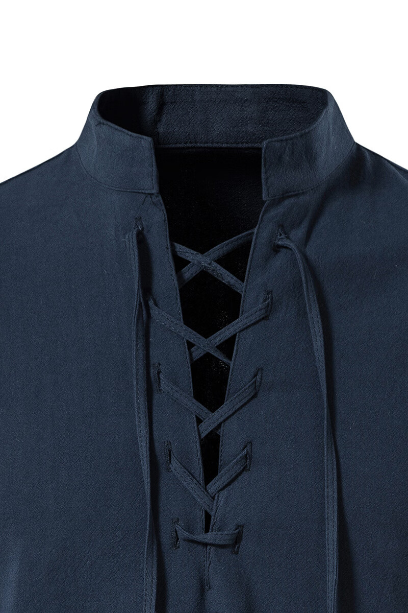 Men's Henley Medieval Retro Shirt Lace-Up Long Sleeve Shirt Nordic Style Renaissance Punk Performance Costume Navy L