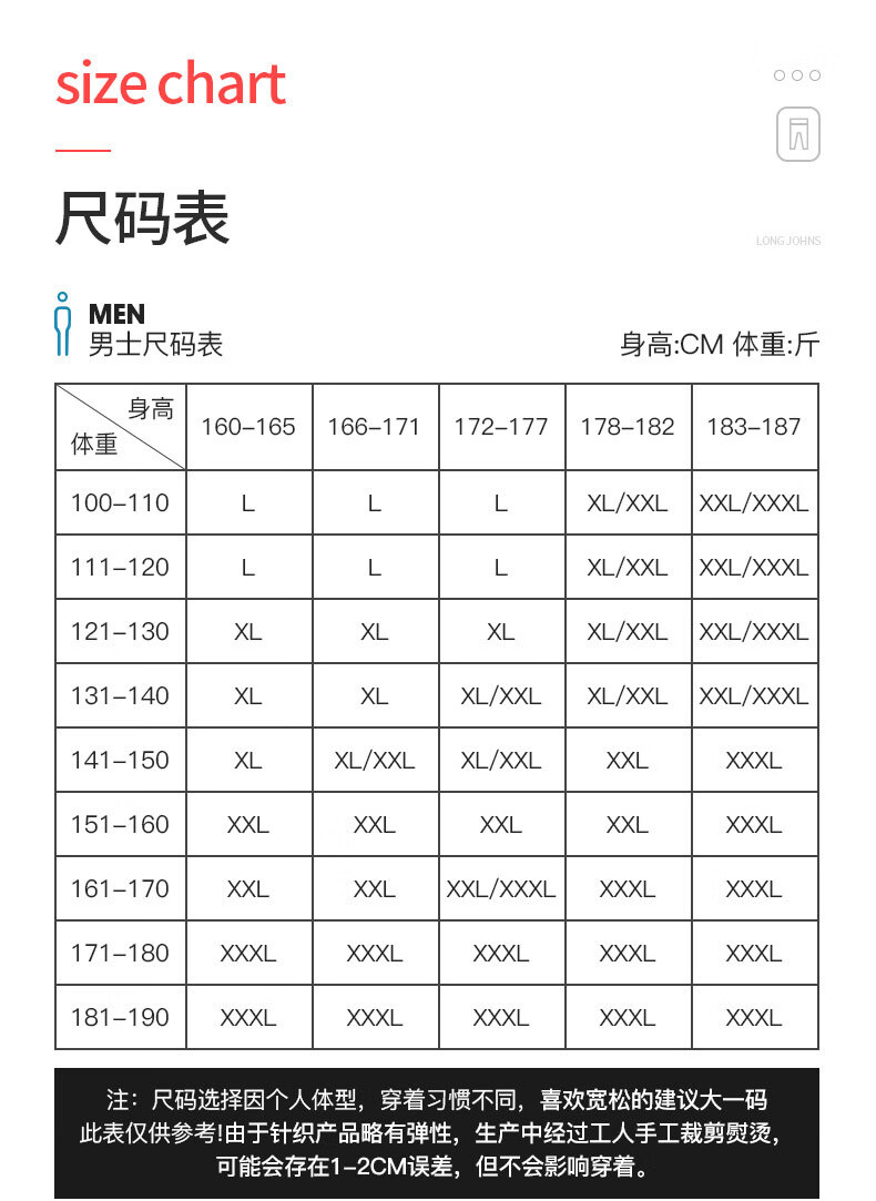 China (cm) 160-165/84-86 165-170 / 88-90 167-172 / 92-96 168-173 / 98-102 170-176 / 106-110