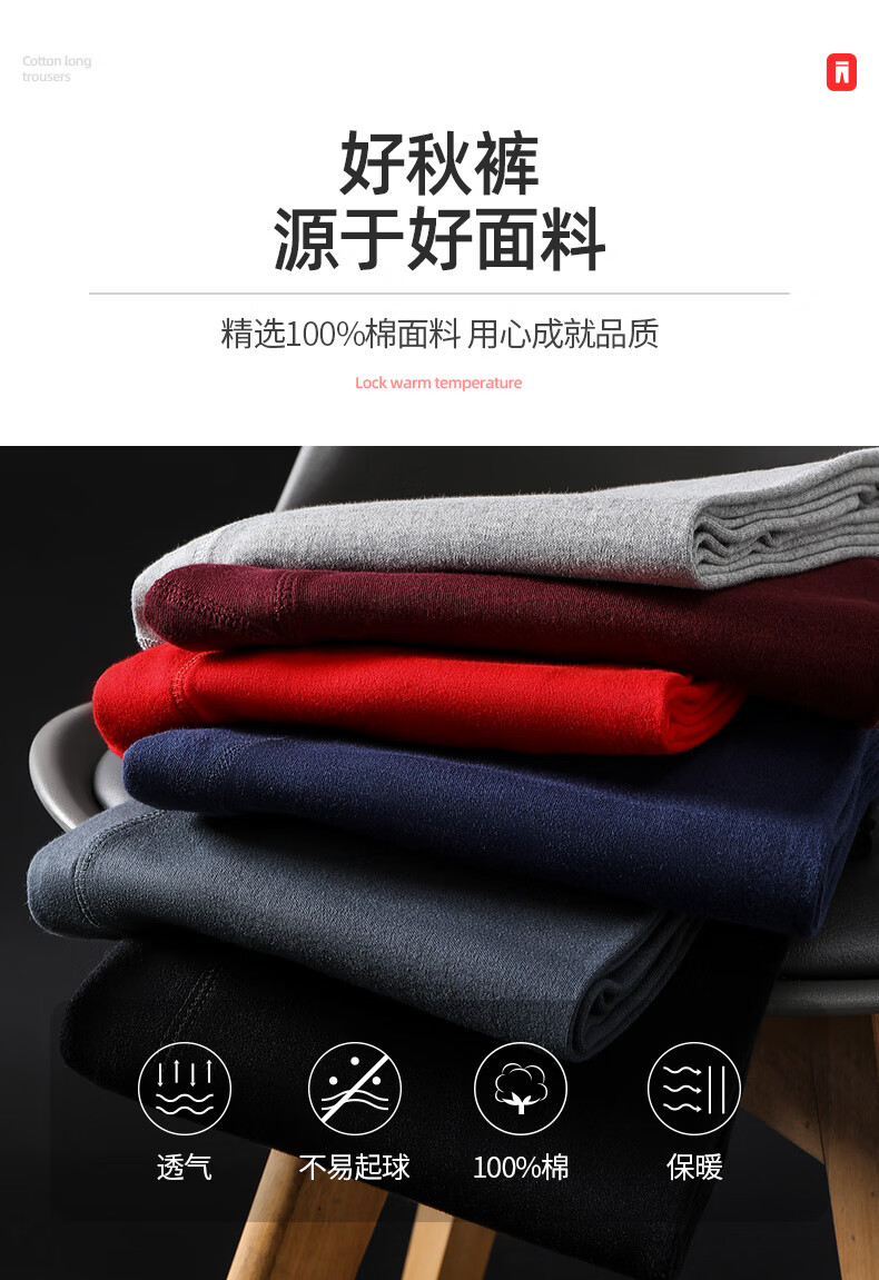 Yalu Men's Autumn Pants Men's Pure Cotton Line Pants Thin Cotton Wool Pants Leggings Winter Warm Pants Men Black + Dark Linen Gray (100% Cotton) 2XL Recommended Weight 135-160Jin Jin is equal to 0.5 kg