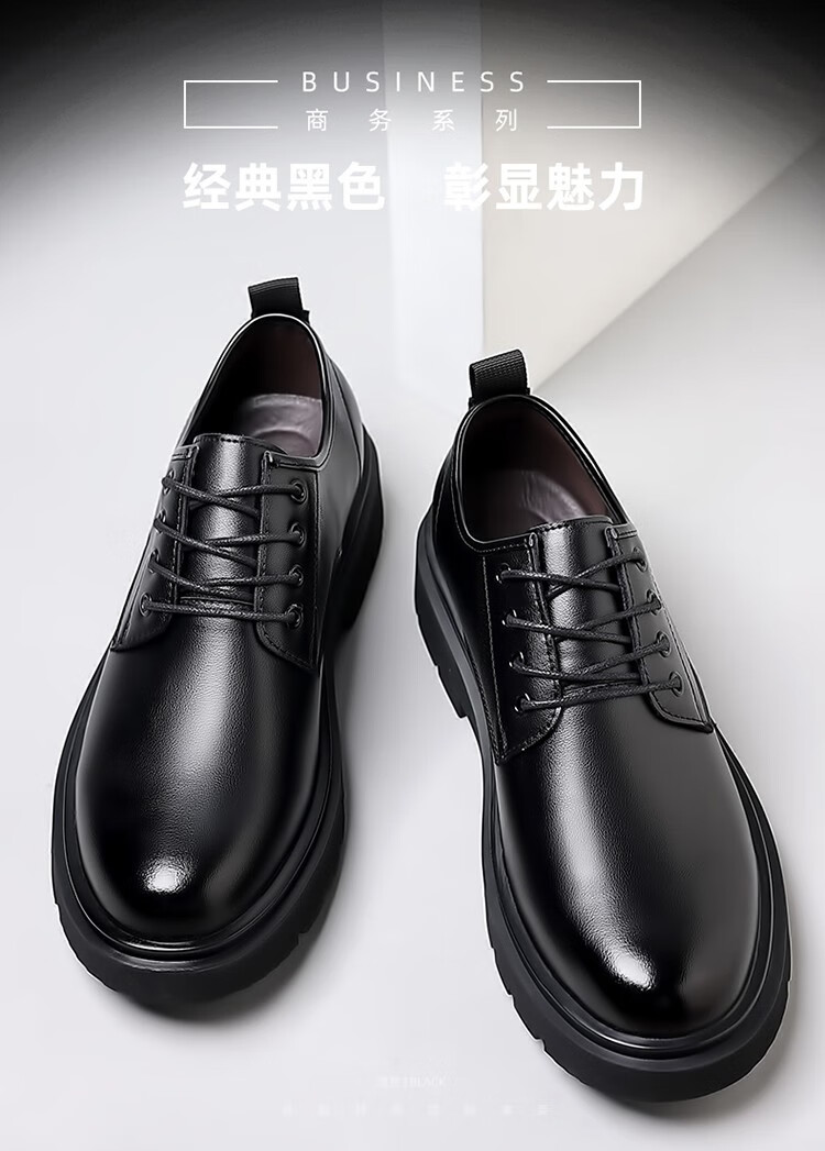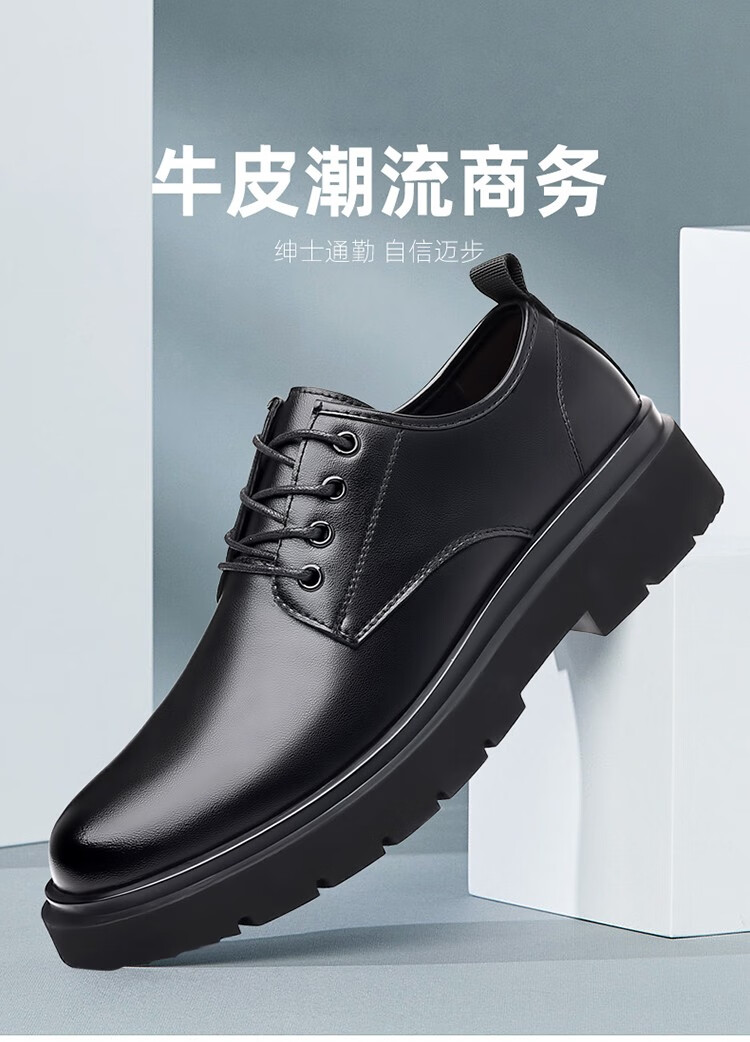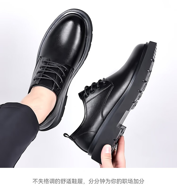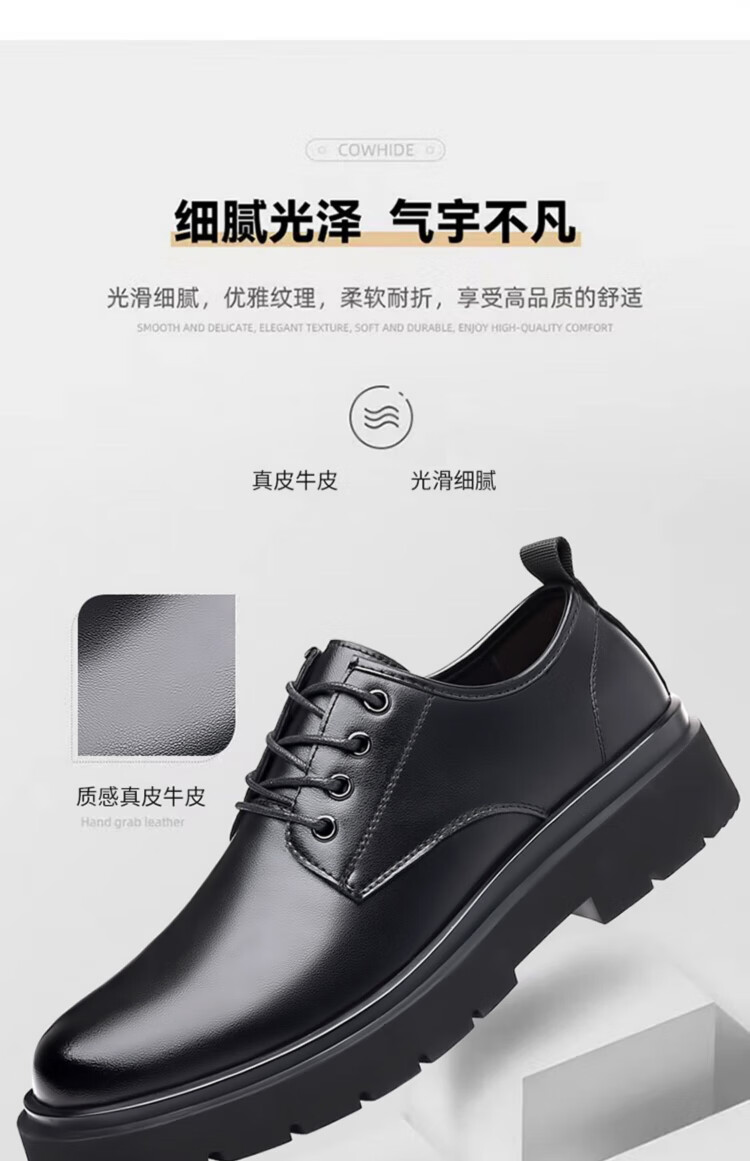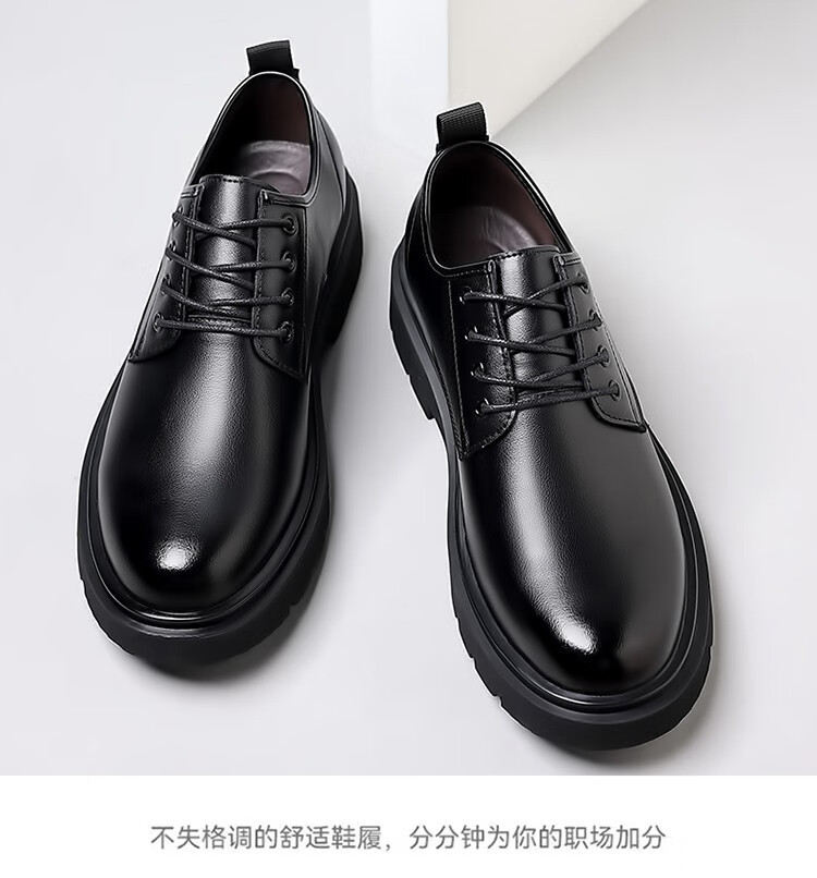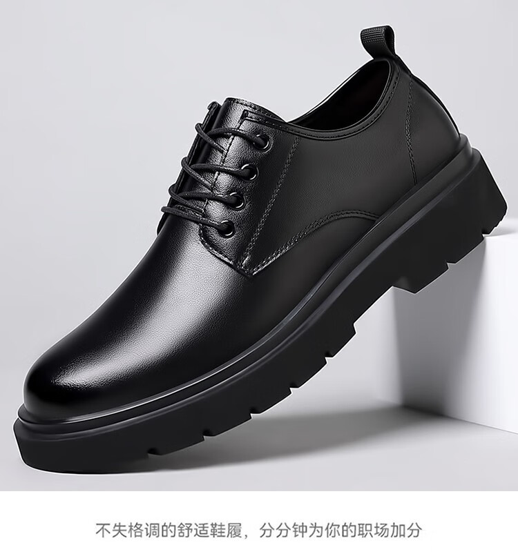 Woodpecker men's shoes winter genuine leather business formal leather shoes men's casual shoes British velvet warm thick-soled big-toe shoes black 762 four seasons 41