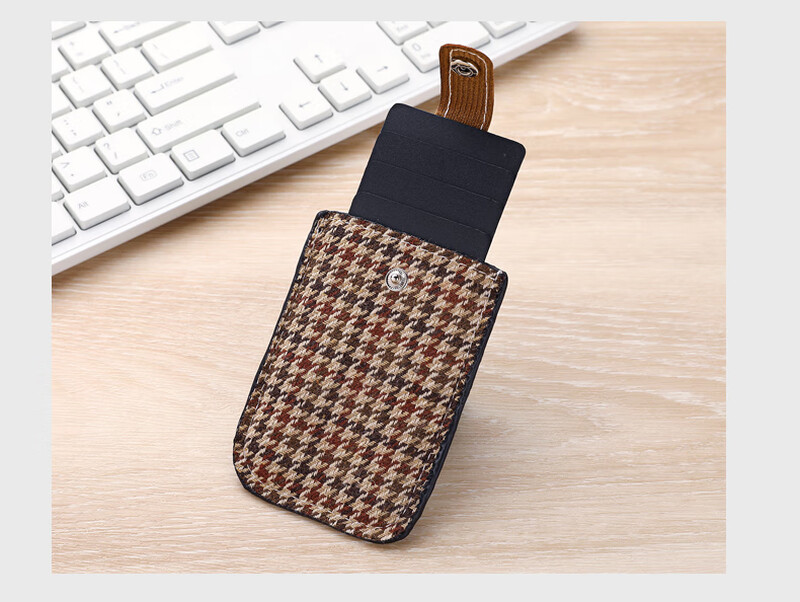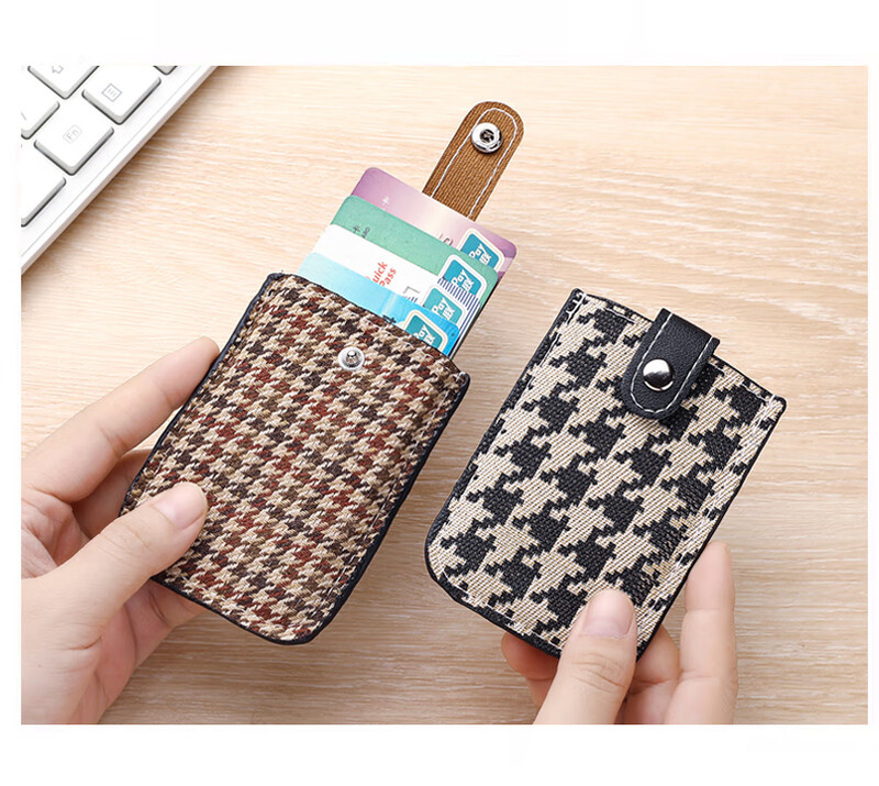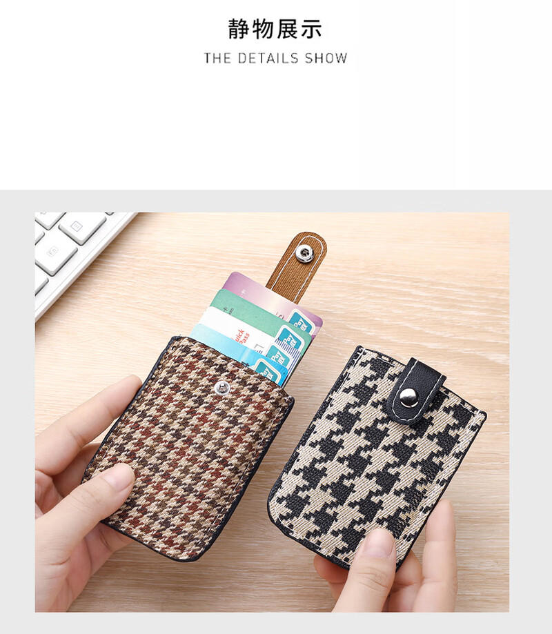 Card holder for women, mini, ultra-thin, anti-degaussing pull-out card holder, portable bank card holder, black + brown