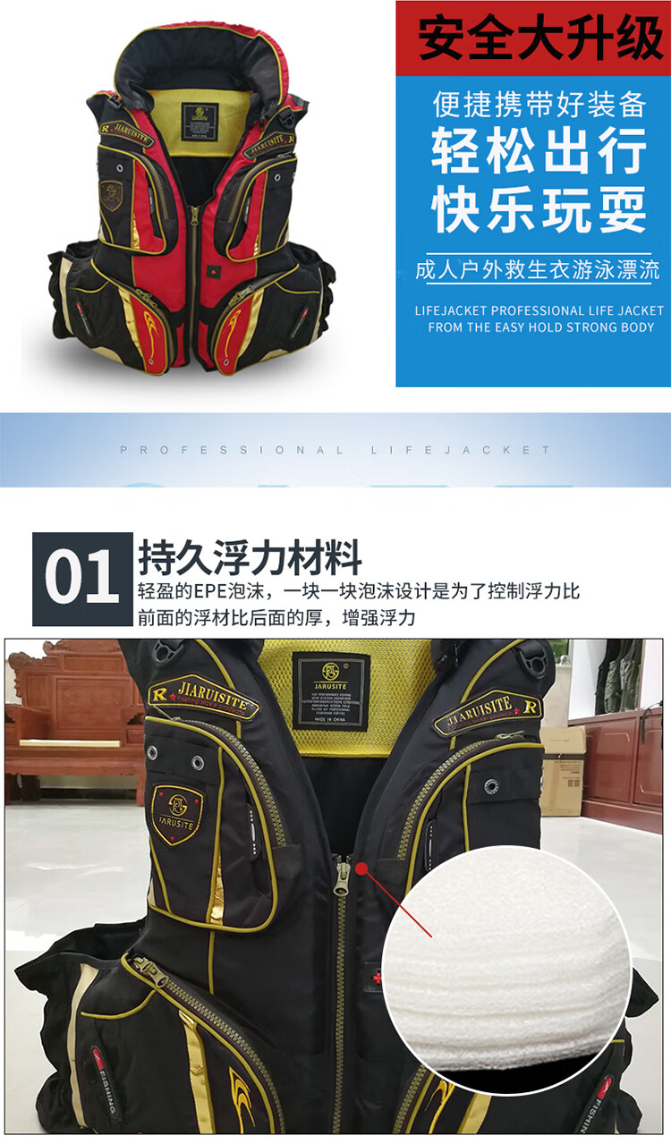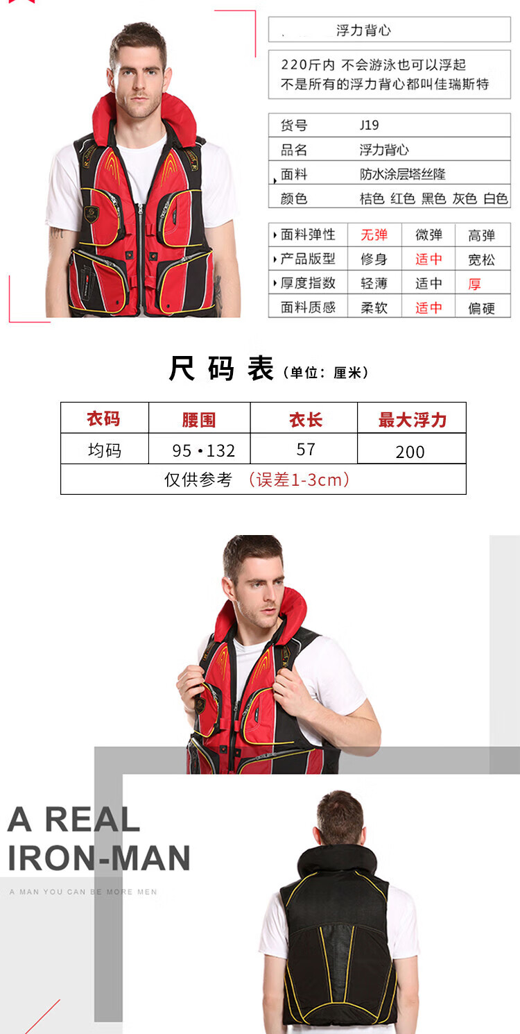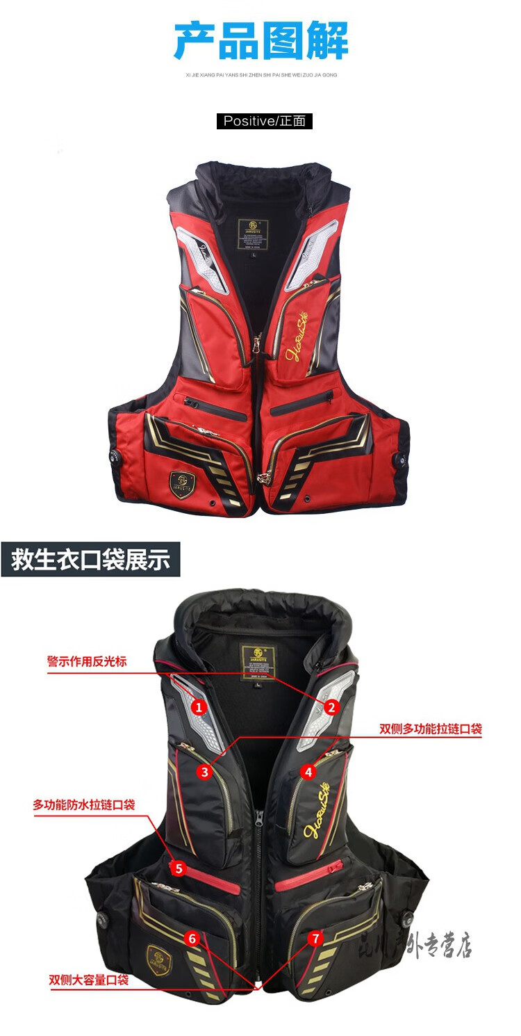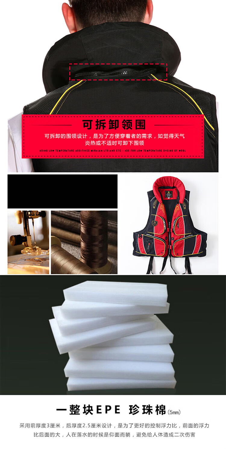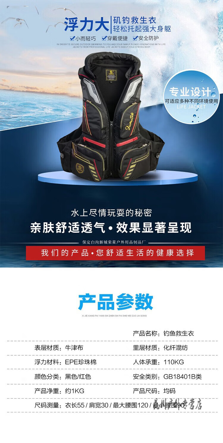 Nanqijiji fishing suit life jacket boat fishing vest fishing suit winter cold protection sea fishing life jacket adult 200 J30 black