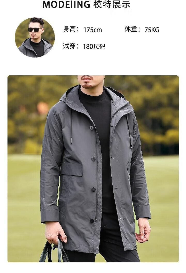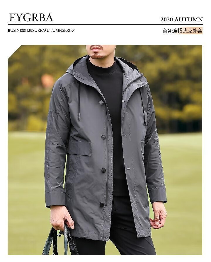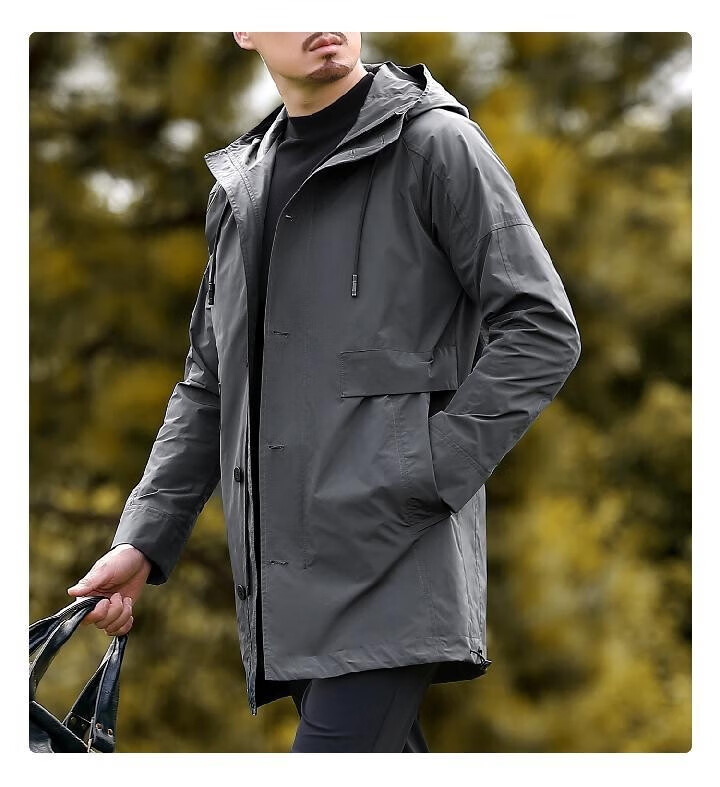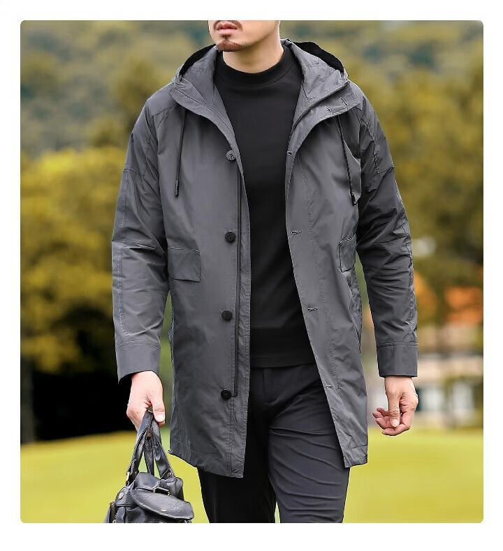 Romon Versatile Windbreaker Men's Mid-Length Autumn and Winter Business Casual Young and Middle-aged Warm Hooded Jacket Men's Dad's Down Style YR6629972 Gray M 170 Size