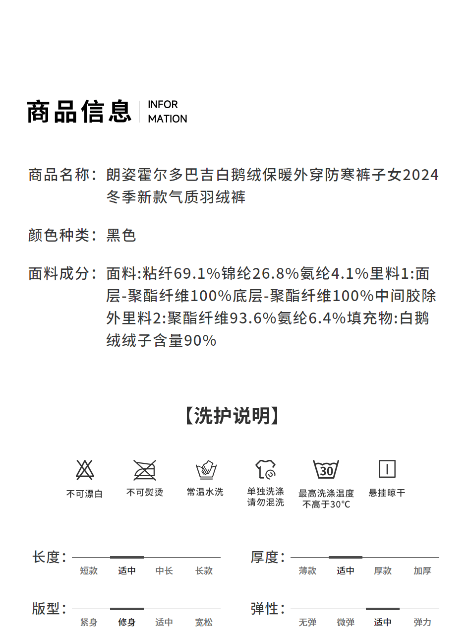 Langzi Holdobagi white goose down warm outer wear cold-proof pants for women winter new temperament down pants black S