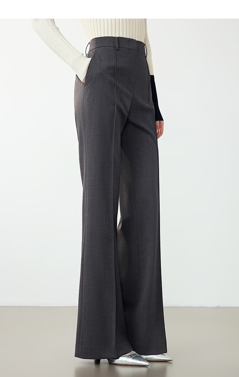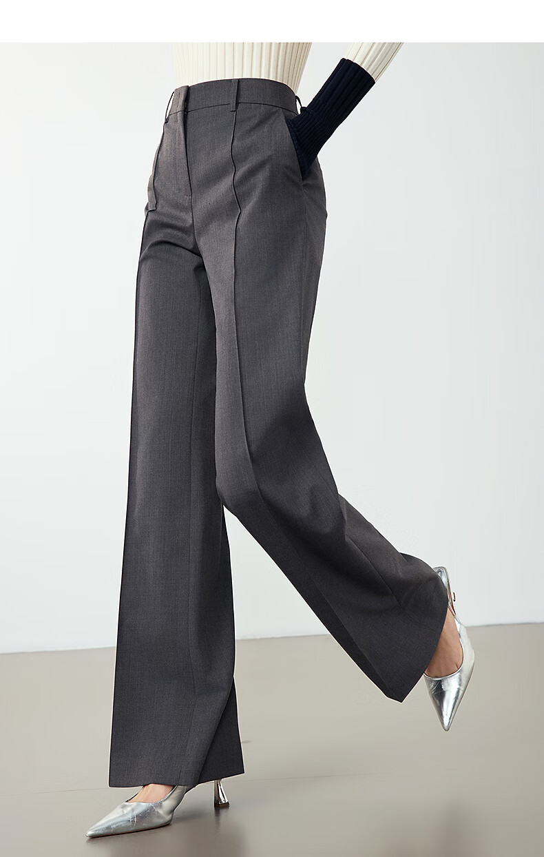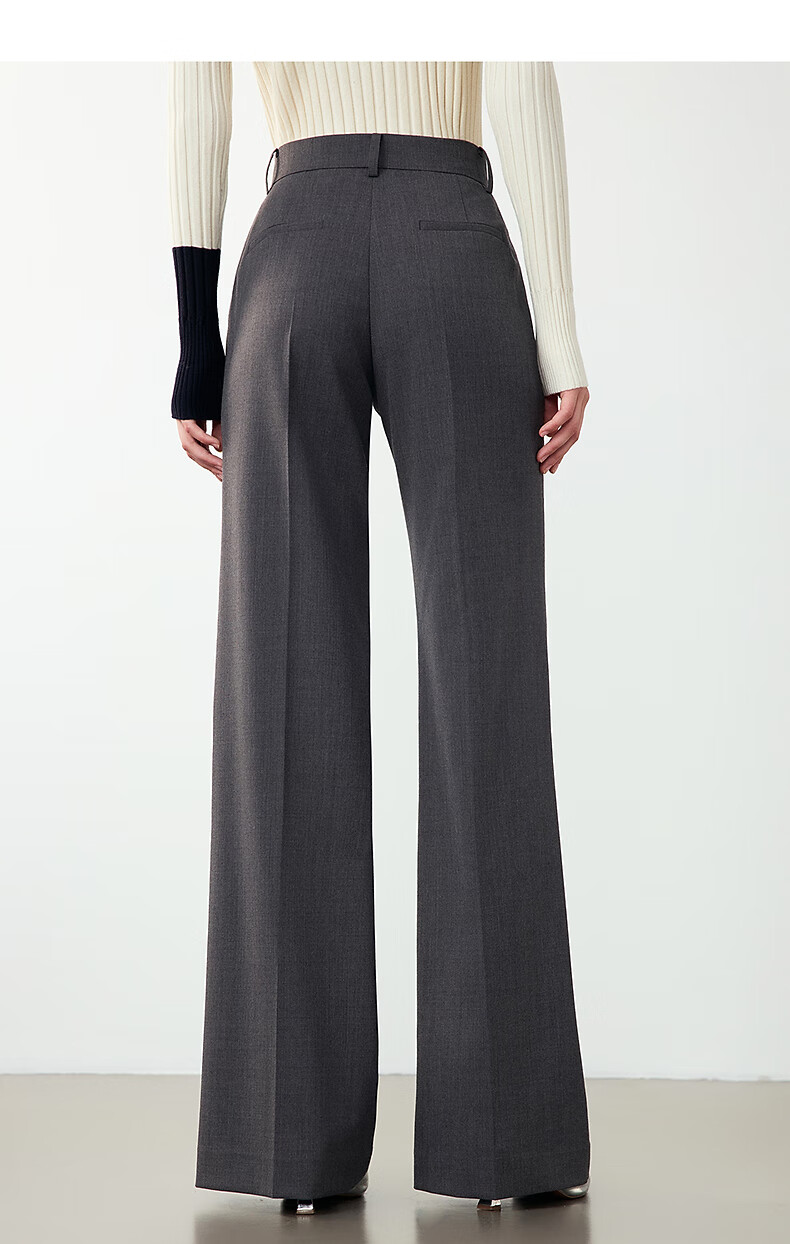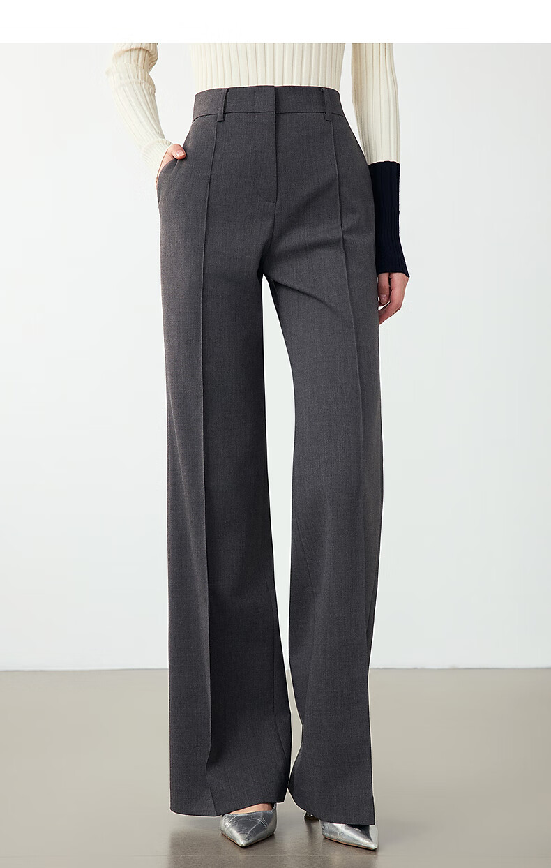 Langzi Wang Churan's same style wool professional gray straight wide-leg trousers retro suit pants winter new style Xingyue Gray L