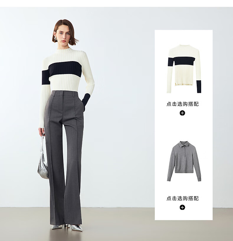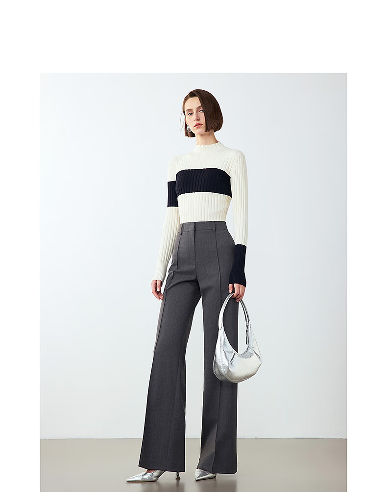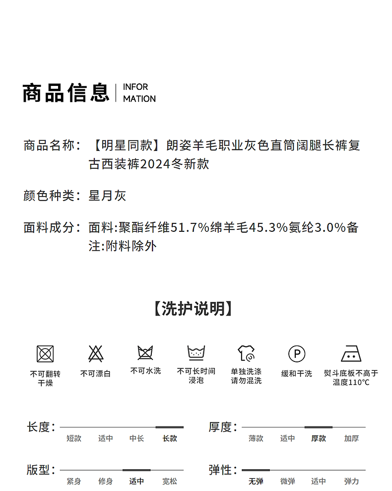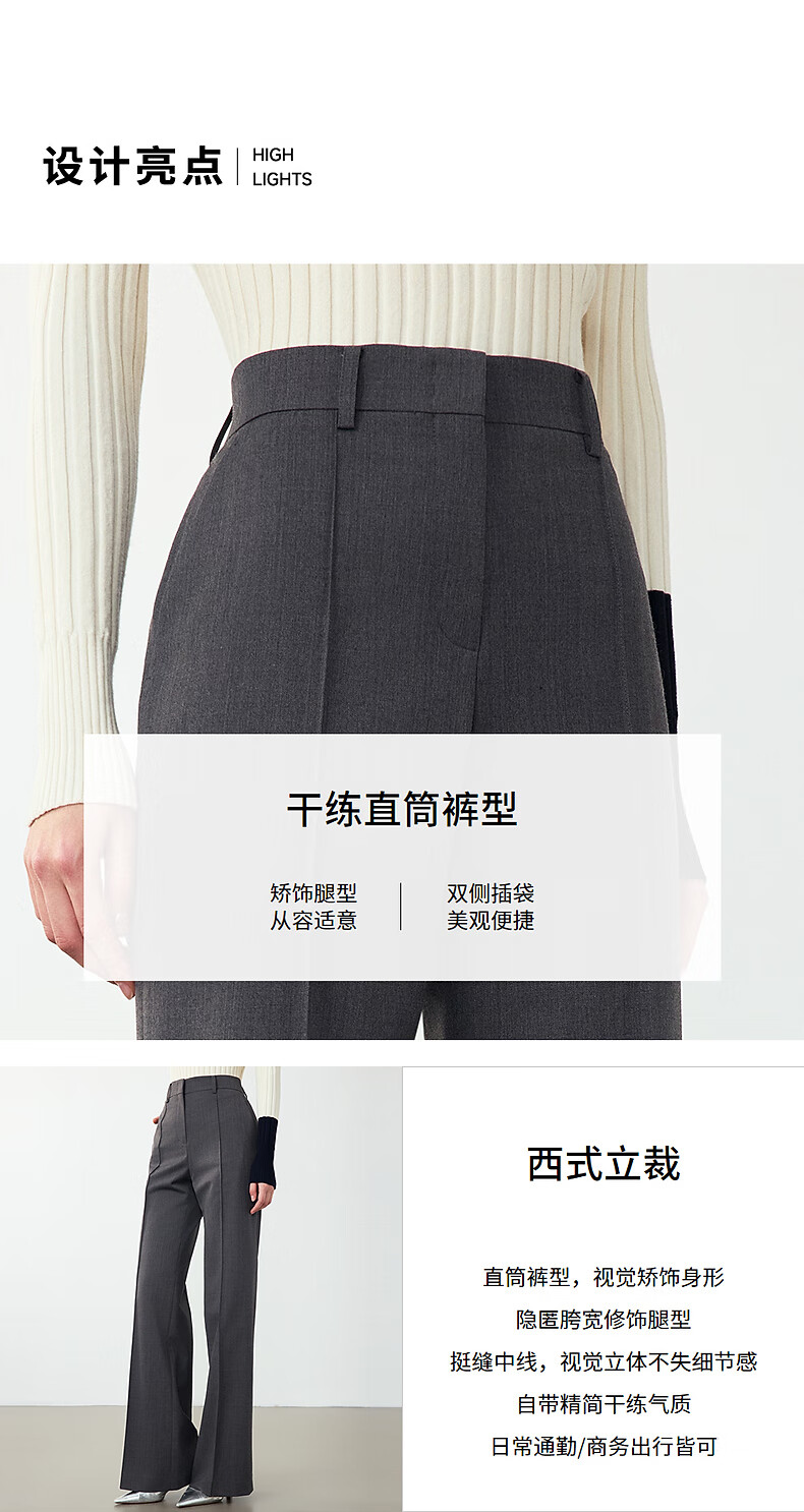 Langzi Wang Churan's same style wool professional gray straight wide-leg trousers retro suit pants winter new style Xingyue Gray L