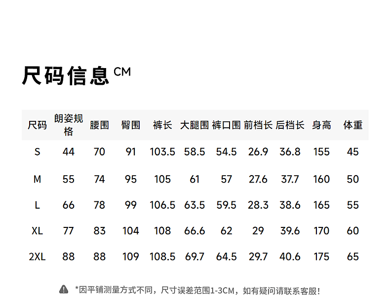 Outseam (cm) 99 cm 101.5 cm 104 cm 106.5 cm 109 cm