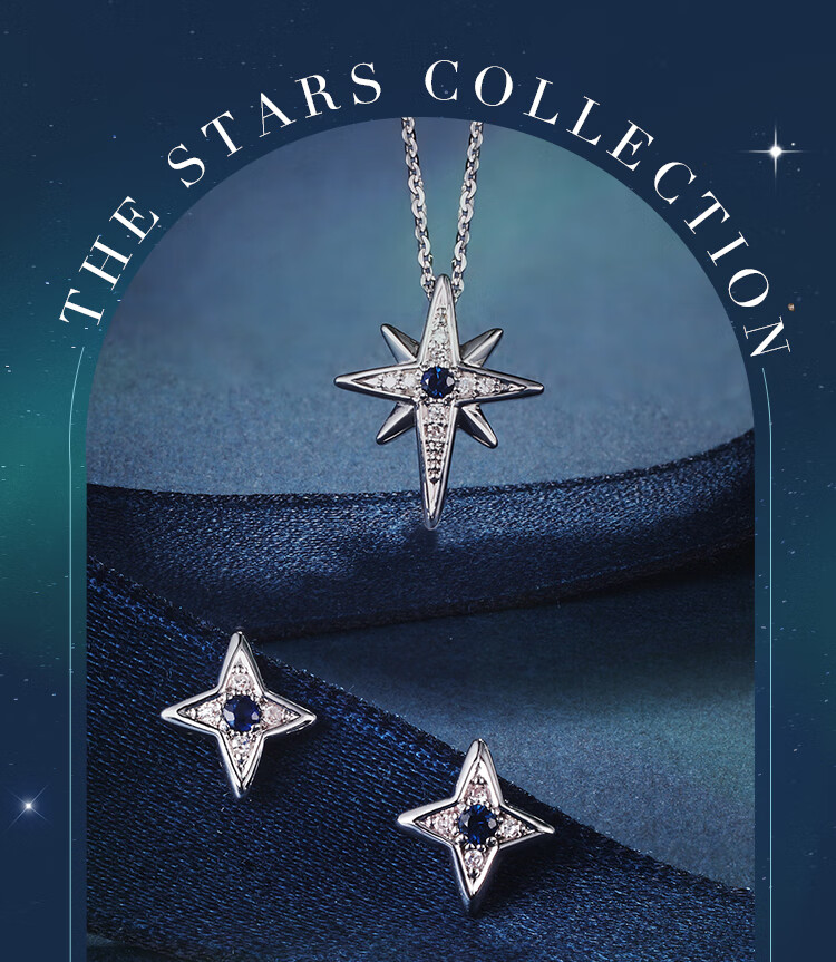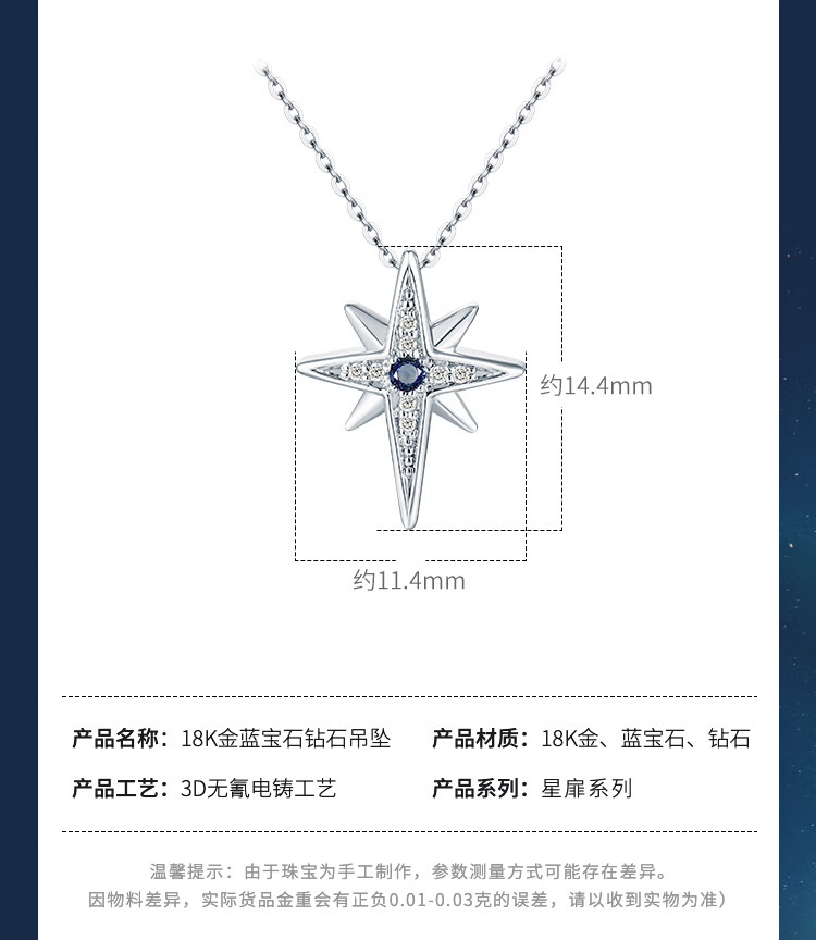 Chiba Jewelry 18K gold sapphire diamond pendant K gold necklace eight-pointed star necklace as a birthday gift for girlfriend. Pendant/gold weight about 0.4g/stone weight about 0.03ct