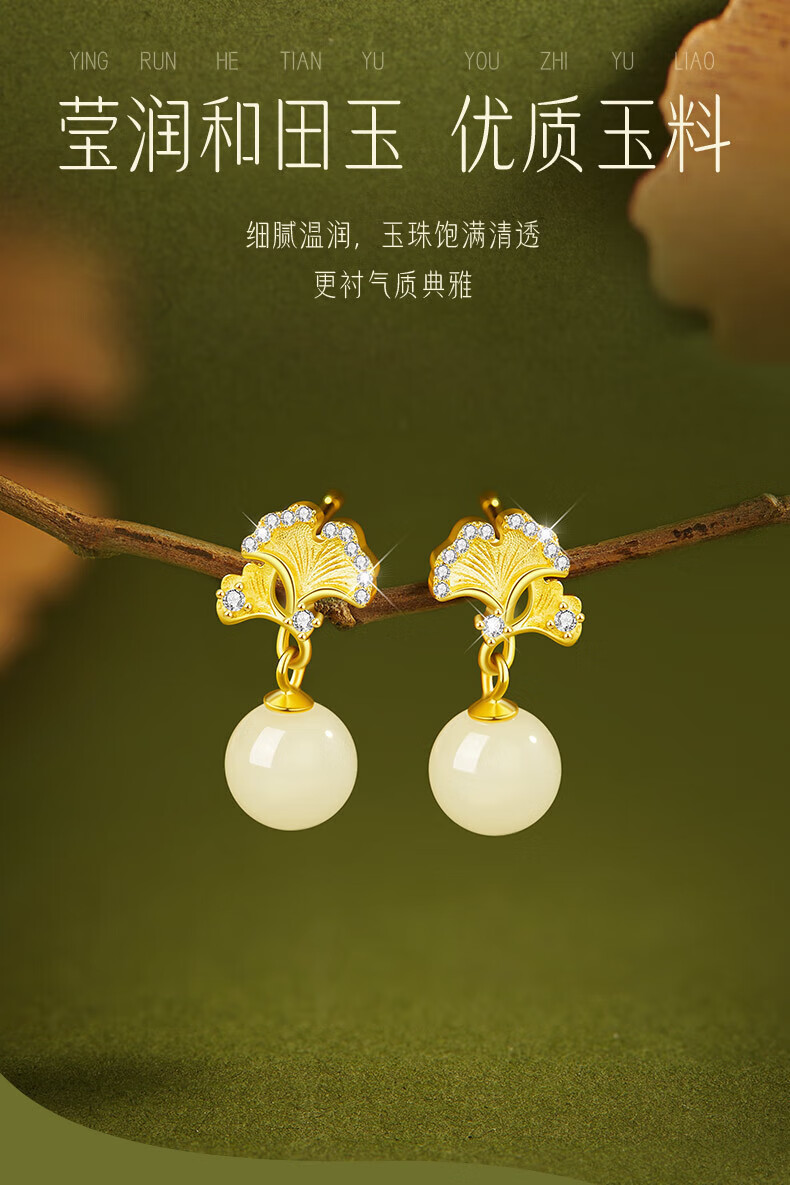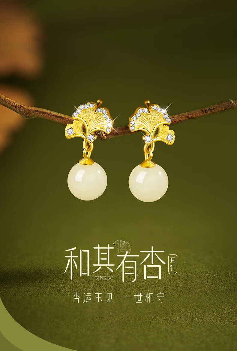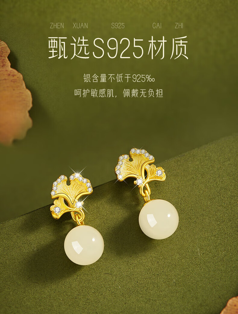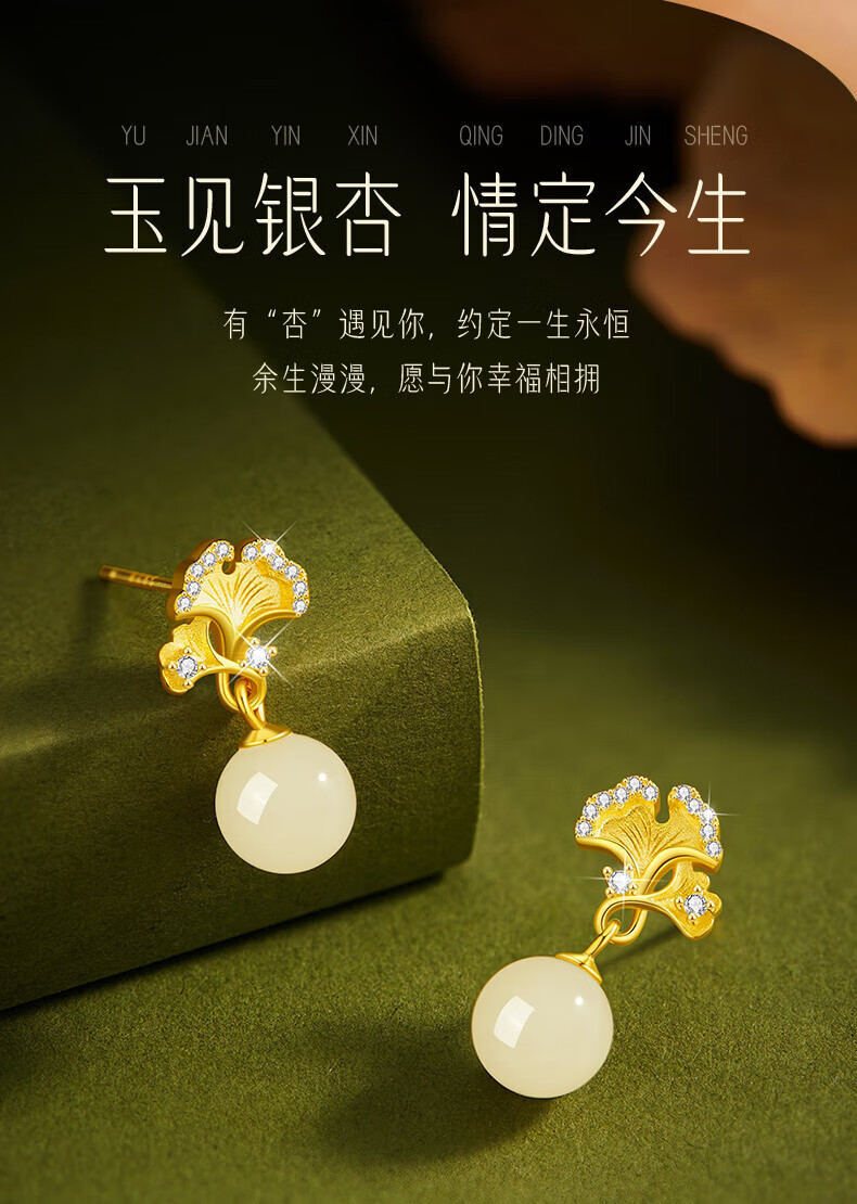 Jingli Jingda S925 Silver Hetian Jade Earrings for Women 2025 New Earrings Birthday Gifts for Women Exquisite, High-Grade and Practical Heqiyou Apricot and Hetian Jade Earrings Gift Box