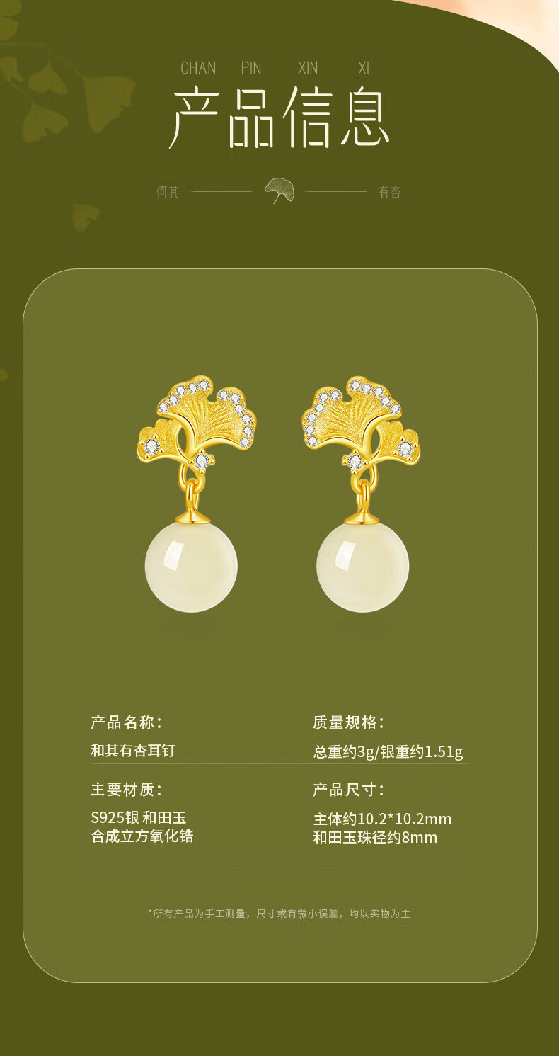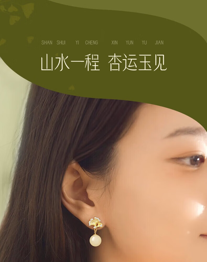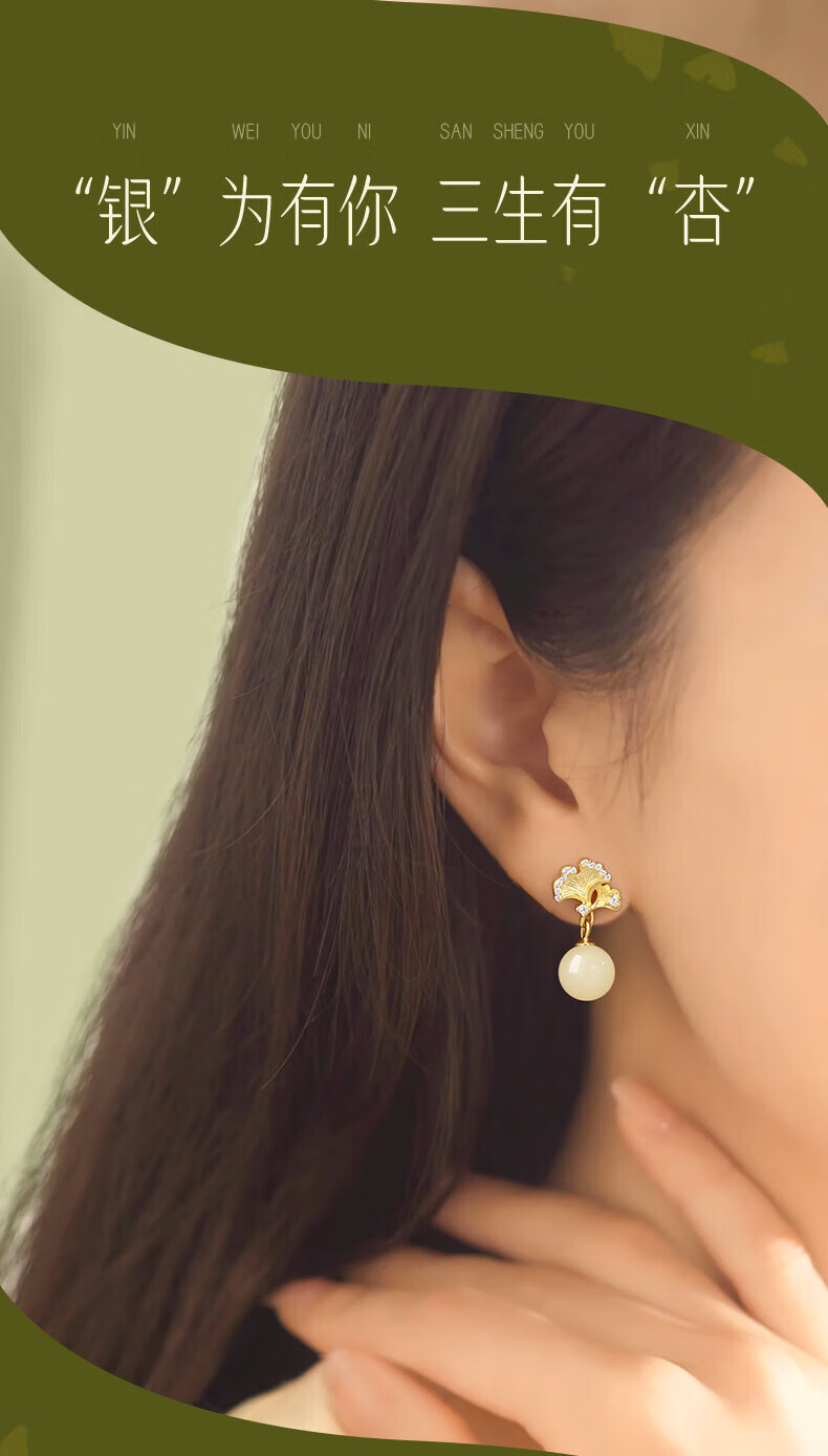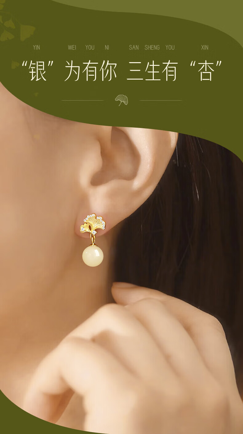 Jingli Jingda S925 Silver Hetian Jade Earrings for Women 2025 New Earrings Birthday Gifts for Women Exquisite, High-Grade and Practical Heqiyou Apricot and Hetian Jade Earrings Gift Box