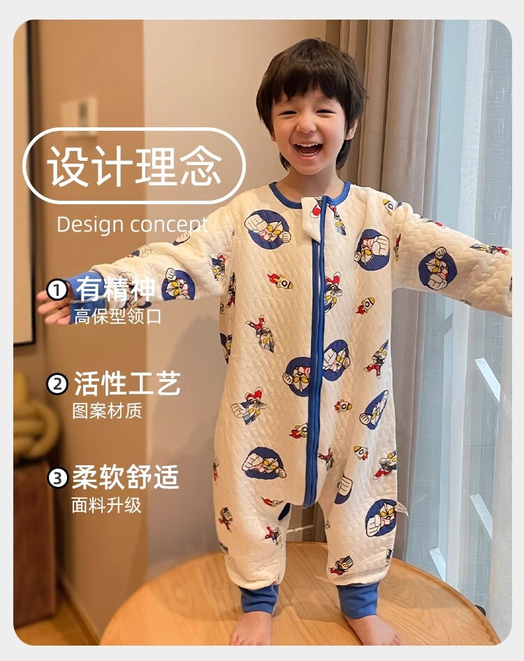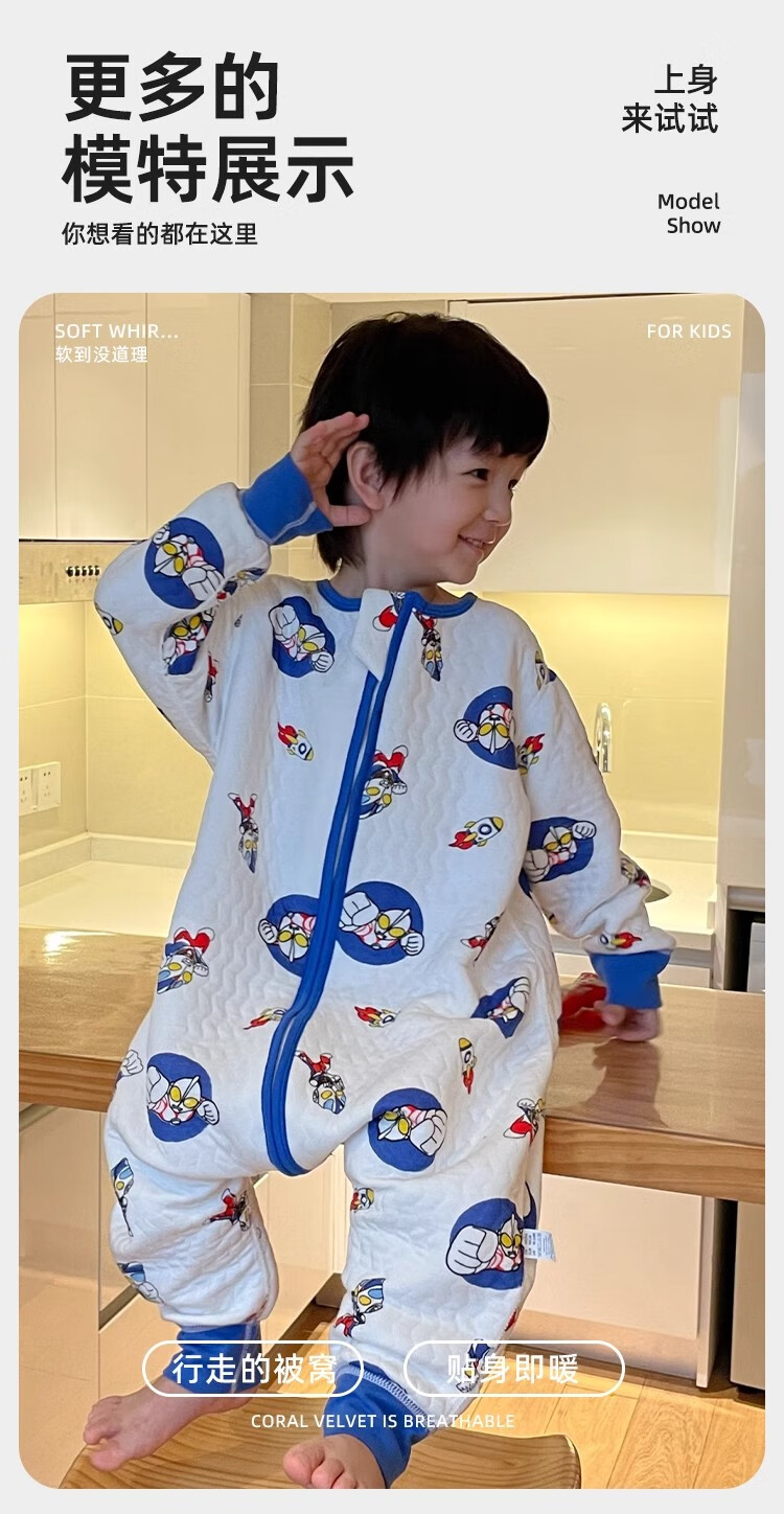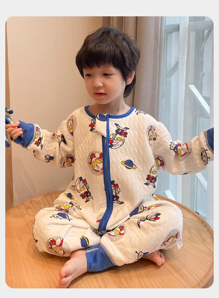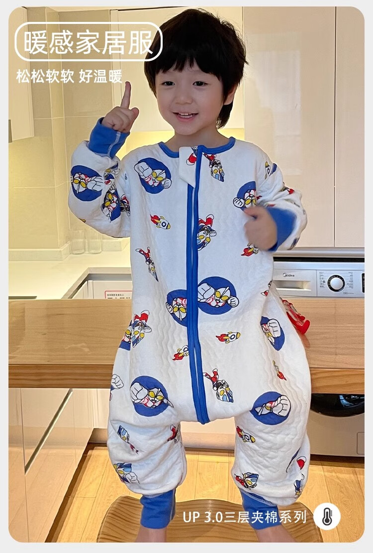 G.DUCKKIDS Children's Sleeping Bag Autumn and Winter Ultraman Three-layer Quilt Anti-Kick Quilt for Big Children Boys Spring and Autumn Baby One-piece Pajamas Boneless Cotton Silo Floral Size 160 Height 150-160cm *
