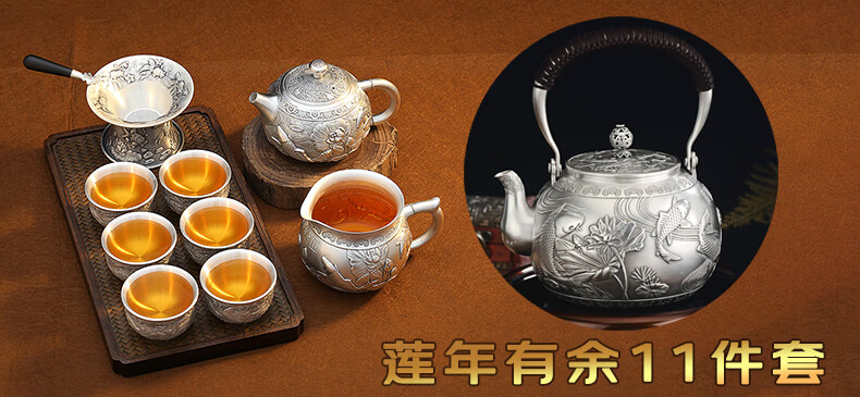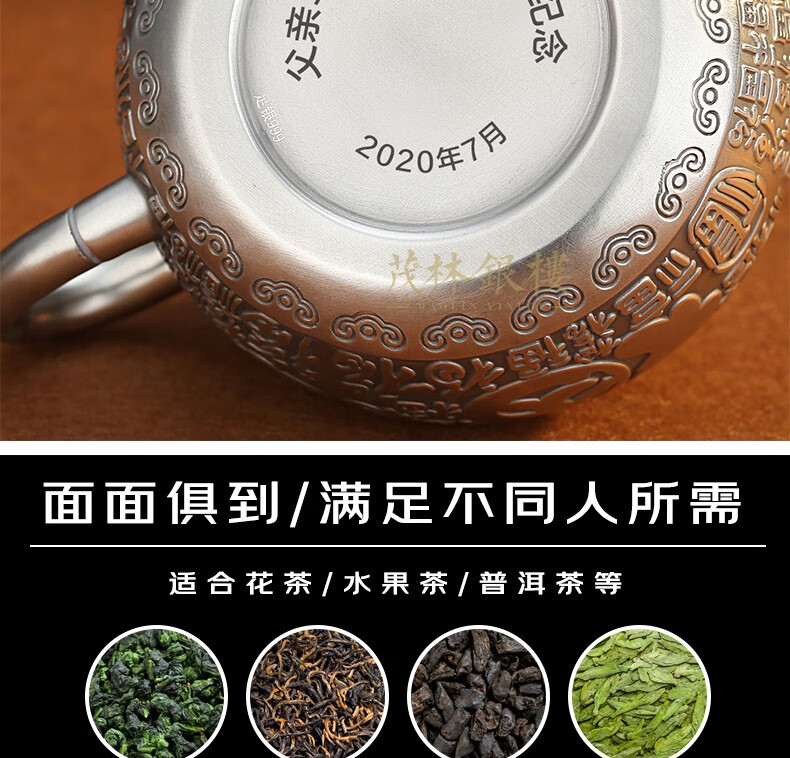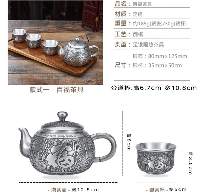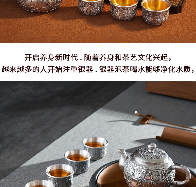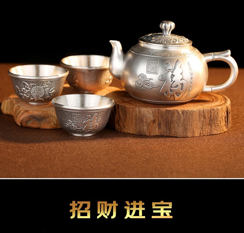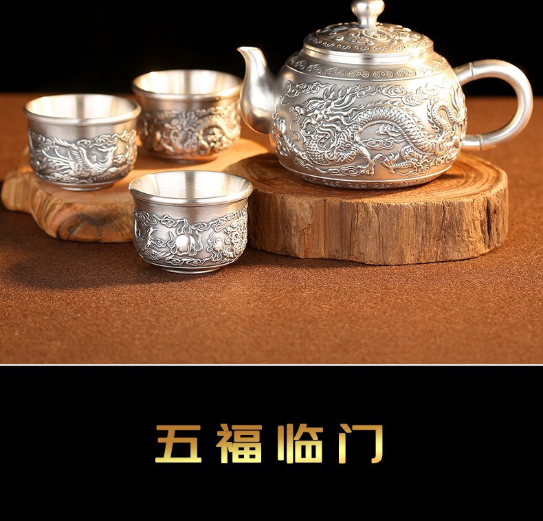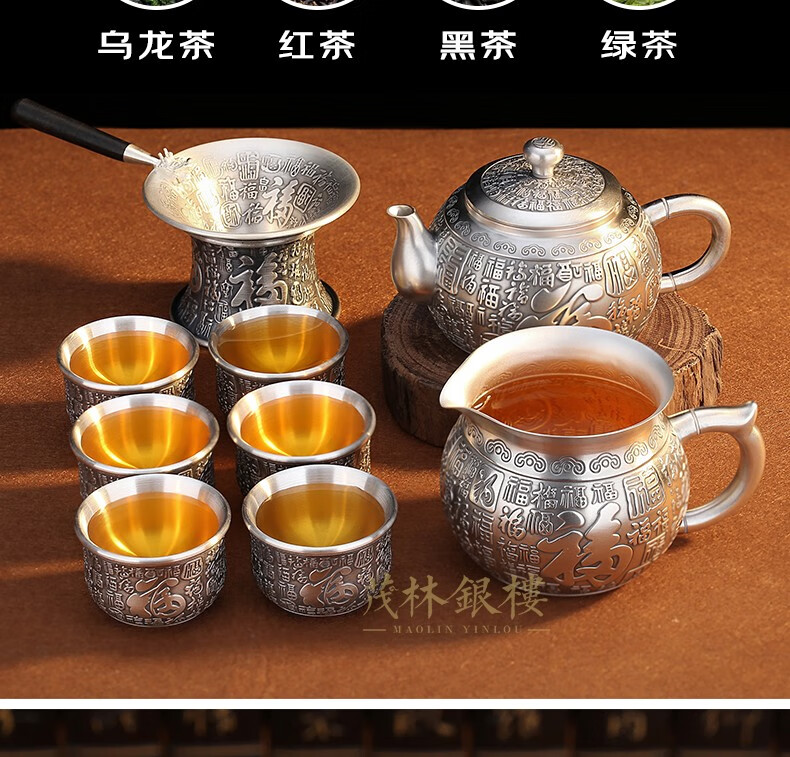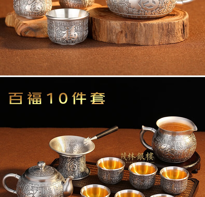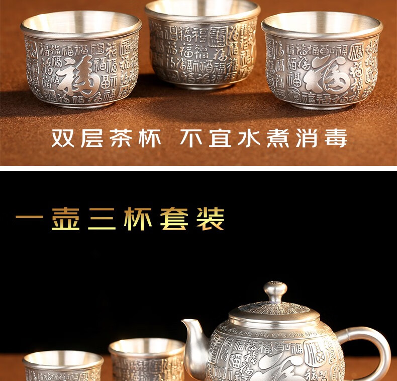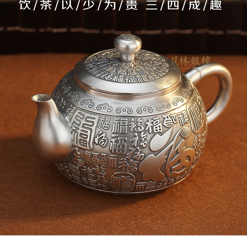 Maolin Silver House Silver Teapot S999 Pure Silver Tea Set Pfaff Kung Fu Tea Making Silver Cup Double-layer Insulated Silverware as Gift for Elders Single Teapot 180g Default Pfaff