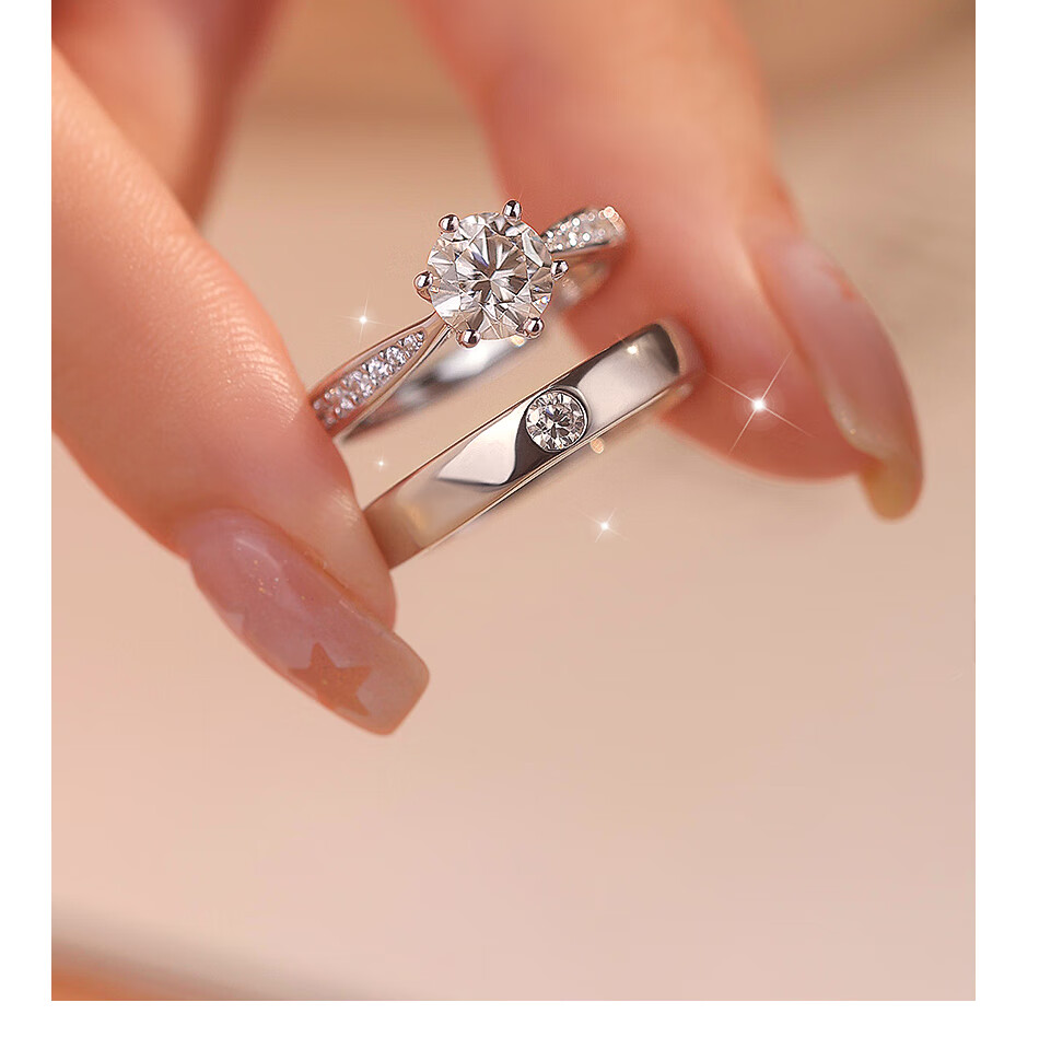 MZMZ Platinum Ring pt950 Platinum Couple Ring Proposal Diamond Ring Valentine's Day Birthday Gift for Girlfriend Local Warehouse/Next Day Delivery - Light Luxury Living Pair of Rings