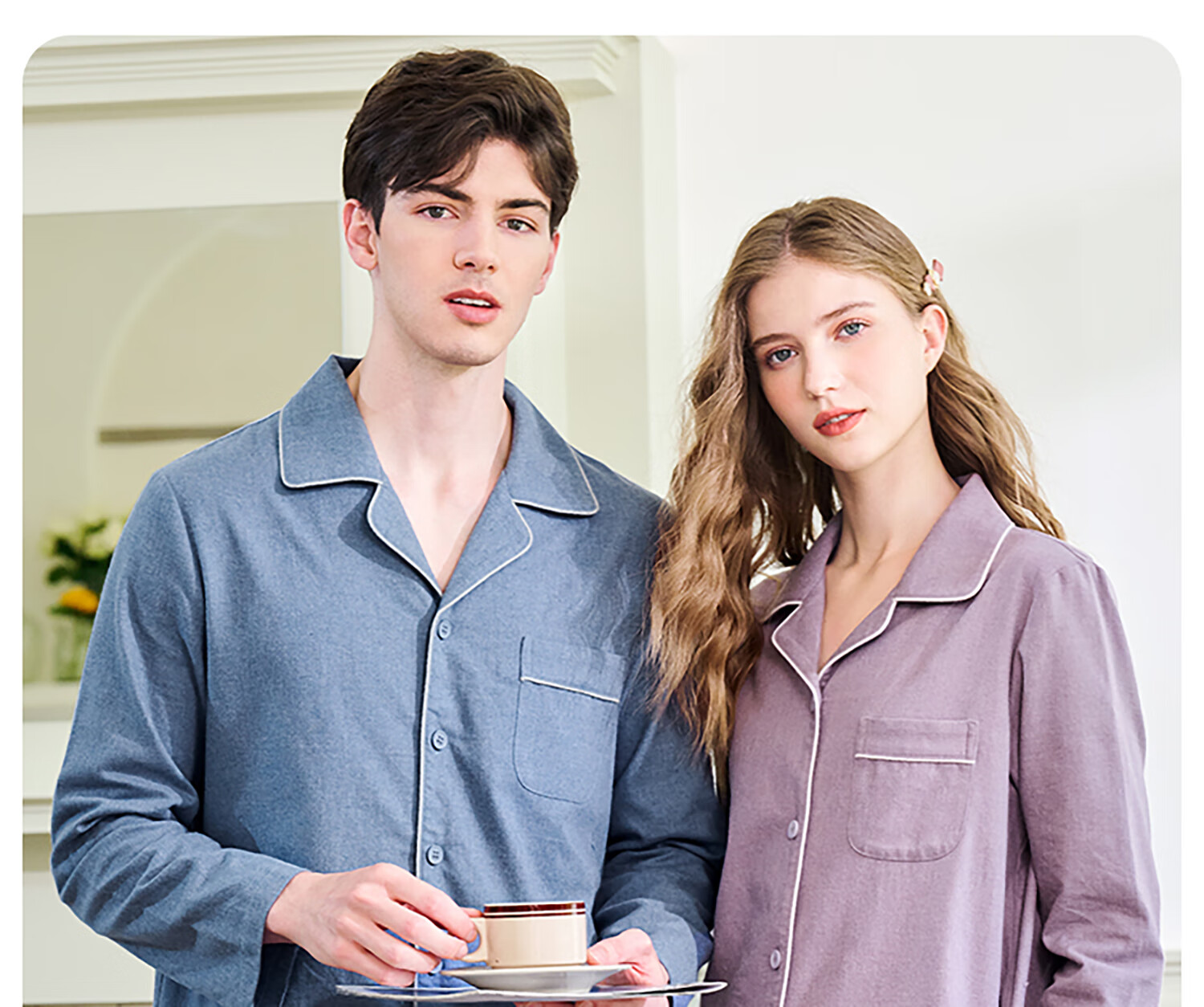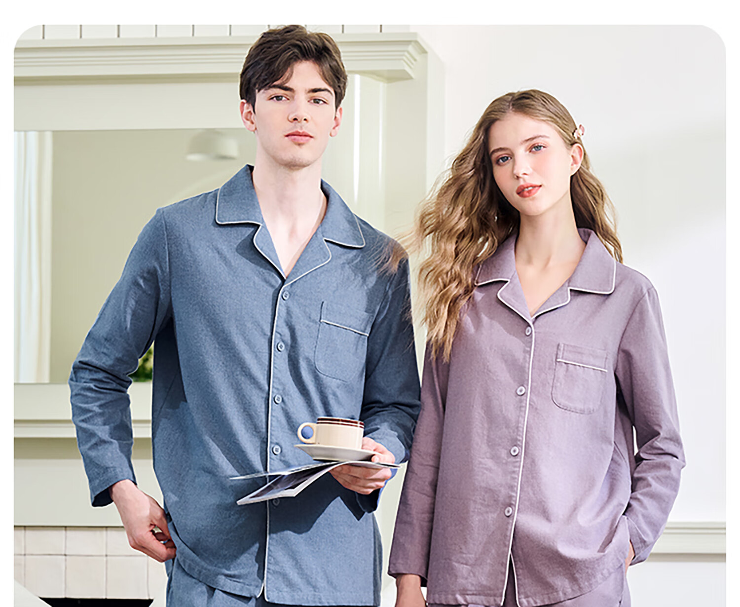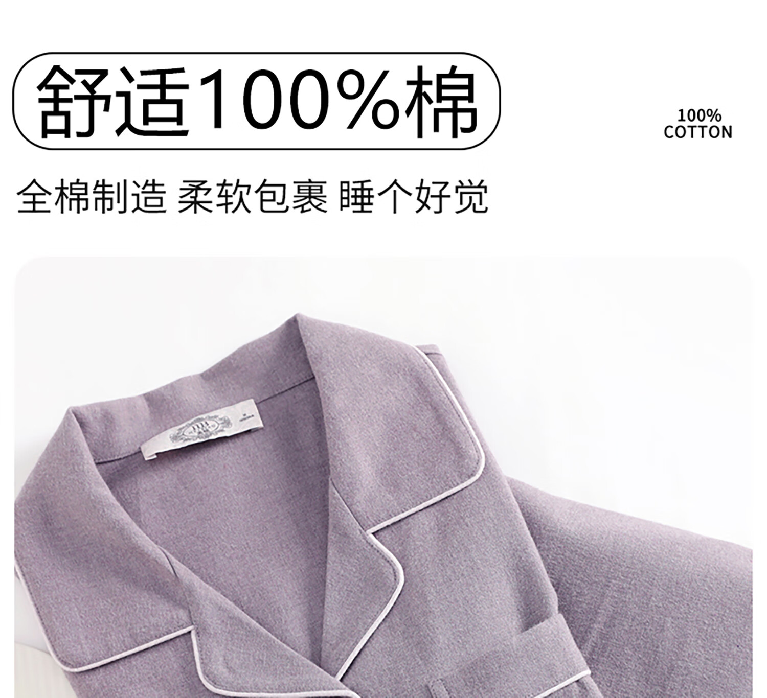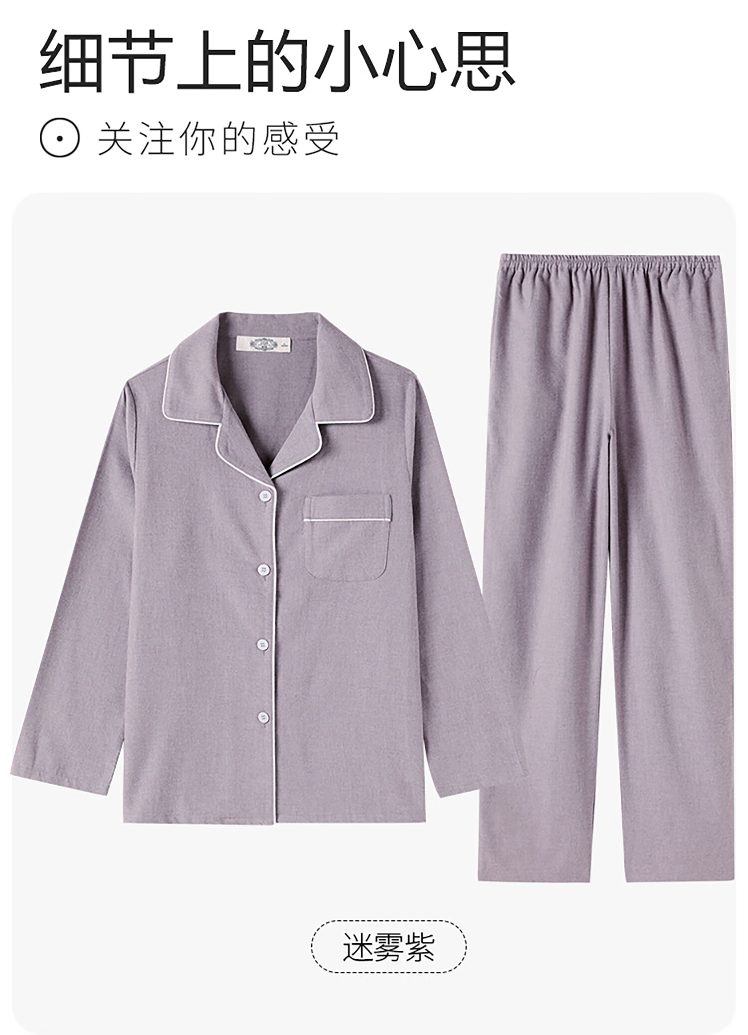 American Standard gives your lover new long-sleeved couple pajamas pure cotton suit for women spring and autumn pure cotton casual simple home wear for men misty purple M