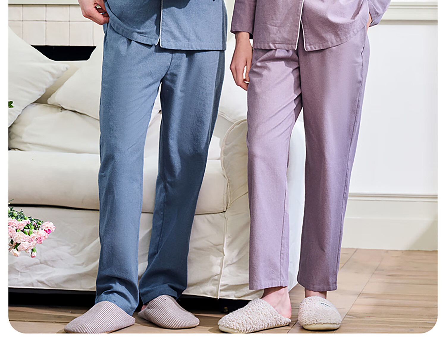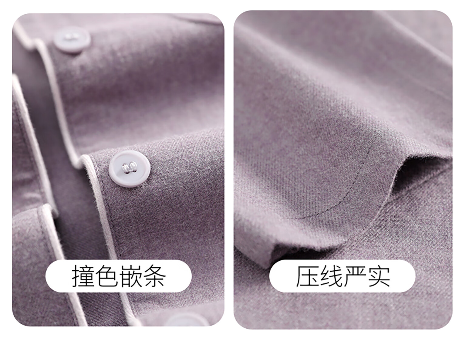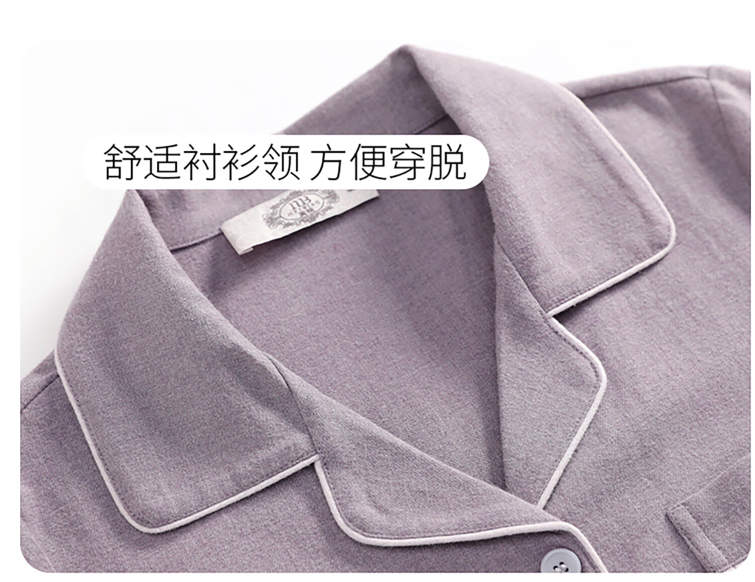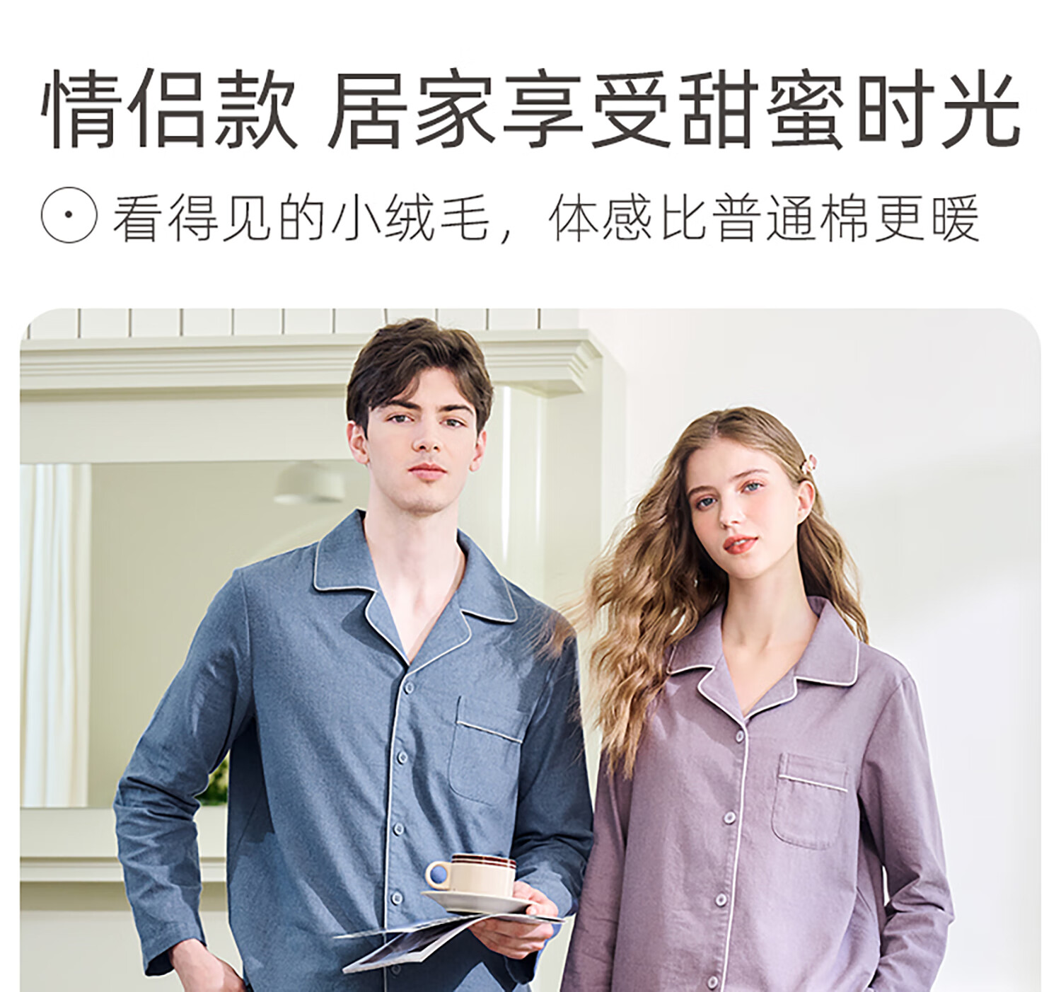 American Standard gives your lover new long-sleeved couple pajamas pure cotton suit for women spring and autumn pure cotton casual simple home wear for men misty purple M