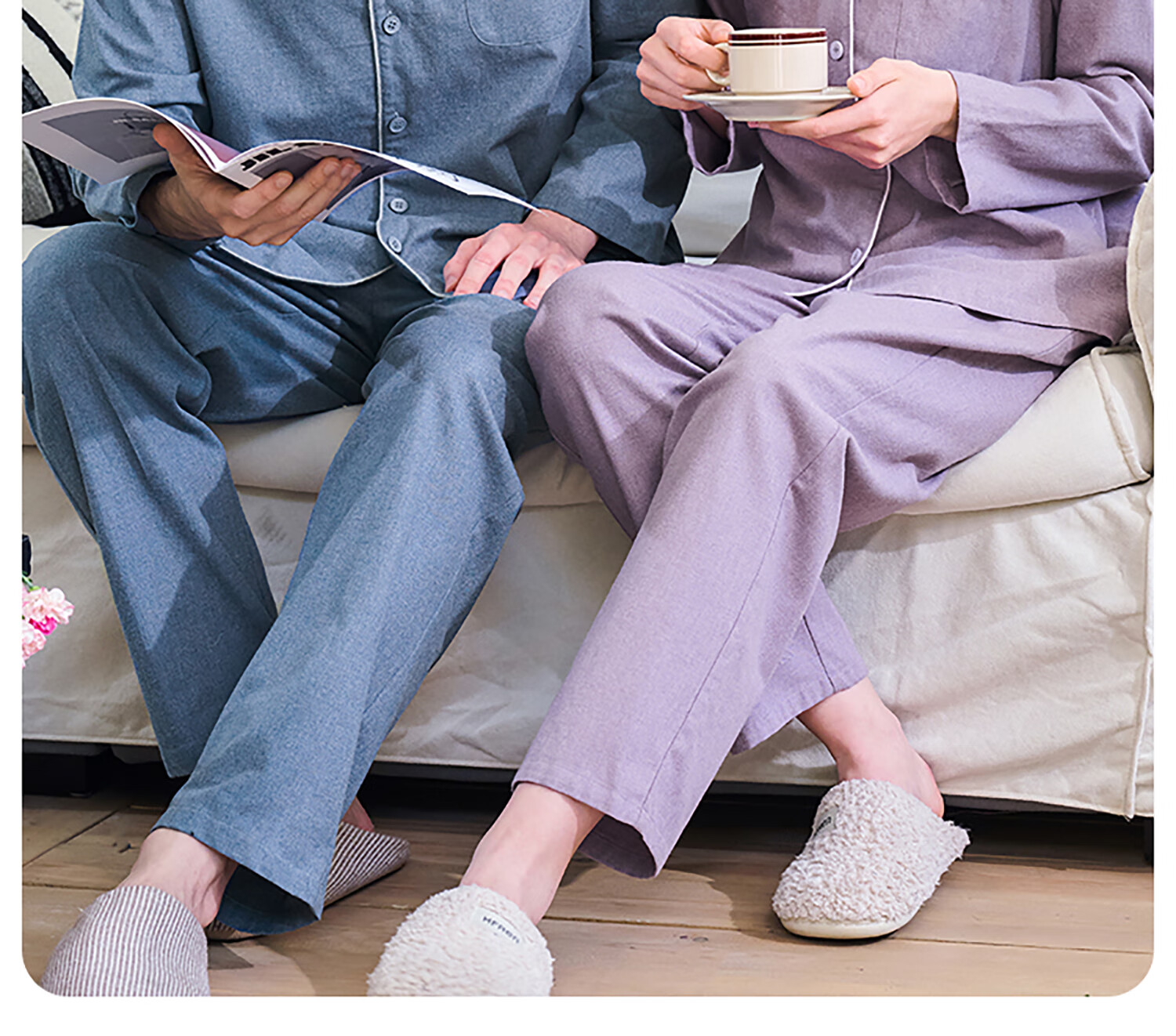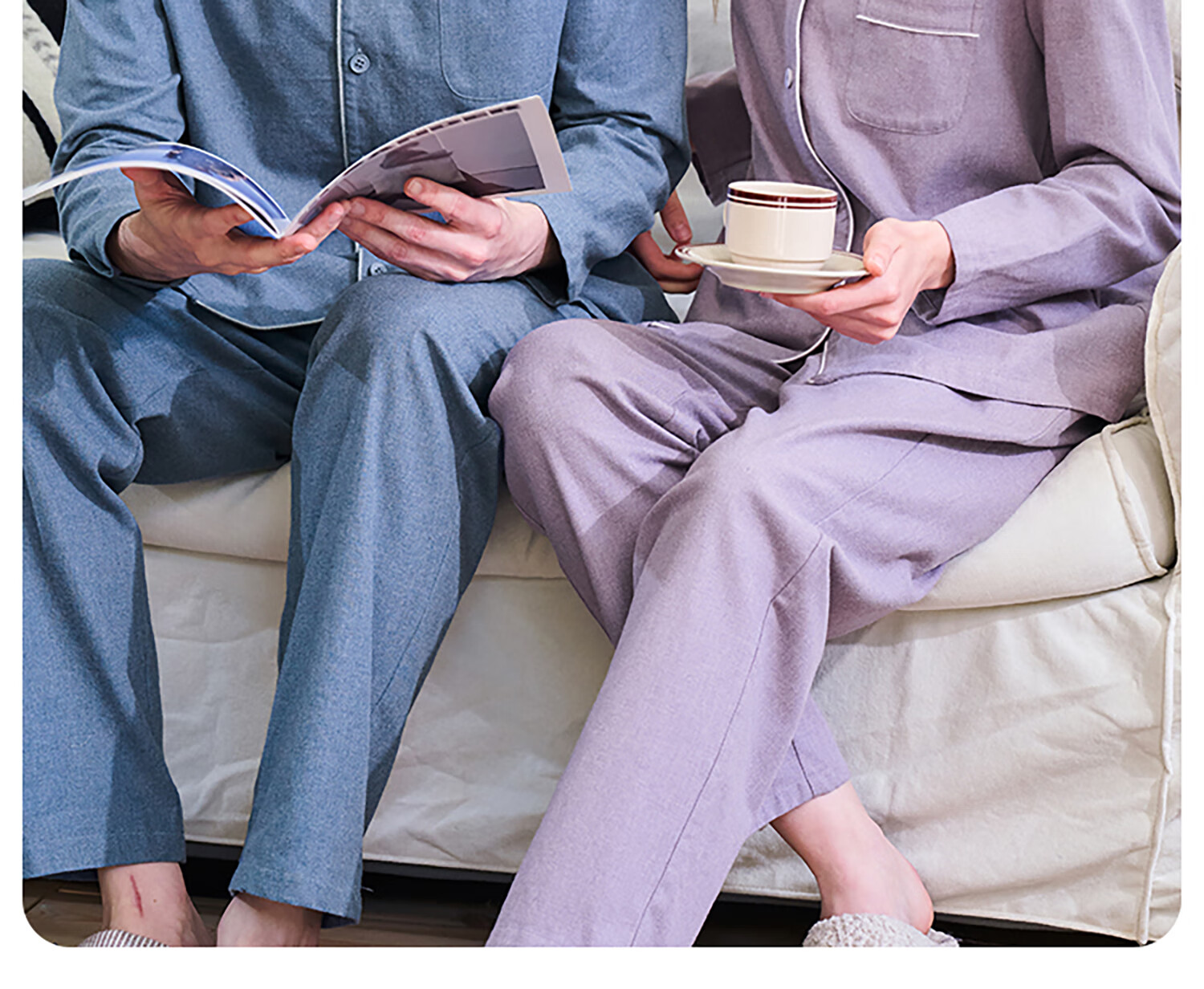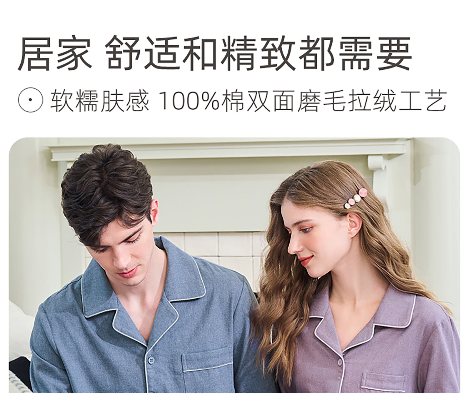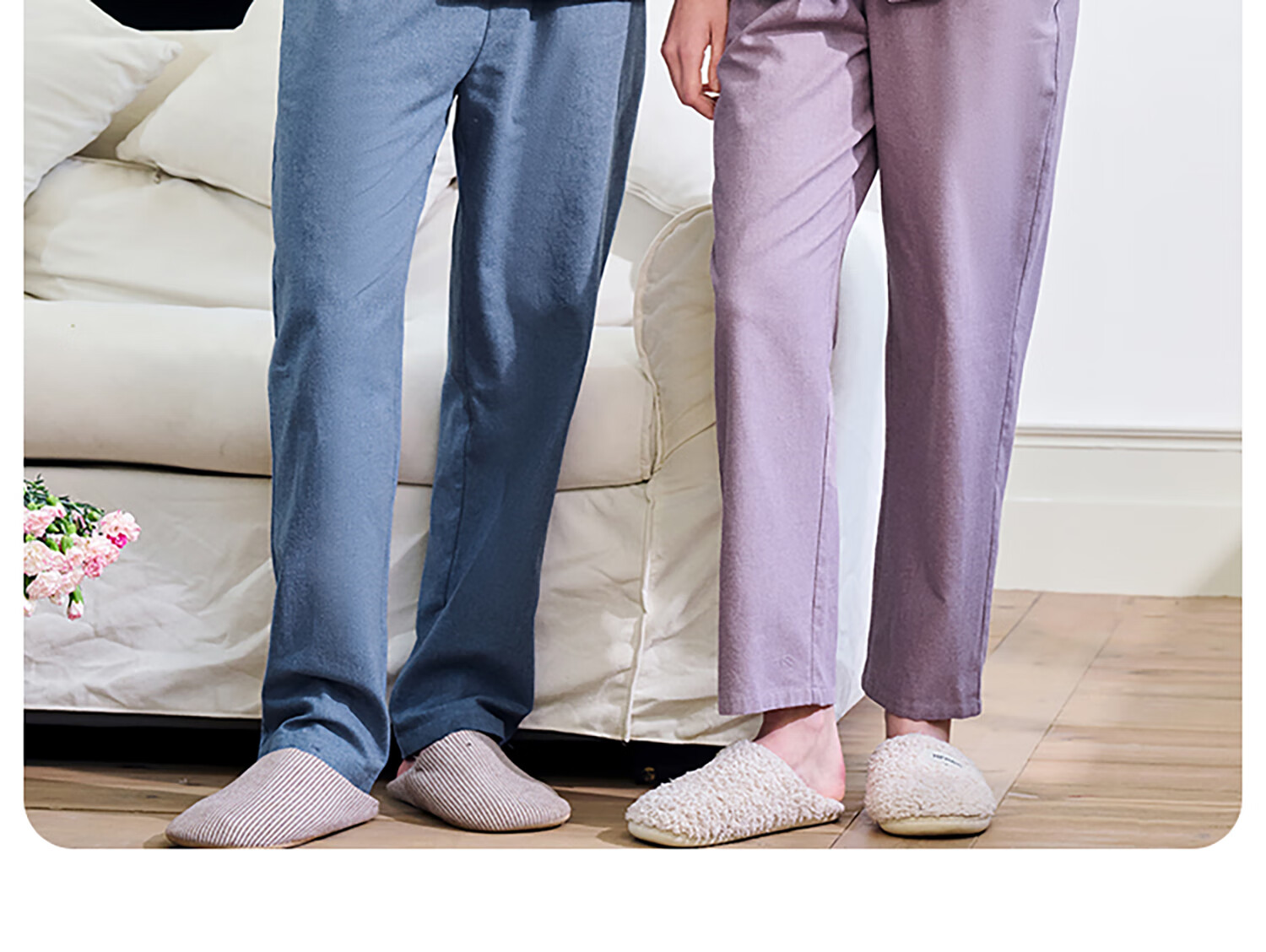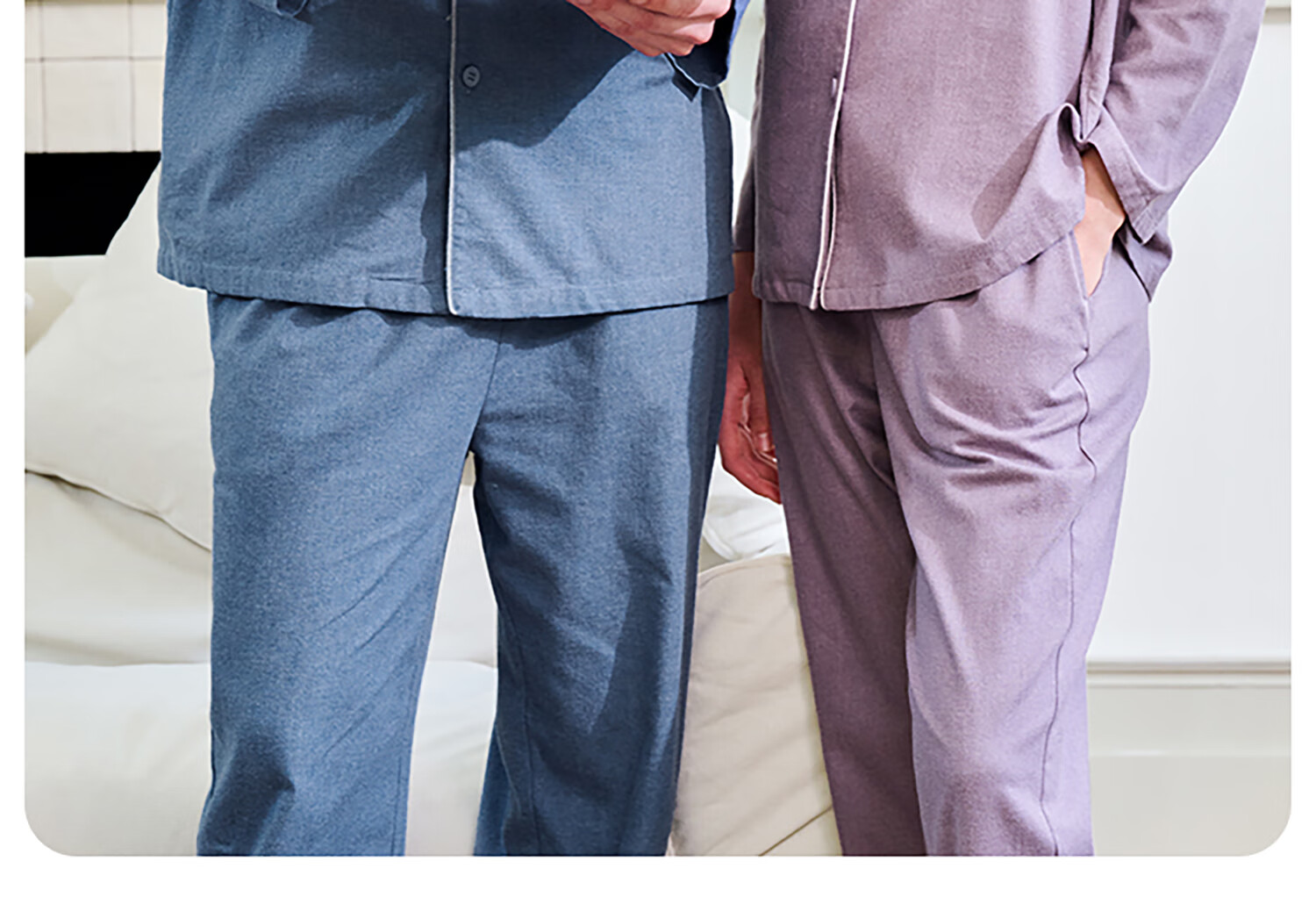 American Standard gives your lover new long-sleeved couple pajamas pure cotton suit for women spring and autumn pure cotton casual simple home wear for men misty purple M