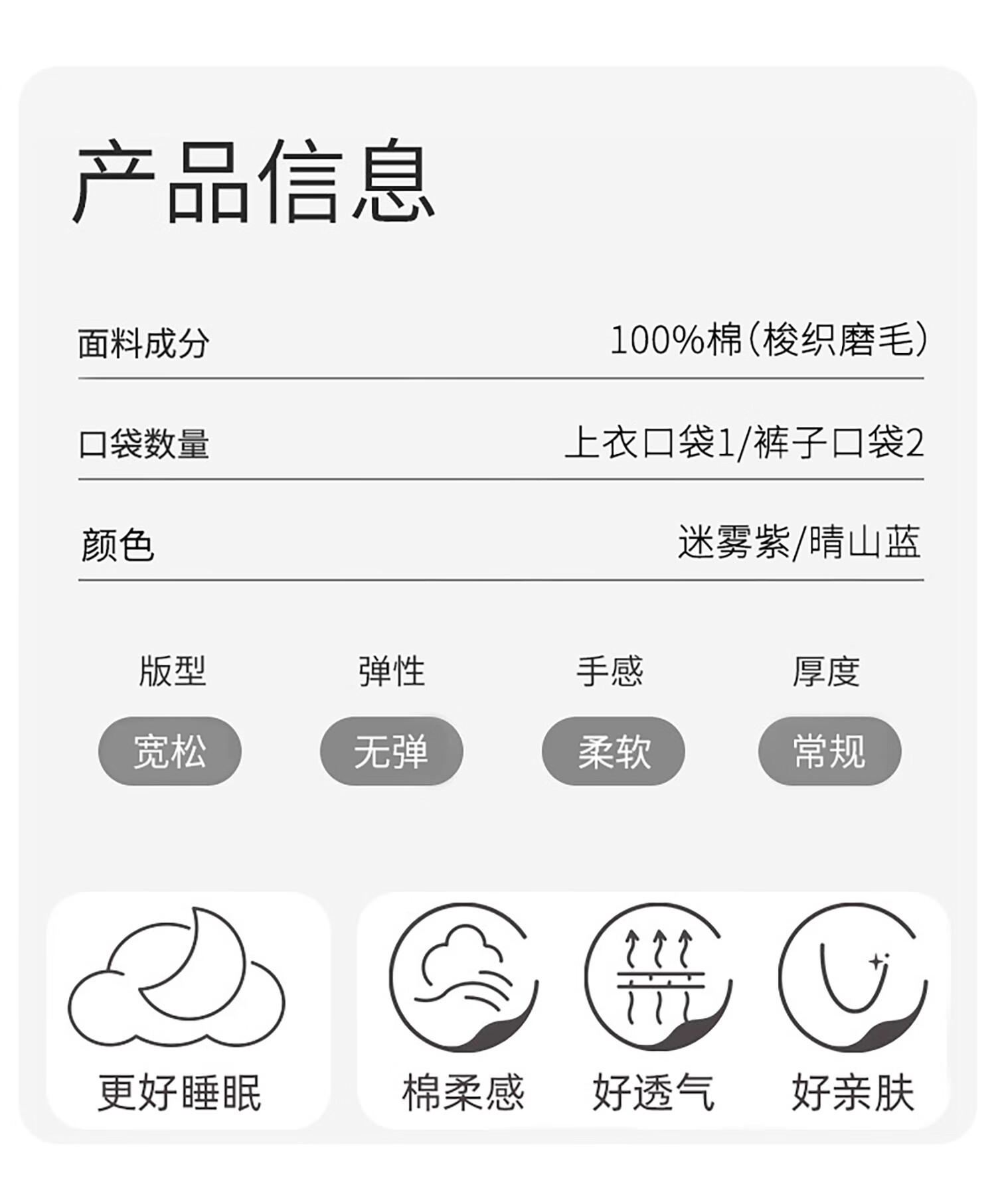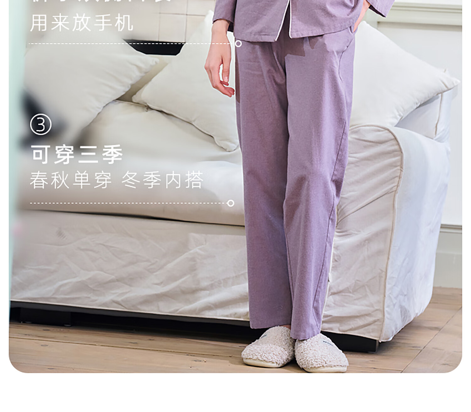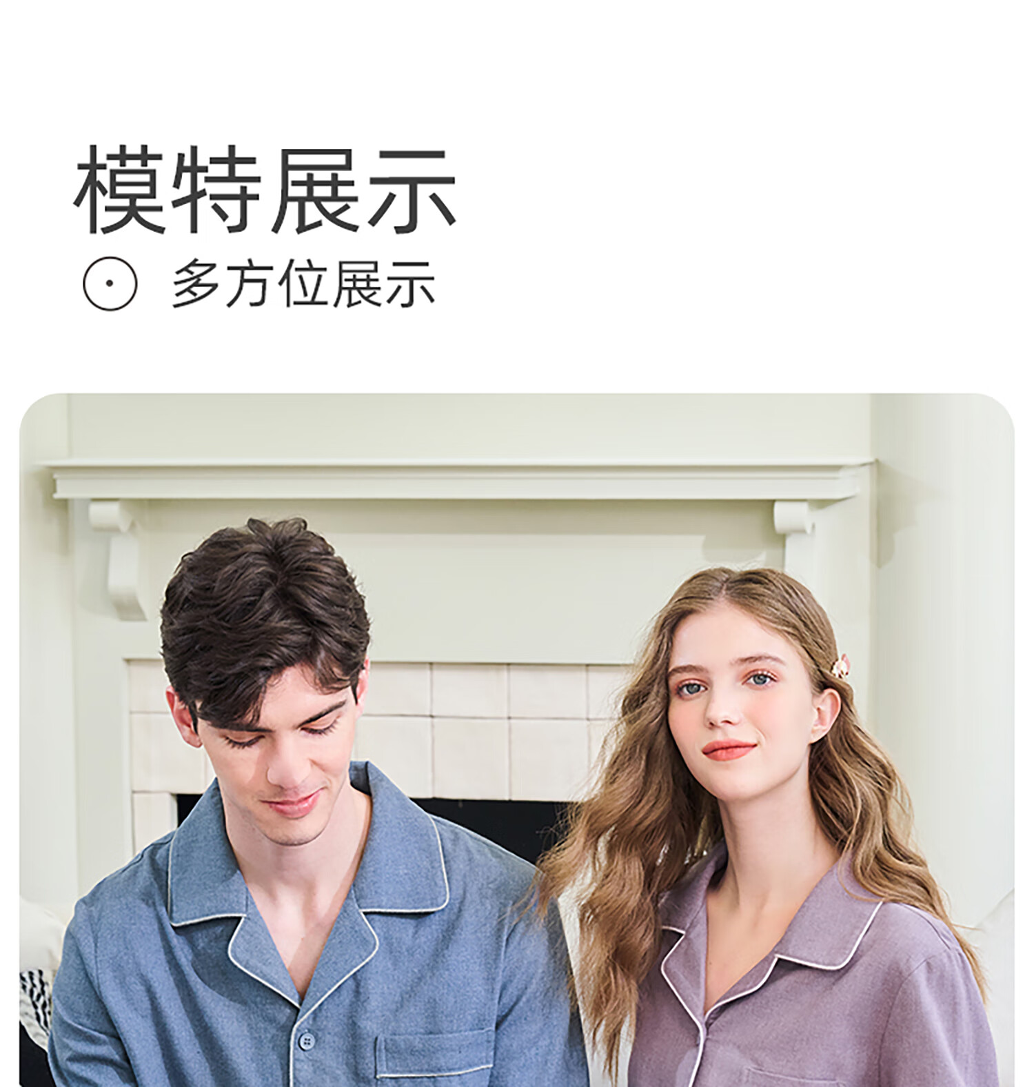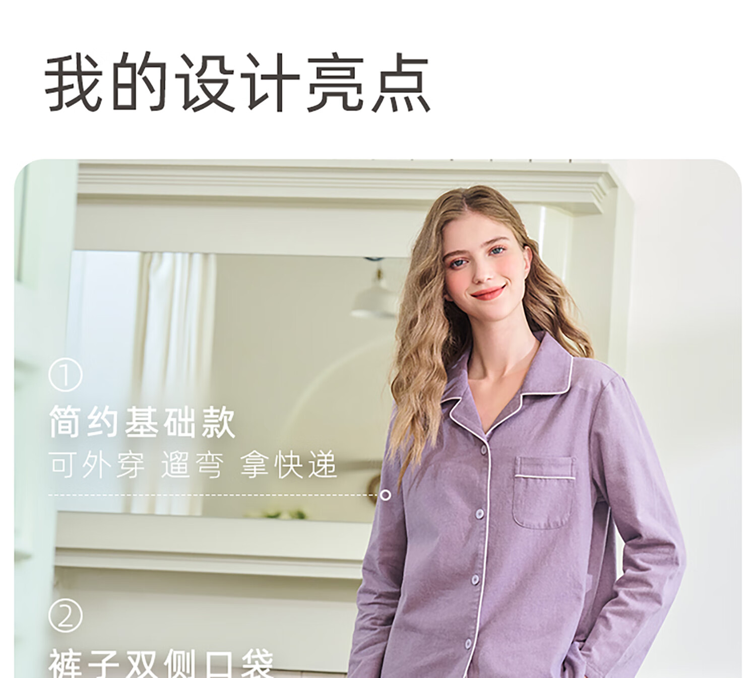 American Standard gives your lover new long-sleeved couple pajamas pure cotton suit for women spring and autumn pure cotton casual simple home wear for men misty purple M