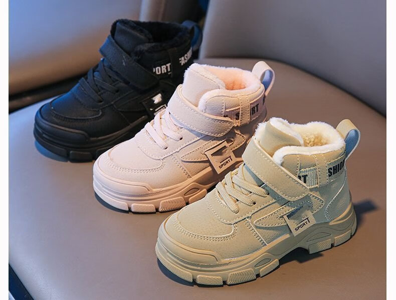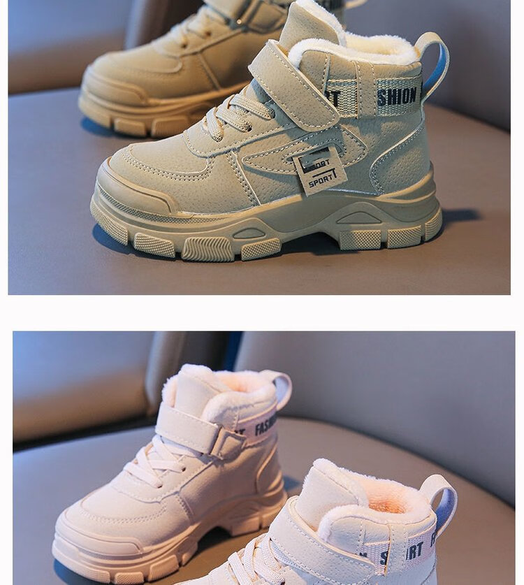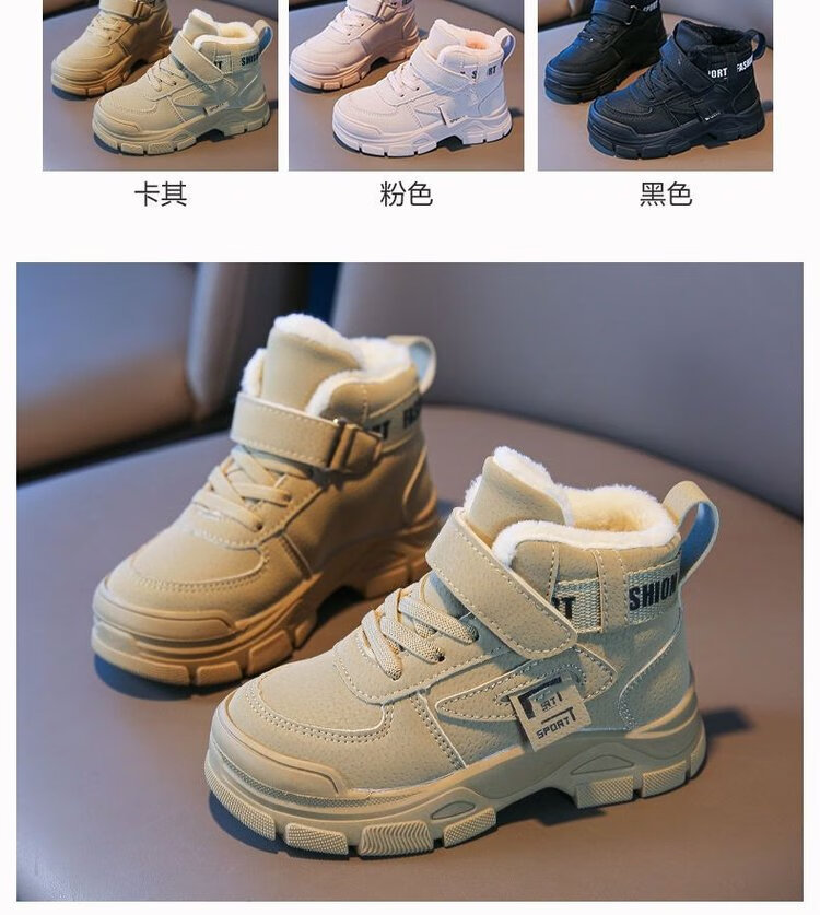 G.duck Little Yellow Duck Children's Cotton Shoes Boys' Velvet Sports Shoes 2024 Winter New Girls' Martin Boots Thickened and Warm Camel (Add 1cm to the foot length when ordering) 35 (inner length 22.2cm)