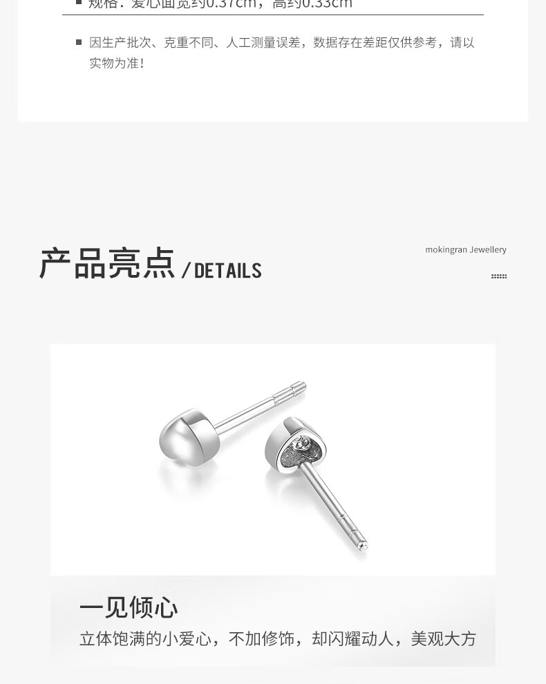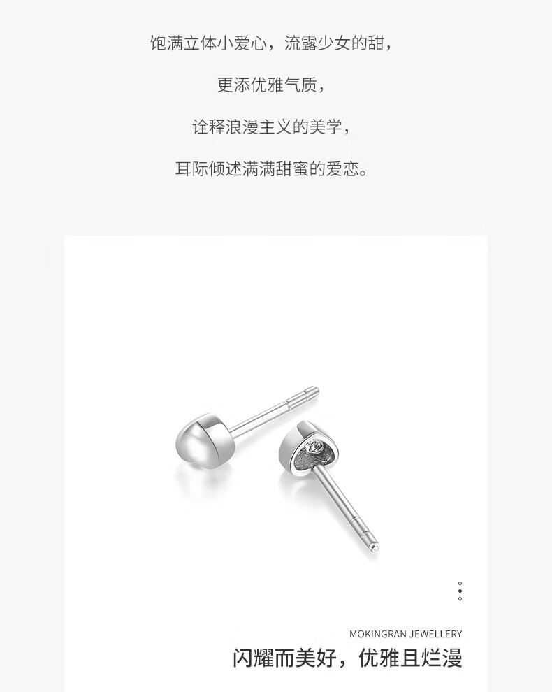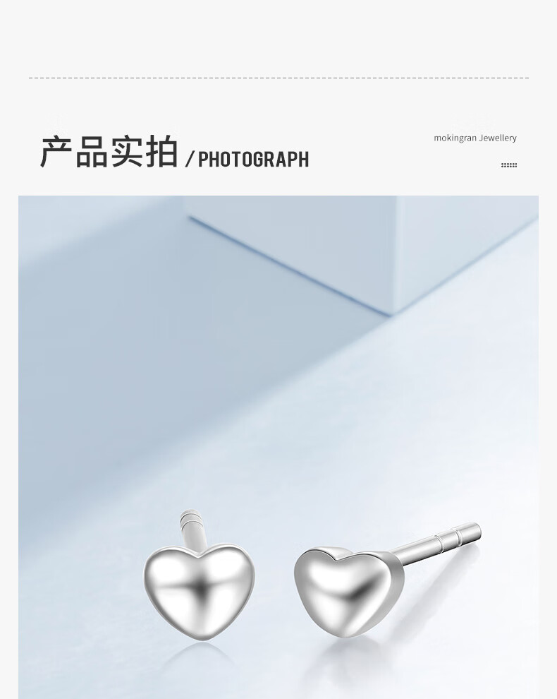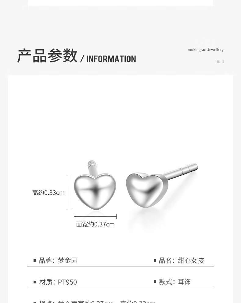 Mengjinyuan pt950 platinum earrings, love platinum simple glossy earrings, birthday gift for girlfriend, heart-shaped earrings - about 0.7g