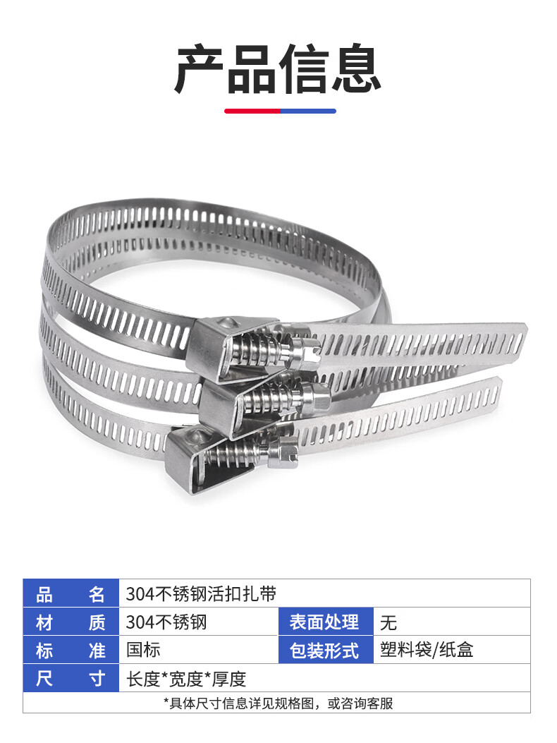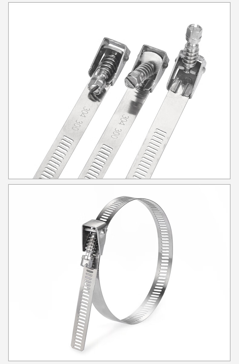 Jinggong (JINGGONG) 304 stainless steel live buckle cable tie metal buckle extra long removable elastic buckle hose clamp cable tie tightener clamp 12.5*200 bundle 11-57mm (2 pieces)
