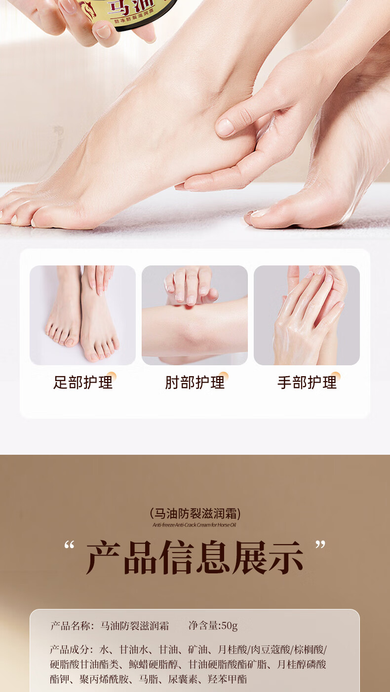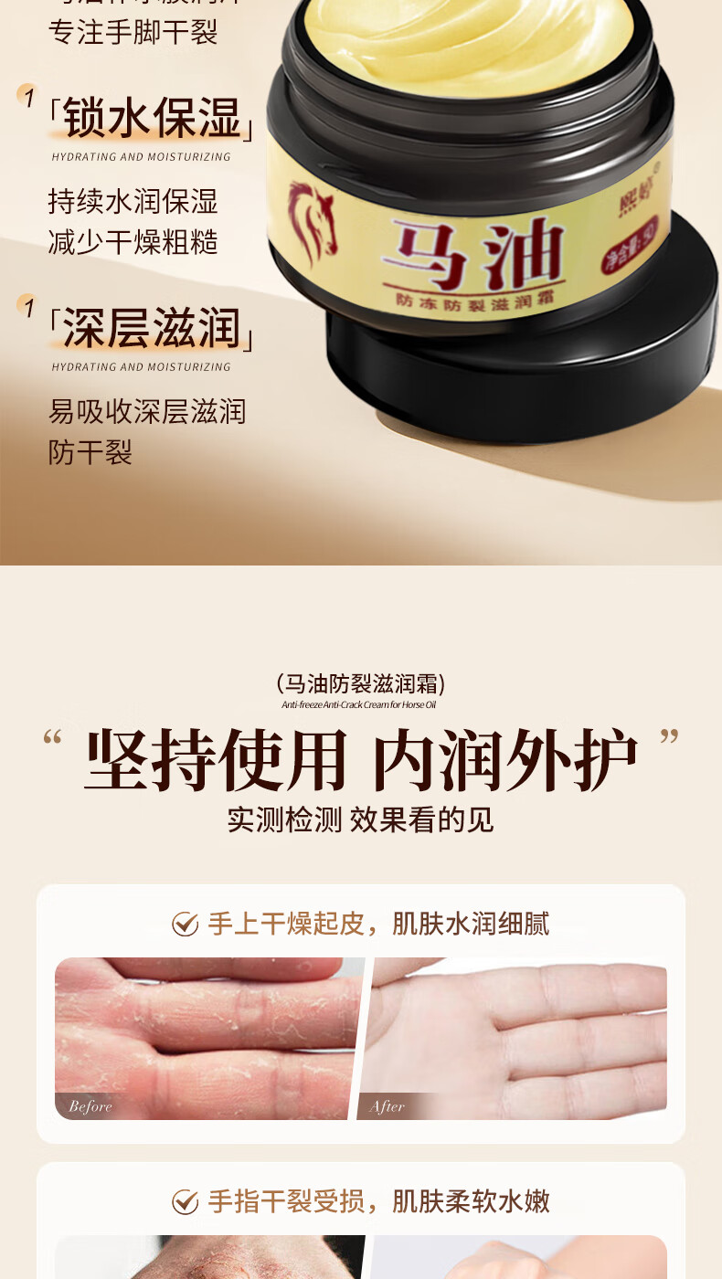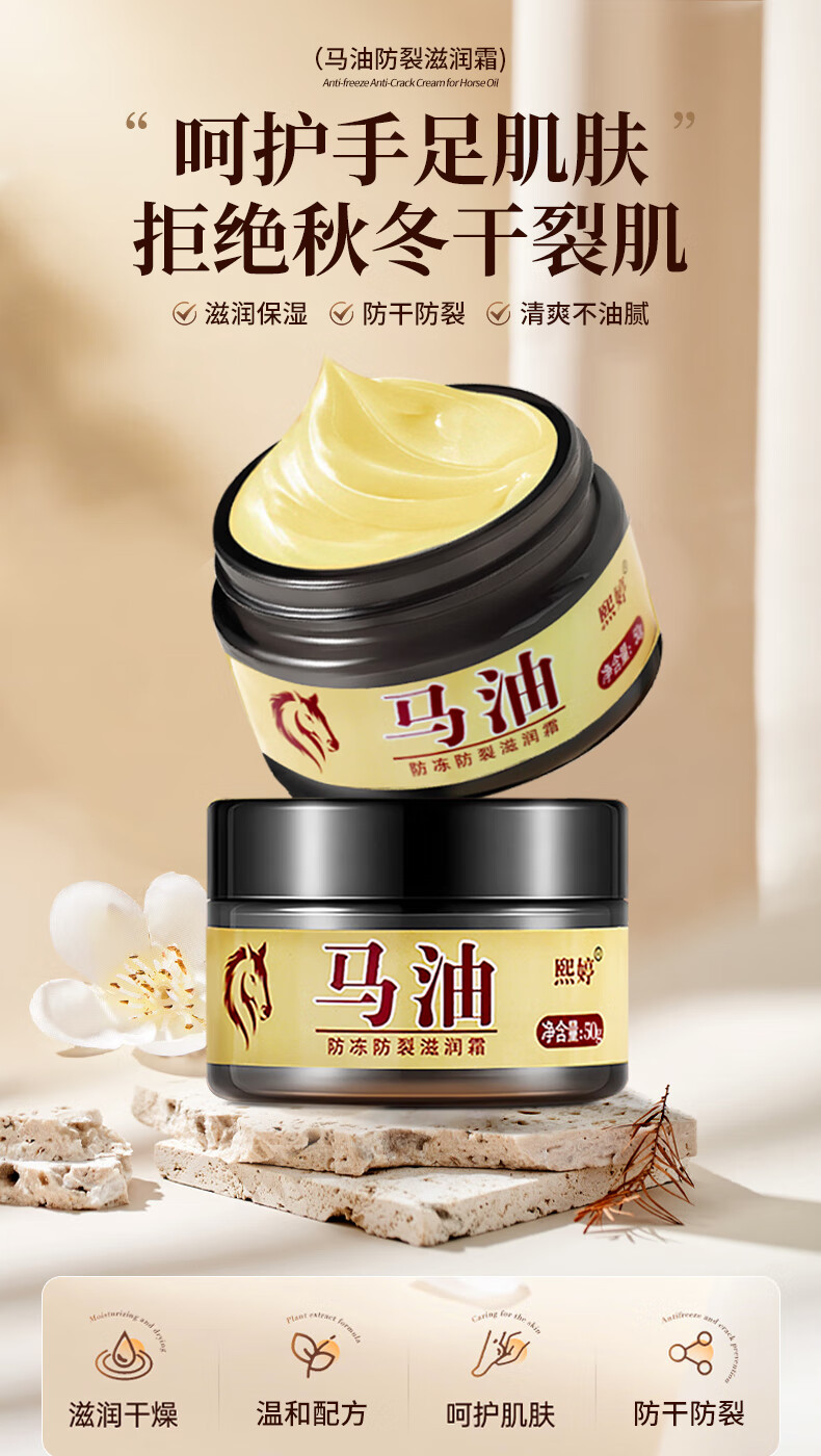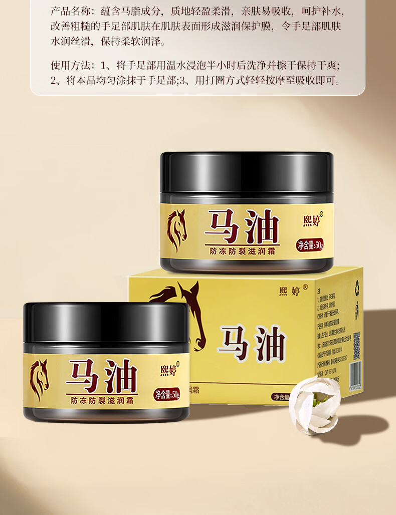 Xiting Horse Oil Anti-Crack Cream for Dry Hands and Feet, Cracked Hands and Heels, Rough Moisturizing Moisturizing Cream 50g 2 Bottles Horse Oil Anti-Crack Hand and Foot Cream